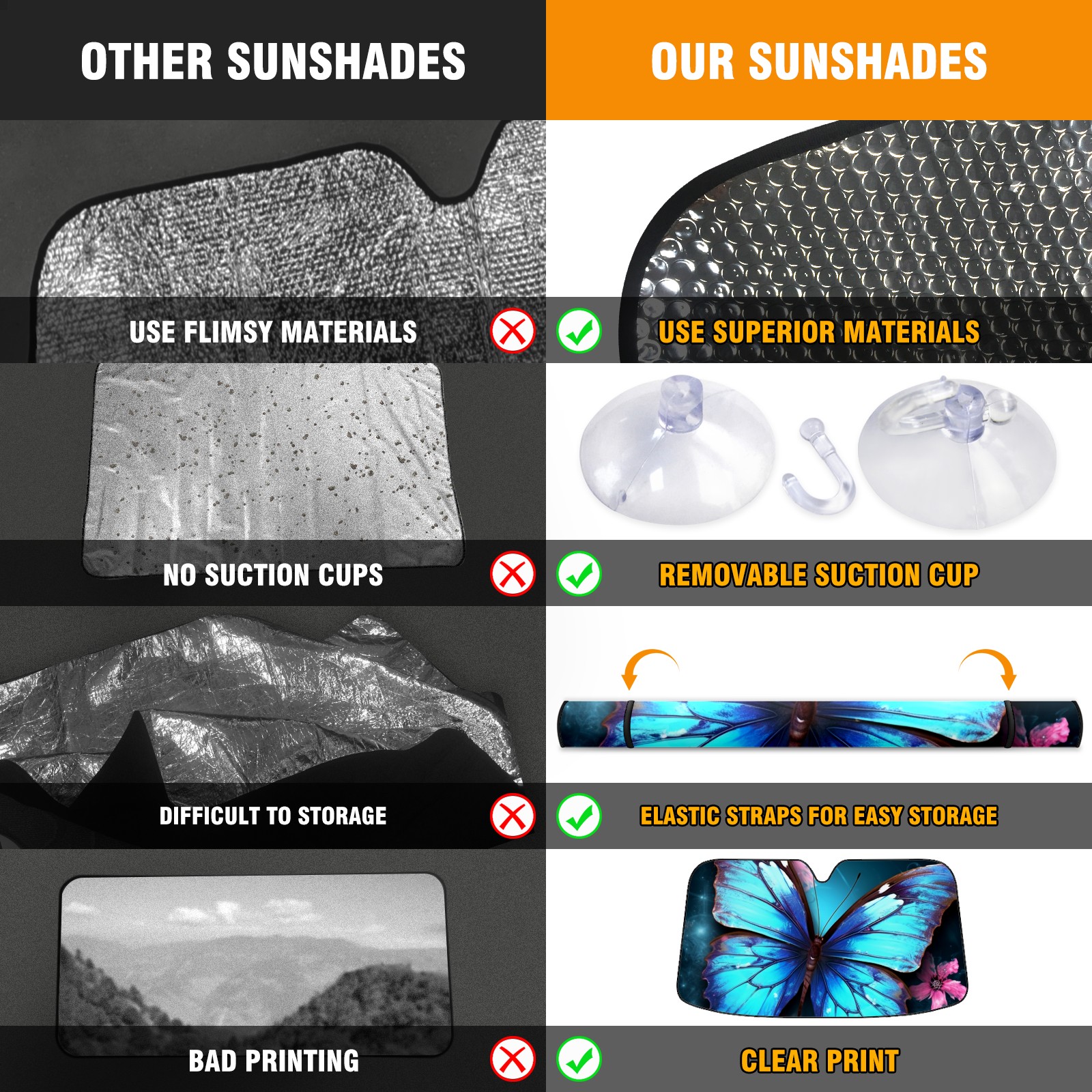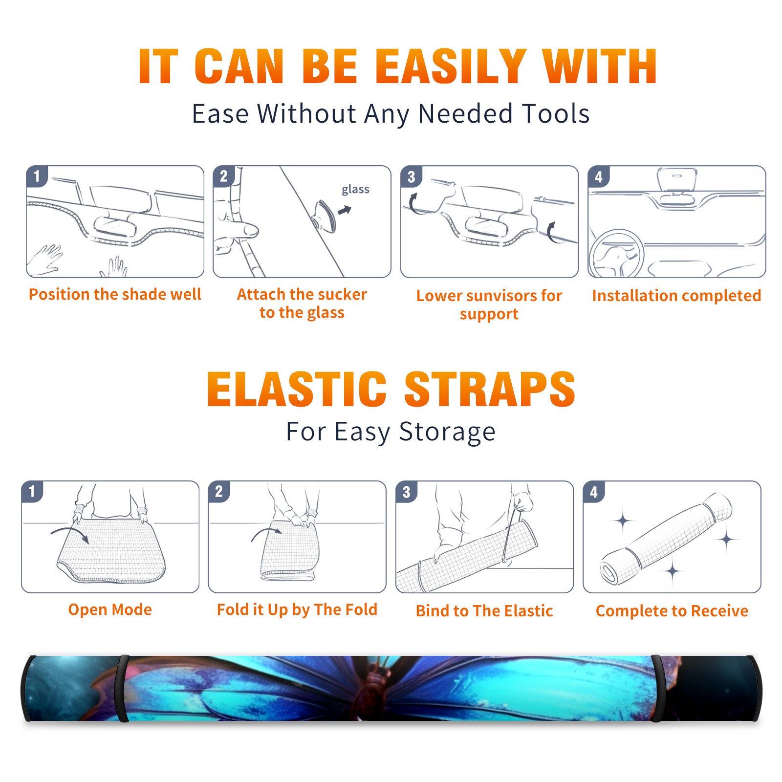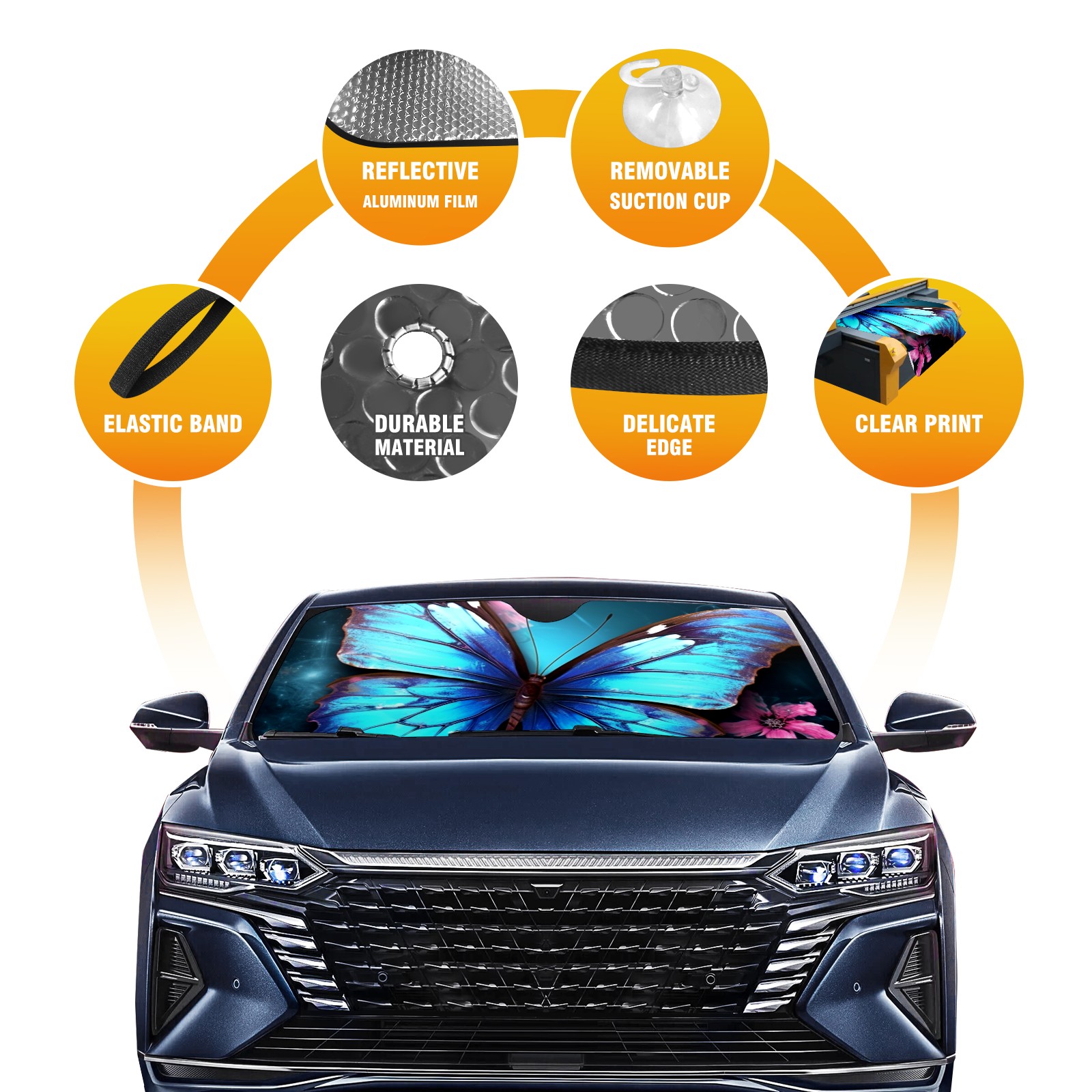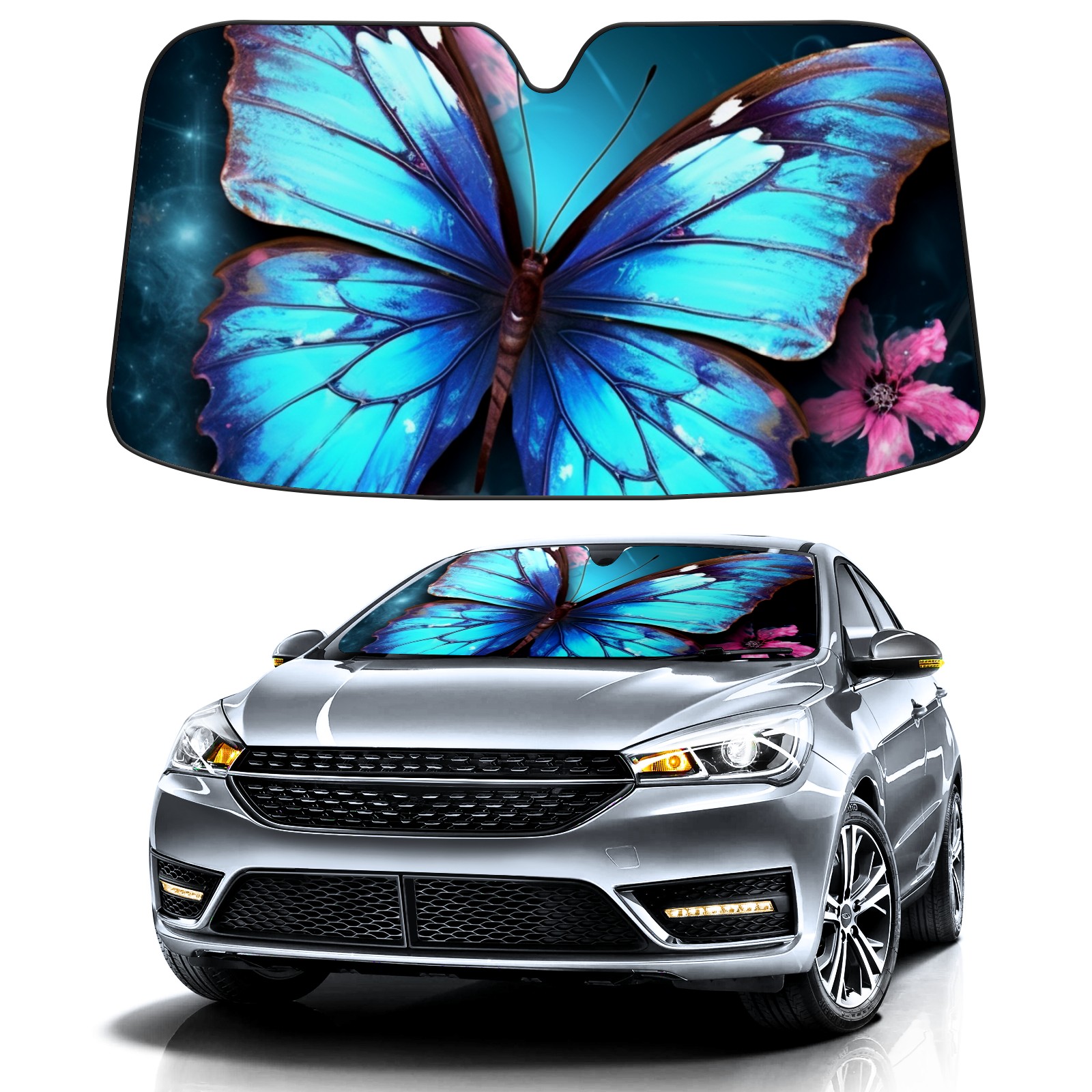 Car Windshield Sun Shade for Front Window Blue ButterfliesFlower (5) Foldable Vehicle Windshield Car Sun Visor Covers Automotive Window Protector Car Privacy Sun Blocker