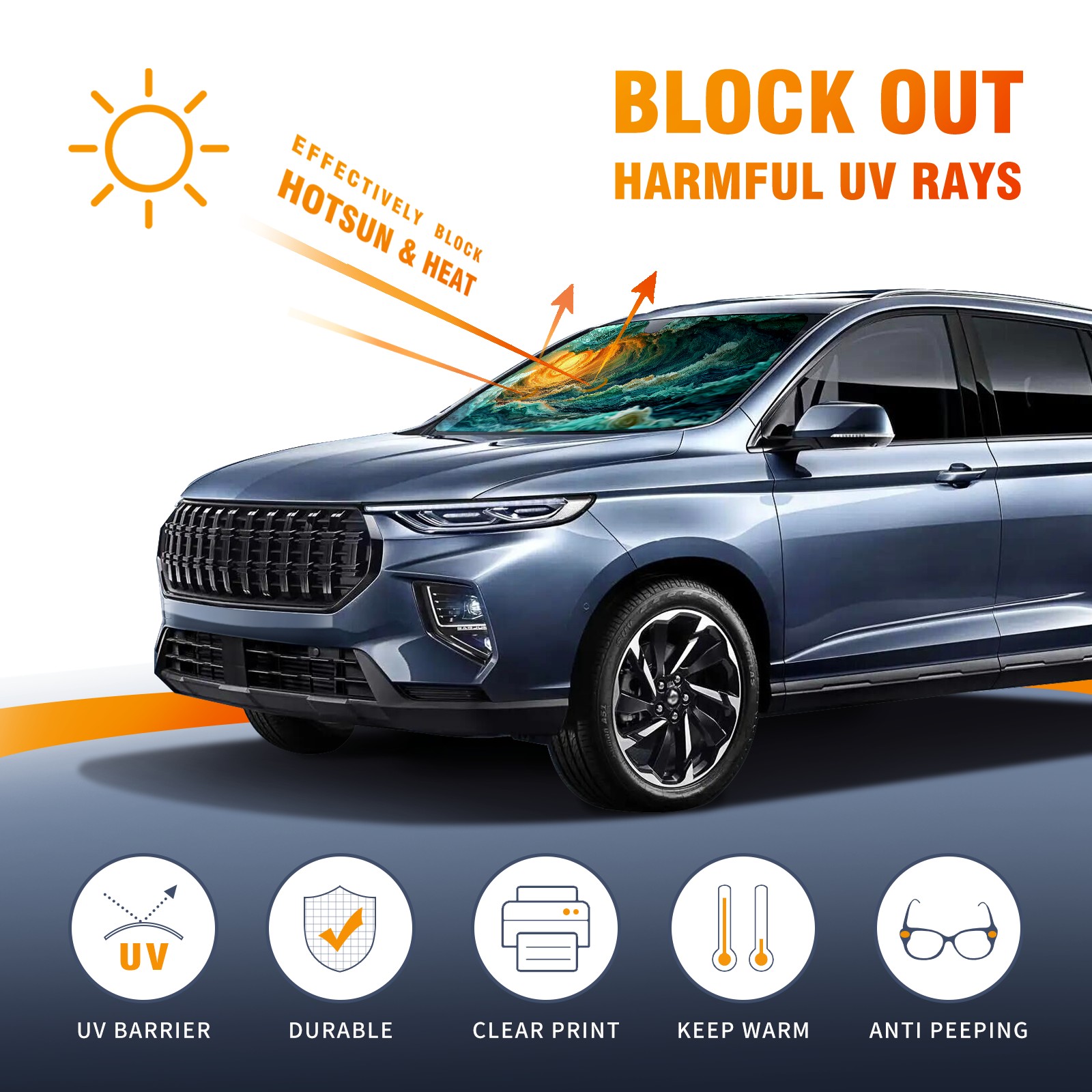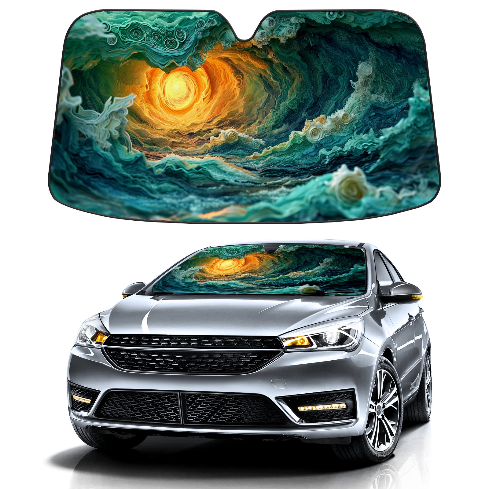 Car Windshield Sun Shade for Front Window Blue Green Sea (3) Foldable Vehicle Windshield Car Sun Visor Covers Automotive Window Protector Car Privacy Sun Blocker