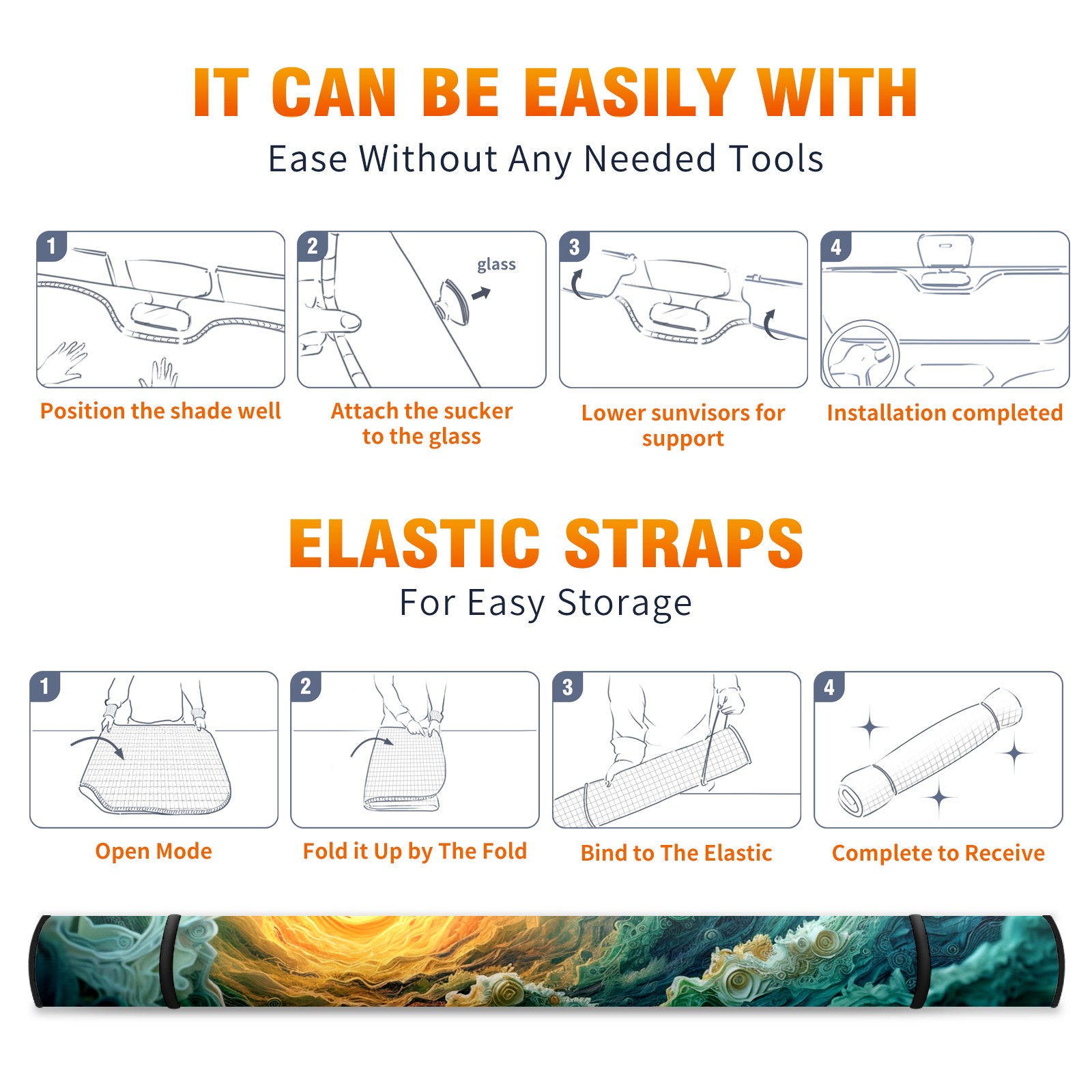 • Diameter /Size 63"L x 33.5"W</b><br> Made from excellent materials which makes it sturdy and protects the car from the sun. Easy to use and pack. Makes the interior of the car cooler.You can easily stash the sunshade in the storage bag or store long term.It open and closes easy. Also the leather storage bag is durable and easy to put the umbrella back into.This windshield sunshade provides complete coverage and keeps your car interior cool under direct sun. It is easy to open and position under the windshield and around the rear-view mirror. Makes Your Car Easy To Identify, Perfect For Finding Your Car In Crowded Parking Lots And Garages.Great Choice: It Is A Great Gift For Dad, Boyfriend, Brother, Brother And Uncle, Friends, Classmates, Family And So On.<br> Notice:</b><br> Due To Difference Computer Monitors, The Color Maybe Slightly Different From Picture. As Different Measurement Methods, Measurement Data Will Float Within 2%.I Hope You Understand.<br> If You Have Any Question About The Item Please Do Not Hesitate To Contact Us Immediately And We Will Give You A Satisfactory Reply Within 24 Hours.