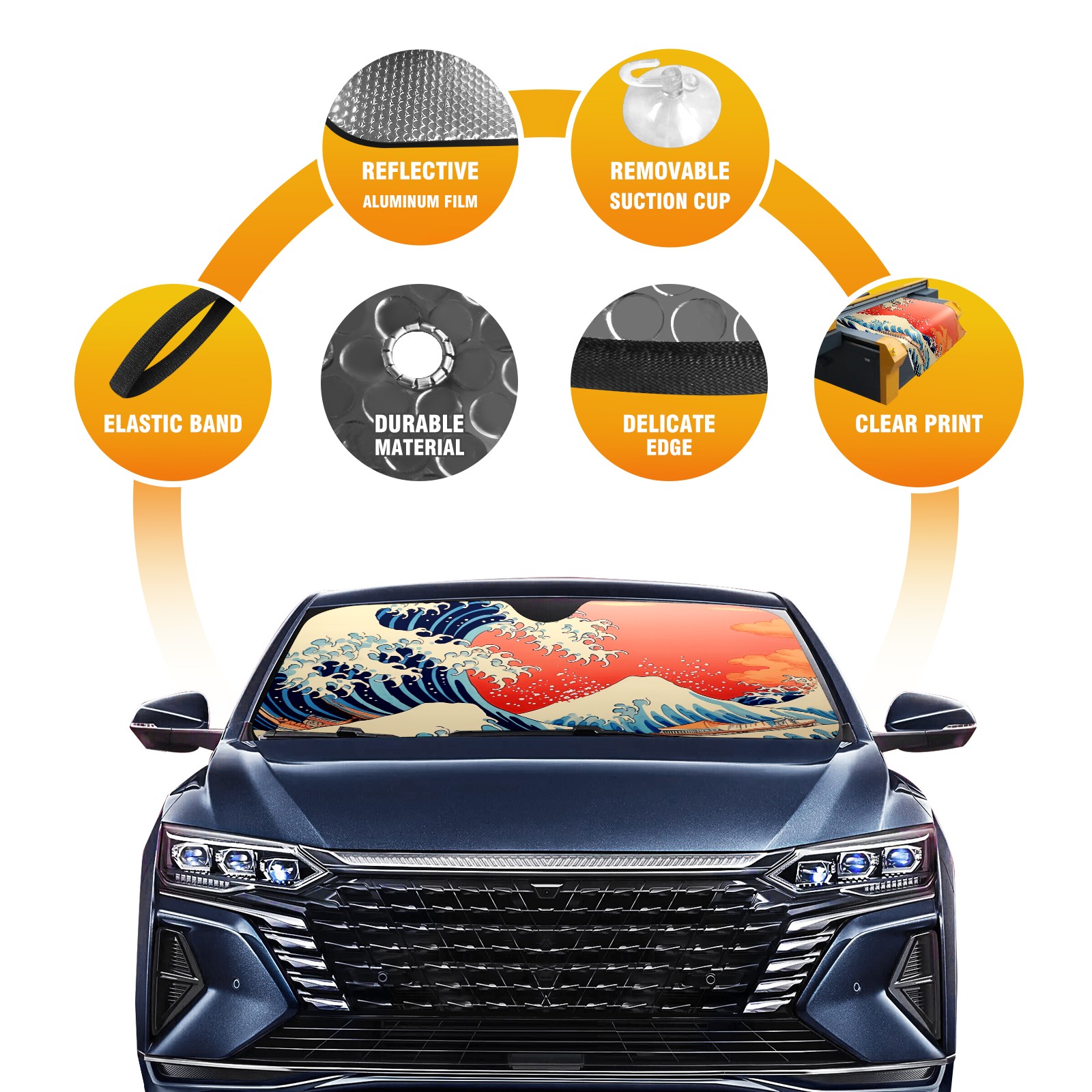 Car Windshield Sun Shade for Front Window Wave Foldable Vehicle Windshield Car Sun Visor Covers Automotive Window Protector Car Privacy Sun Blocker