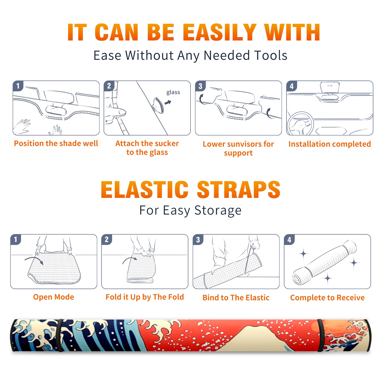 • Diameter /Size 63"L x 33.5"W</b><br> Made from excellent materials which makes it sturdy and protects the car from the sun. Easy to use and pack. Makes the interior of the car cooler.You can easily stash the sunshade in the storage bag or store long term.It open and closes easy. Also the leather storage bag is durable and easy to put the umbrella back into.This windshield sunshade provides complete coverage and keeps your car interior cool under direct sun. It is easy to open and position under the windshield and around the rear-view mirror. Makes Your Car Easy To Identify, Perfect For Finding Your Car In Crowded Parking Lots And Garages.Great Choice: It Is A Great Gift For Dad, Boyfriend, Brother, Brother And Uncle, Friends, Classmates, Family And So On.<br> Notice:</b><br> Due To Difference Computer Monitors, The Color Maybe Slightly Different From Picture. As Different Measurement Methods, Measurement Data Will Float Within 2%.I Hope You Understand.<br> If You Have Any Question About The Item Please Do Not Hesitate To Contact Us Immediately And We Will Give You A Satisfactory Reply Within 24 Hours.
