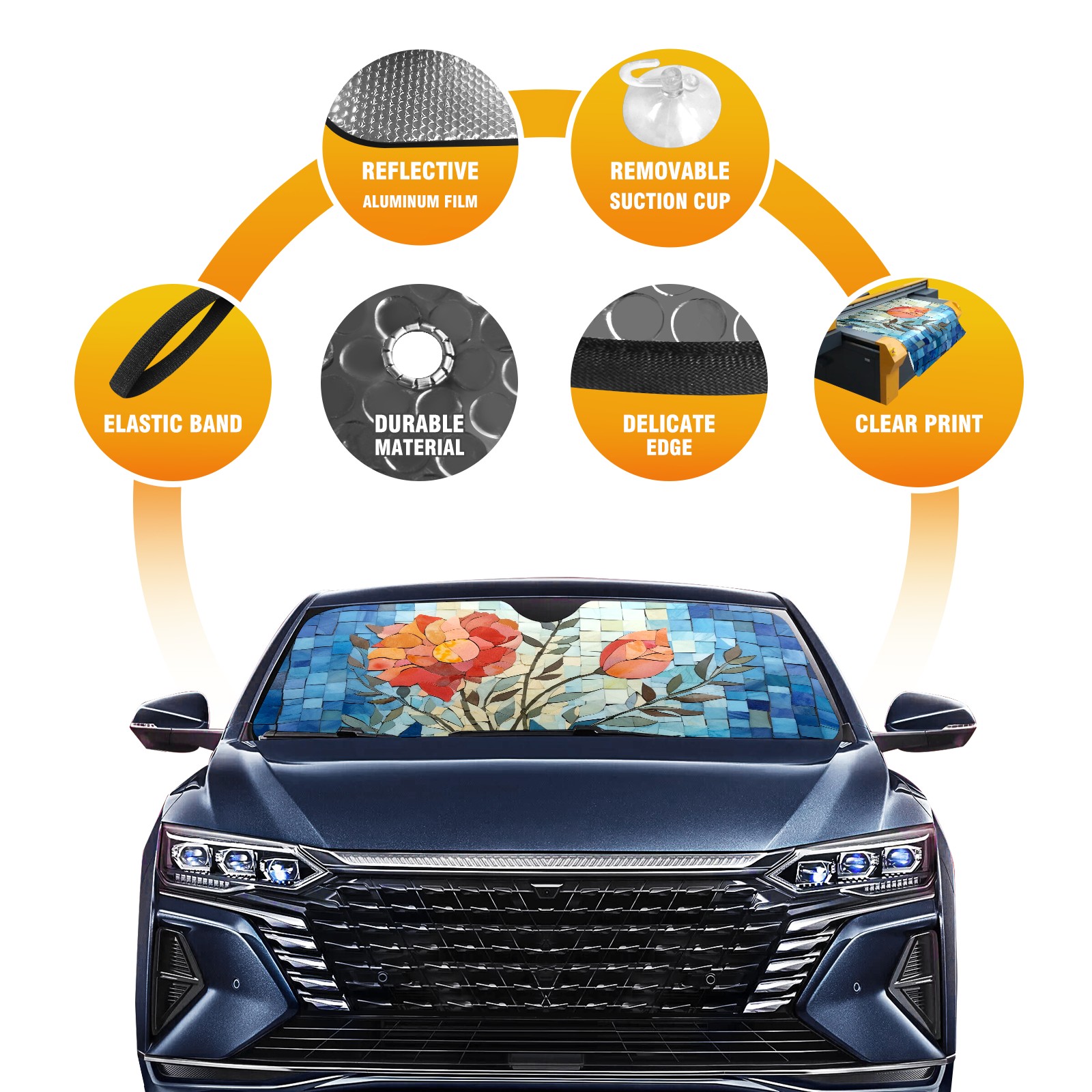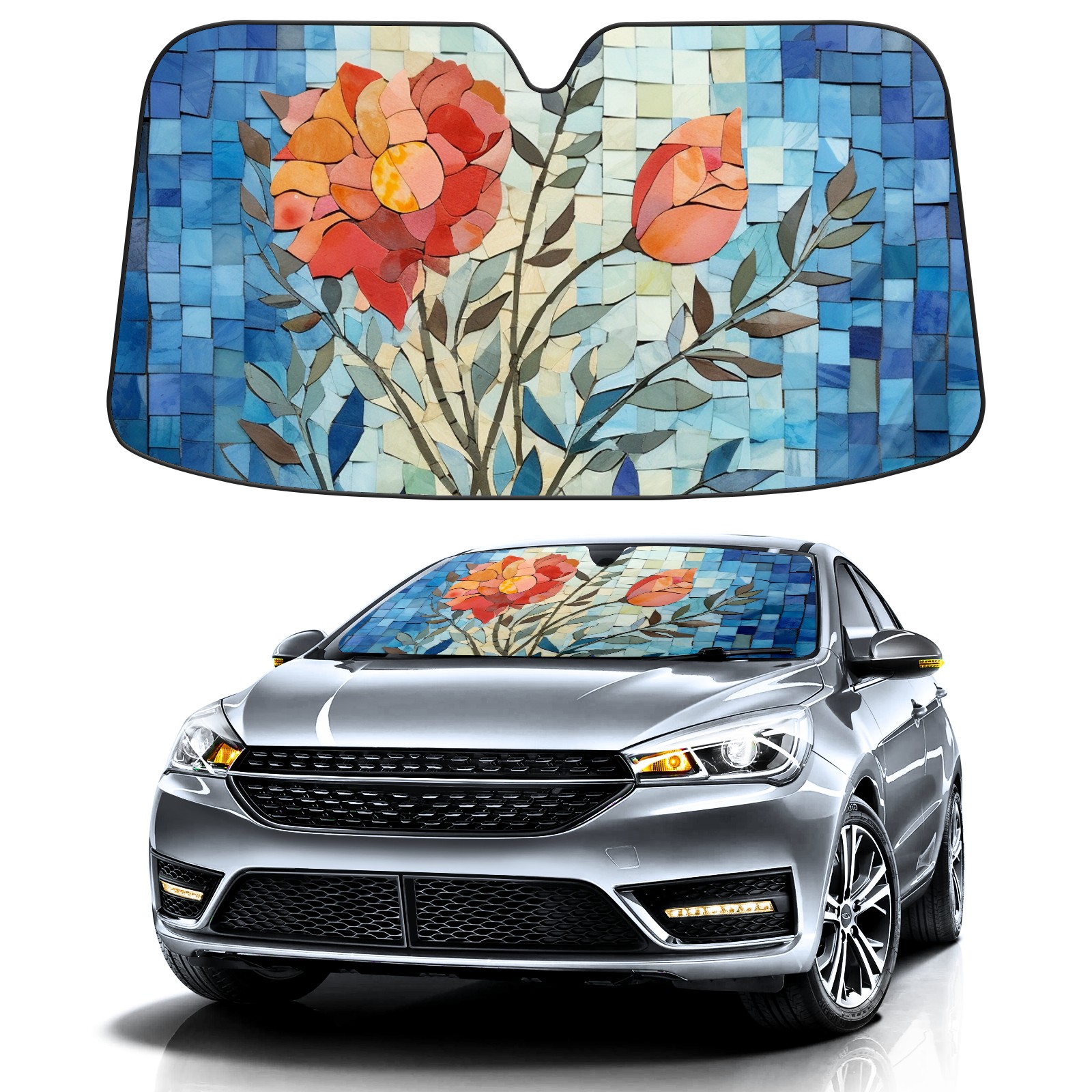 Car Windshield Sun Shade for Front Window Watercolor Art Foldable Vehicle Windshield Car Sun Visor Covers Automotive Window Protector Car Privacy Sun Blocker