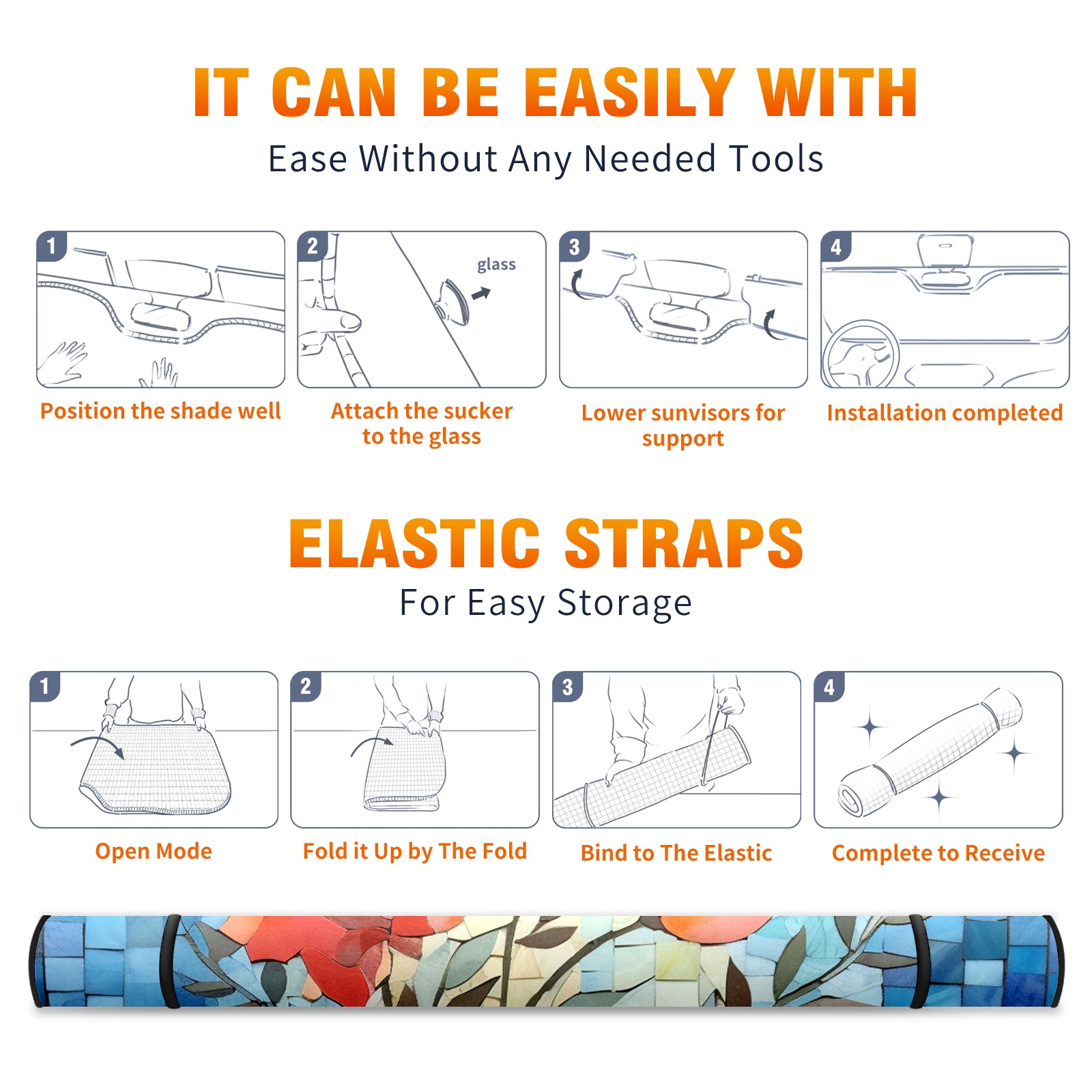 • Diameter /Size 63"L x 33.5"W</b><br> Made from excellent materials which makes it sturdy and protects the car from the sun. Easy to use and pack. Makes the interior of the car cooler.You can easily stash the sunshade in the storage bag or store long term.It open and closes easy. Also the leather storage bag is durable and easy to put the umbrella back into.This windshield sunshade provides complete coverage and keeps your car interior cool under direct sun. It is easy to open and position under the windshield and around the rear-view mirror. Makes Your Car Easy To Identify, Perfect For Finding Your Car In Crowded Parking Lots And Garages.Great Choice: It Is A Great Gift For Dad, Boyfriend, Brother, Brother And Uncle, Friends, Classmates, Family And So On.<br> Notice:</b><br> Due To Difference Computer Monitors, The Color Maybe Slightly Different From Picture. As Different Measurement Methods, Measurement Data Will Float Within 2%.I Hope You Understand.<br> If You Have Any Question About The Item Please Do Not Hesitate To Contact Us Immediately And We Will Give You A Satisfactory Reply Within 24 Hours.