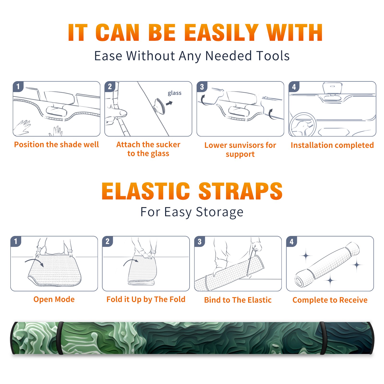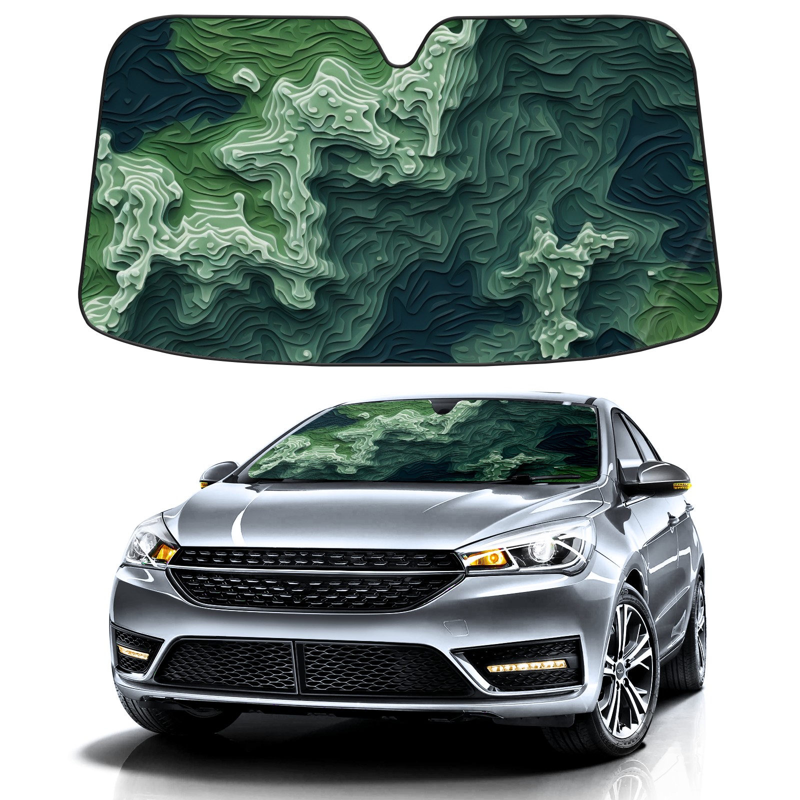 Car Windshield Sun Shade for Front Window Valleys Texture Map Foldable Vehicle Windshield Car Sun Visor Covers Automotive Window Protector Car Privacy Sun Blocker
