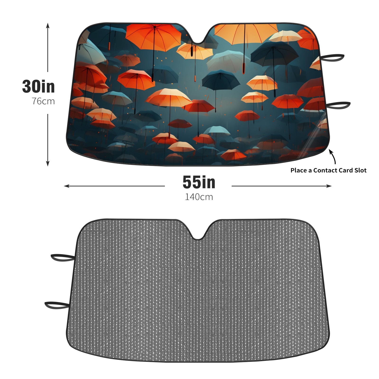 Diameter /Size 63"L x 33.5"W</b><br> Made from excellent materials which makes it sturdy and protects the car from the sun. Easy to use and pack. Makes the interior of the car cooler.You can easily stash the sunshade in the storage bag or store long term.It open and closes easy. Also the leather storage bag is durable and easy to put the umbrella back into.This windshield sunshade provides complete coverage and keeps your car interior cool under direct sun. It is easy to open and position under the windshield and around the rear-view mirror. Makes Your Car Easy To Identify, Perfect For Finding Your Car In Crowded Parking Lots And Garages.Great Choice: It Is A Great Gift For Dad, Boyfriend, Brother, Brother And Uncle, Friends, Classmates, Family And So On.<br> Notice:</b><br> Due To Difference Computer Monitors, The Color Maybe Slightly Different From Picture. As Different Measurement Methods, Measurement Data Will Float Within 2%.I Hope You Understand.<br> If You Have Any Question About The Item Please Do Not Hesitate To Contact Us Immediately And We Will Give You A Satisfactory Reply Within 24 Hours.