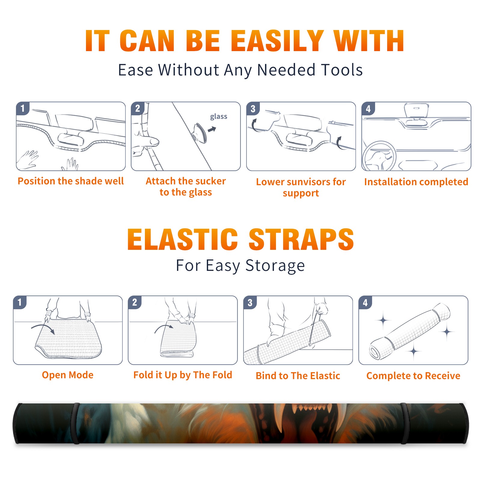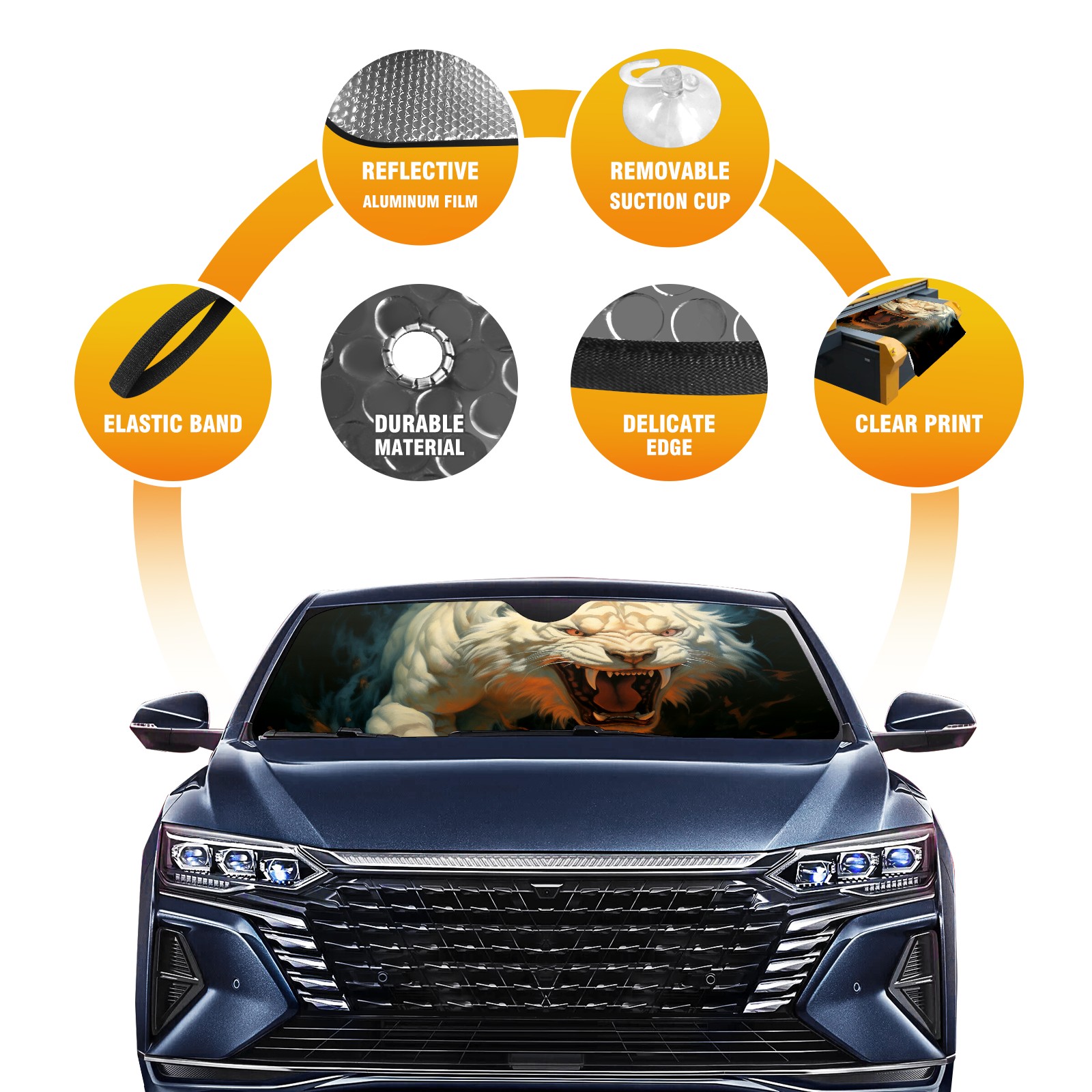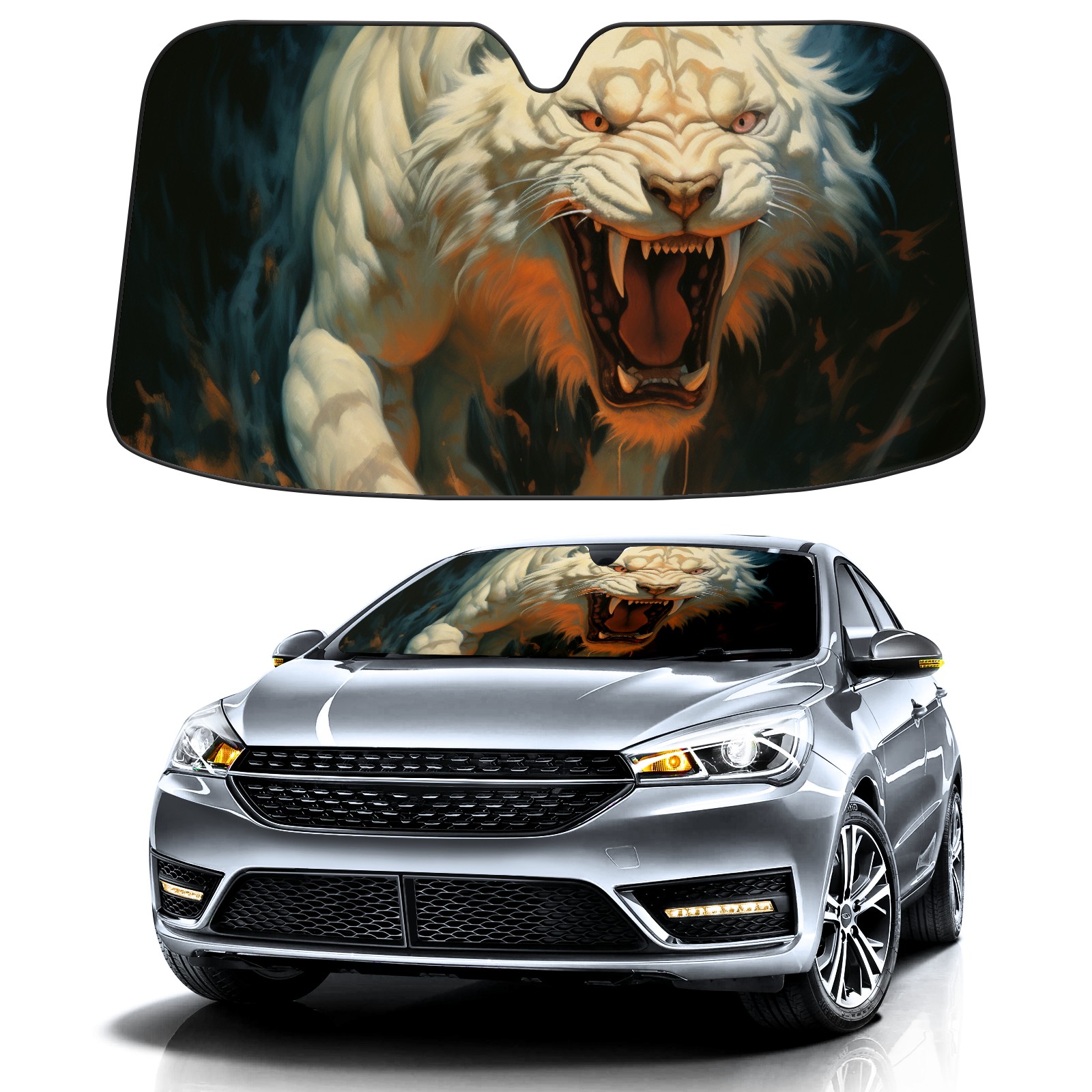 Car Windshield Sun Shade for Front Window Tiger Foldable Vehicle Windshield Car Sun Visor Covers Automotive Window Protector Car Privacy Sun Blocker