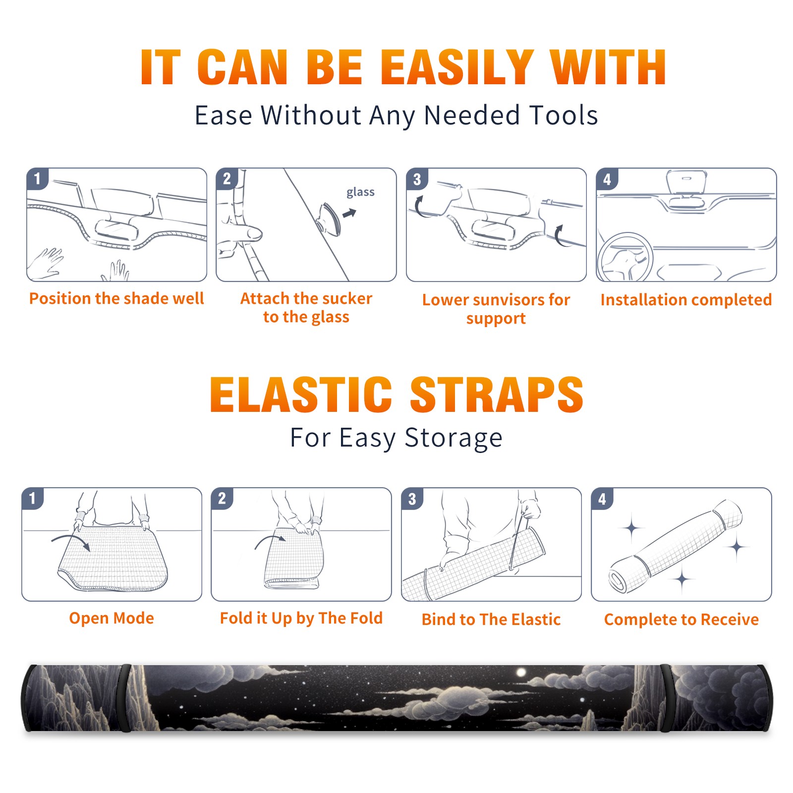 Car Windshield Sun Shade for Front Window The Valley At Night Foldable Vehicle Windshield Car Sun Visor Covers Automotive Window Protector Car Privacy Sun Blocker