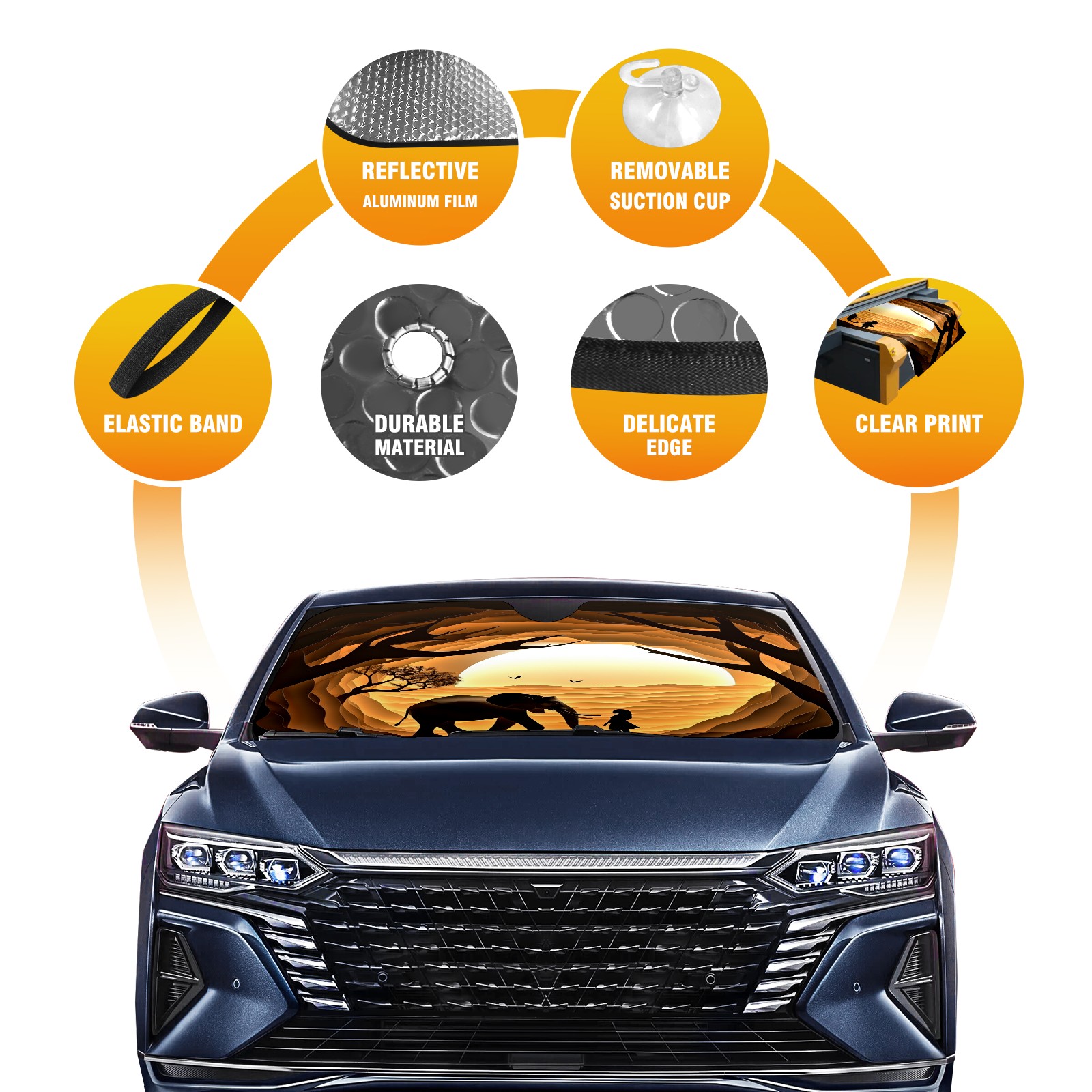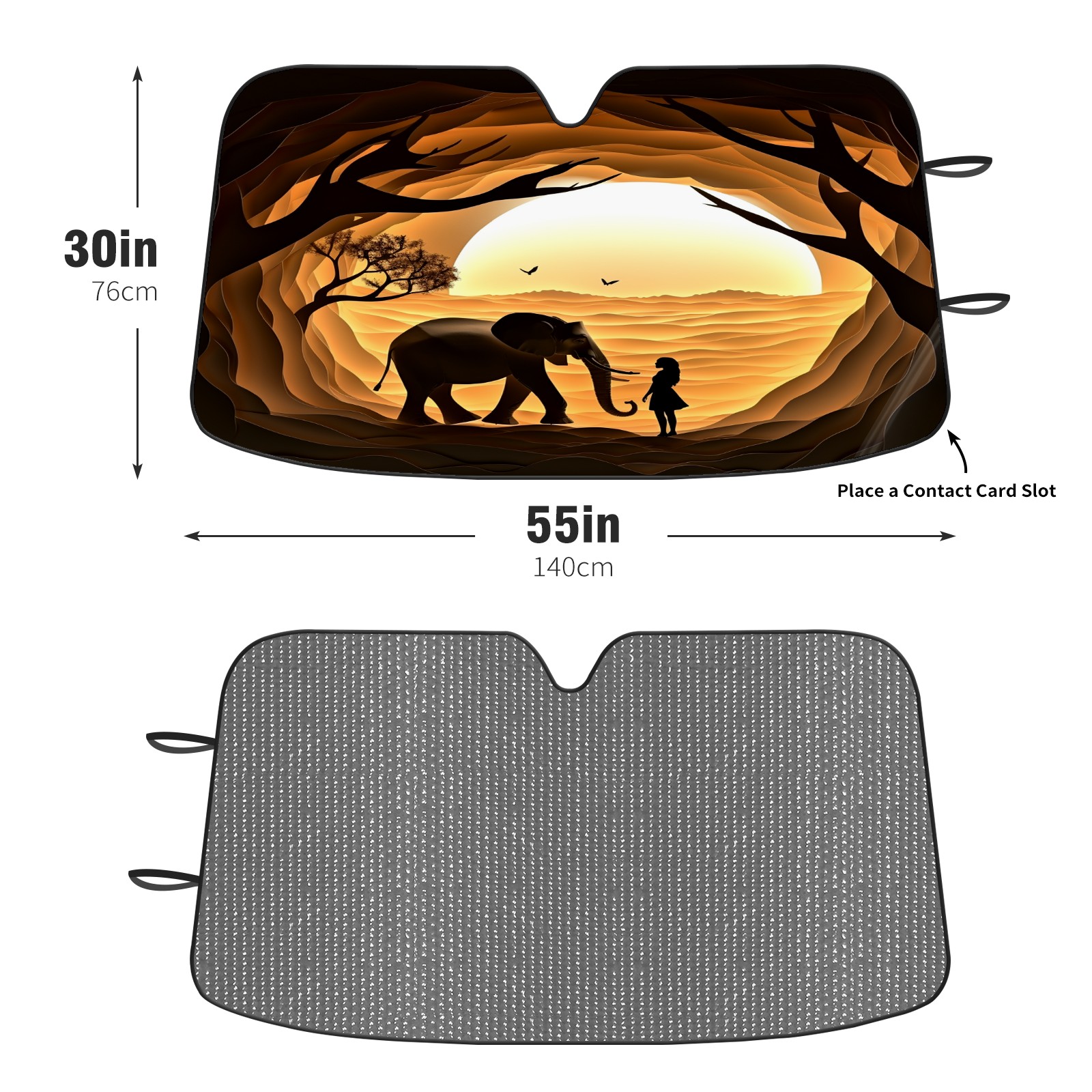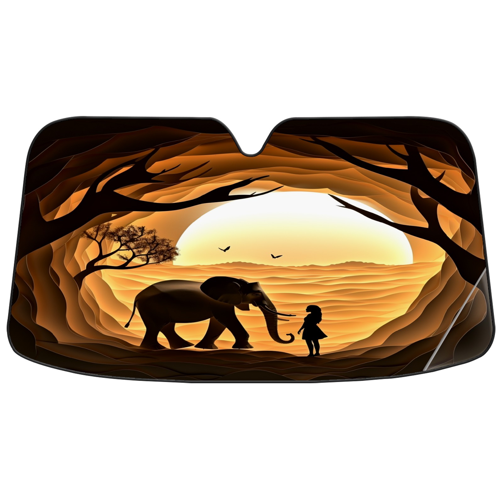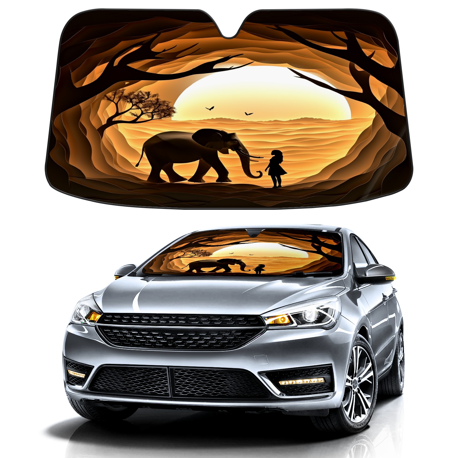 Car Windshield Sun Shade for Front Window Silhouette Paper Sculpture Elephant Foldable Vehicle Windshield Car Sun Visor Covers Automotive Window Protector Car Privacy Sun Blocker