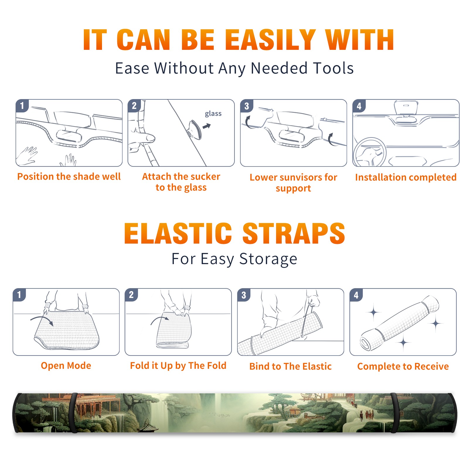 • Diameter /Size 63"L x 33.5"W</b><br> Made from excellent materials which makes it sturdy and protects the car from the sun. Easy to use and pack. Makes the interior of the car cooler.You can easily stash the sunshade in the storage bag or store long term.It open and closes easy. Also the leather storage bag is durable and easy to put the umbrella back into.This windshield sunshade provides complete coverage and keeps your car interior cool under direct sun. It is easy to open and position under the windshield and around the rear-view mirror. Makes Your Car Easy To Identify, Perfect For Finding Your Car In Crowded Parking Lots And Garages.Great Choice: It Is A Great Gift For Dad, Boyfriend, Brother, Brother And Uncle, Friends, Classmates, Family And So On.<br> Notice:</b><br> Due To Difference Computer Monitors, The Color Maybe Slightly Different From Picture. As Different Measurement Methods, Measurement Data Will Float Within 2%.I Hope You Understand.<br> If You Have Any Question About The Item Please Do Not Hesitate To Contact Us Immediately And We Will Give You A Satisfactory Reply Within 24 Hours.