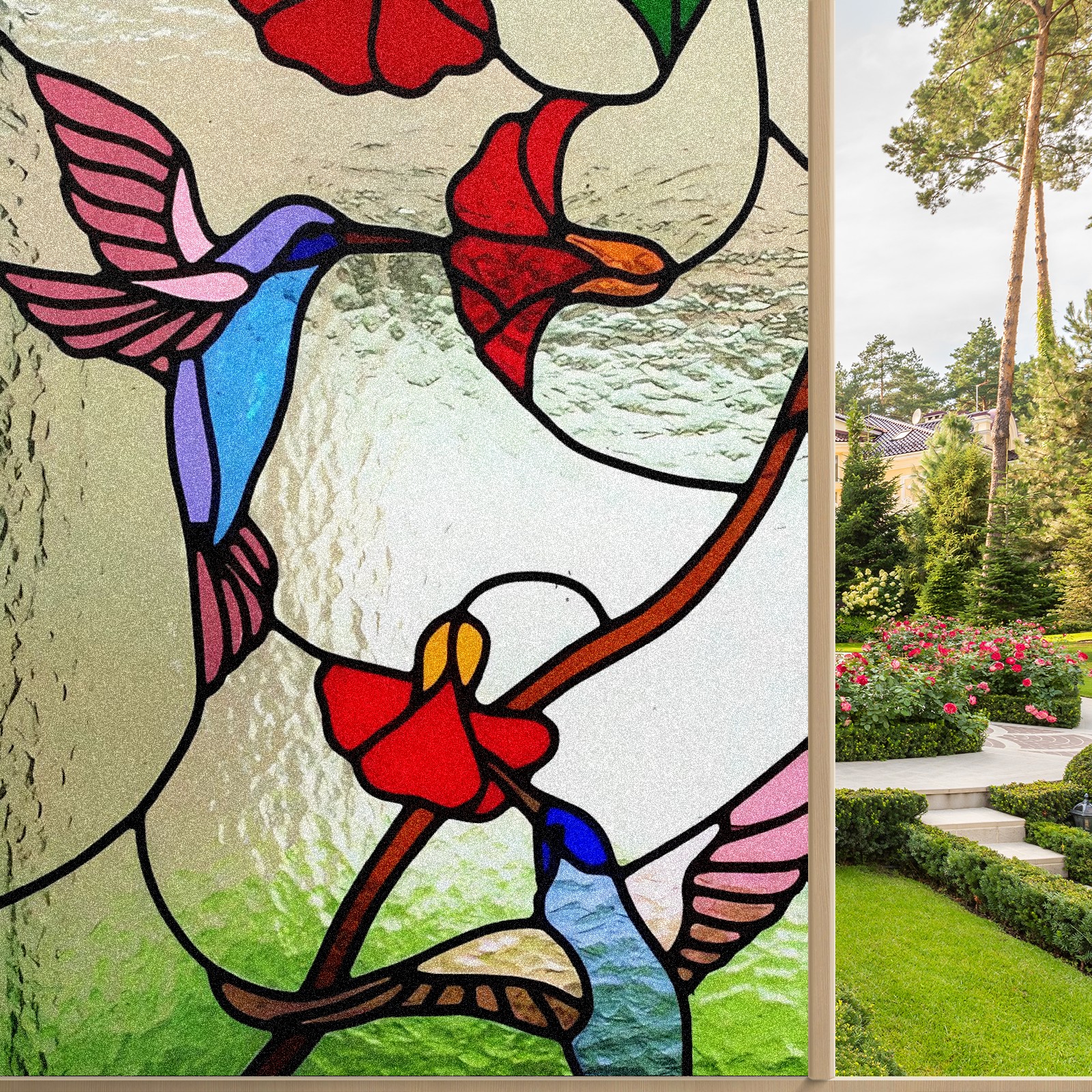 Our privacy window film offers customers a wide range of styles and sizes, with product applications ranging from classic frosted window film to colourful stained glass sticker designs to bring a certain sense of security to your home. This product is suitable for bedroom full blackout window film, living room elegant colourful decorative window film, bathroom functional frosted window film. Simple and convenient installation, non-adhesive type can be removed and cleaned.