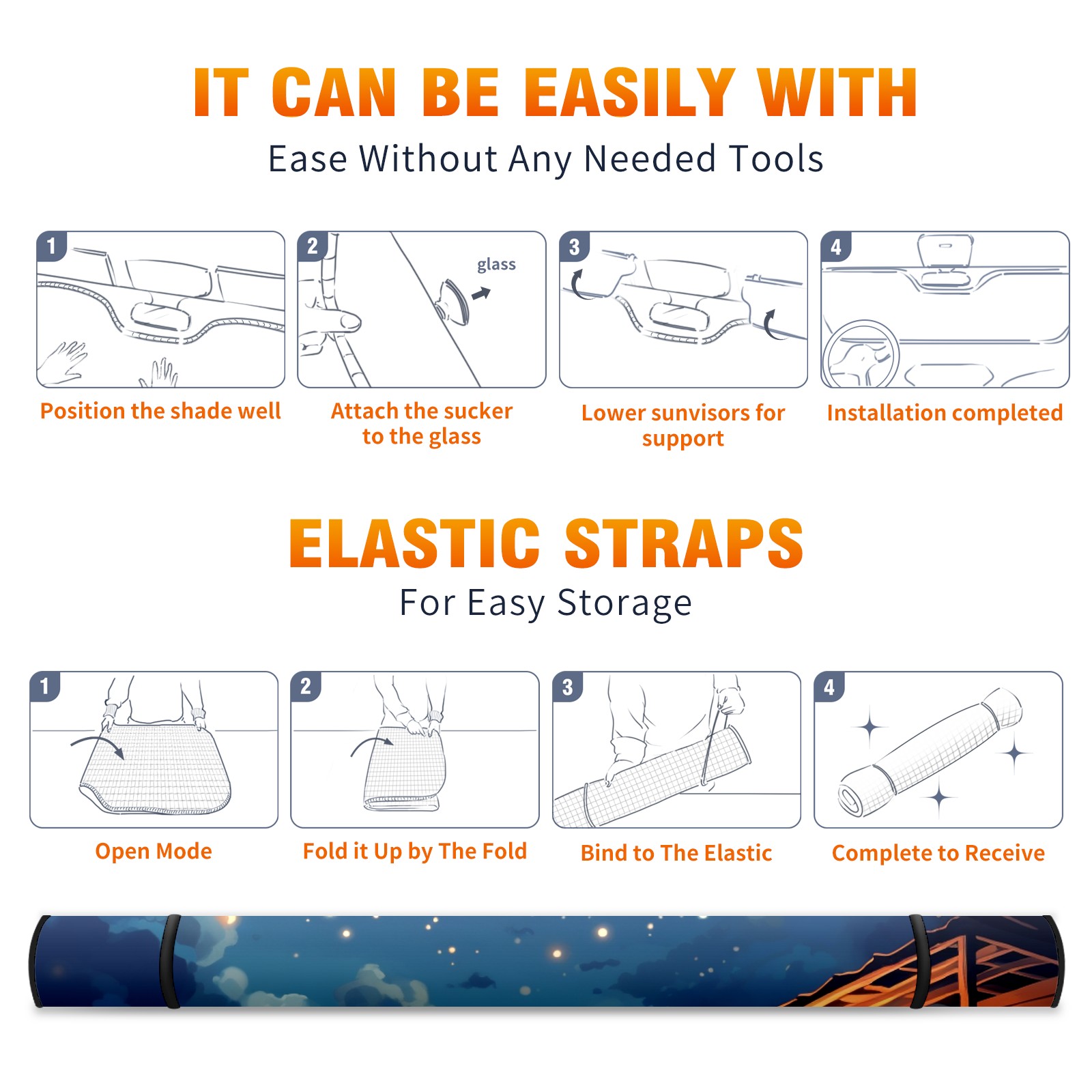 Diameter /Size 63"L x 33.5"W</b><br> Made from excellent materials which makes it sturdy and protects the car from the sun. Easy to use and pack. Makes the interior of the car cooler.You can easily stash the sunshade in the storage bag or store long term.It open and closes easy. Also the leather storage bag is durable and easy to put the umbrella back into.This windshield sunshade provides complete coverage and keeps your car interior cool under direct sun. It is easy to open and position under the windshield and around the rear-view mirror. Makes Your Car Easy To Identify, Perfect For Finding Your Car In Crowded Parking Lots And Garages.Great Choice: It Is A Great Gift For Dad, Boyfriend, Brother, Brother And Uncle, Friends, Classmates, Family And So On.<br> Notice:</b><br> Due To Difference Computer Monitors, The Color Maybe Slightly Different From Picture. As Different Measurement Methods, Measurement Data Will Float Within 2%.I Hope You Understand.<br> If You Have Any Question About The Item Please Do Not Hesitate To Contact Us Immediately And We Will Give You A Satisfactory Reply Within 24 Hours.