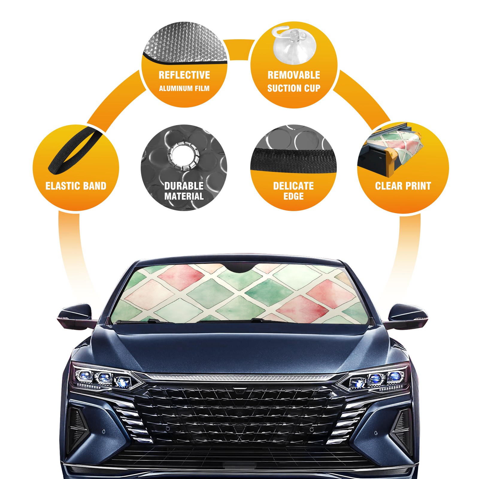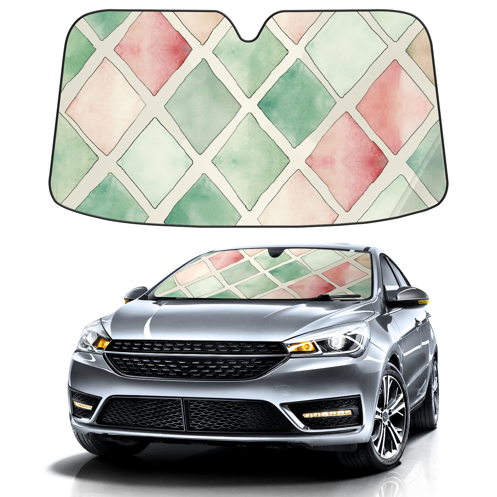 Car Windshield Sun Shade for Front Window Lattice Pattern 3 Foldable Vehicle Windshield Car Sun Visor Covers Automotive Window Protector Car Privacy Sun Blocker