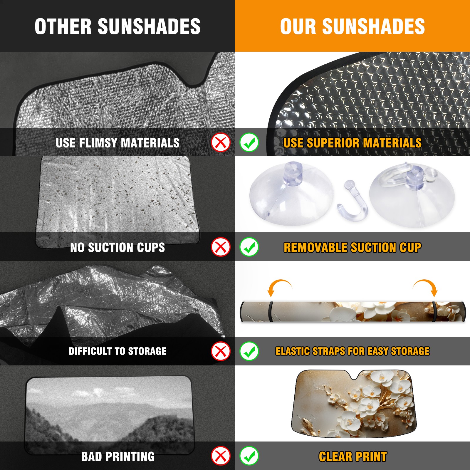Car Windshield Sun Shade for Front Window Flowers 8 Foldable Vehicle Windshield Car Sun Visor Covers Automotive Window Protector Car Privacy Sun Blocker
