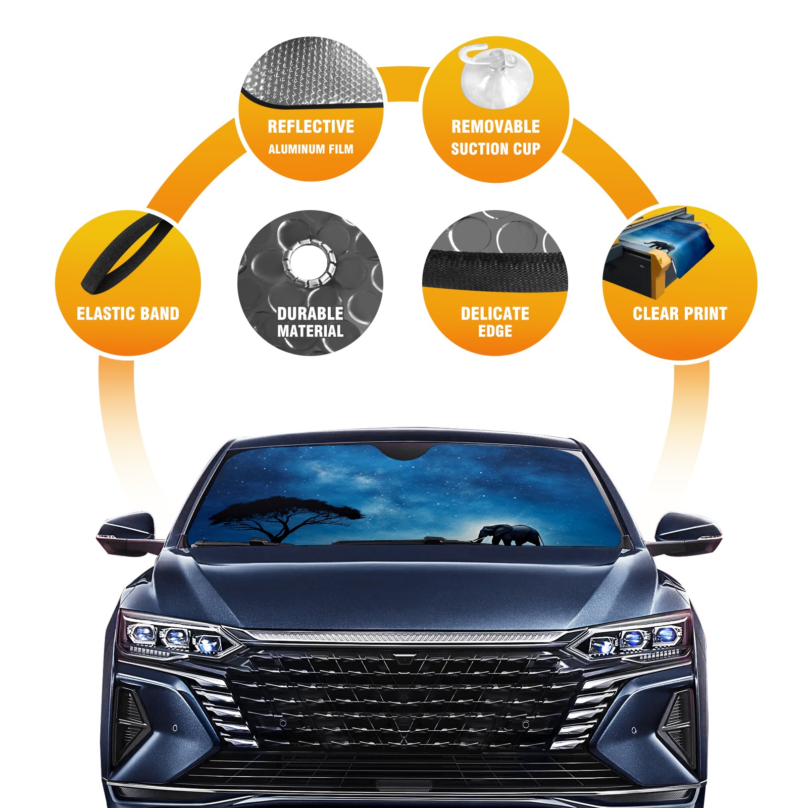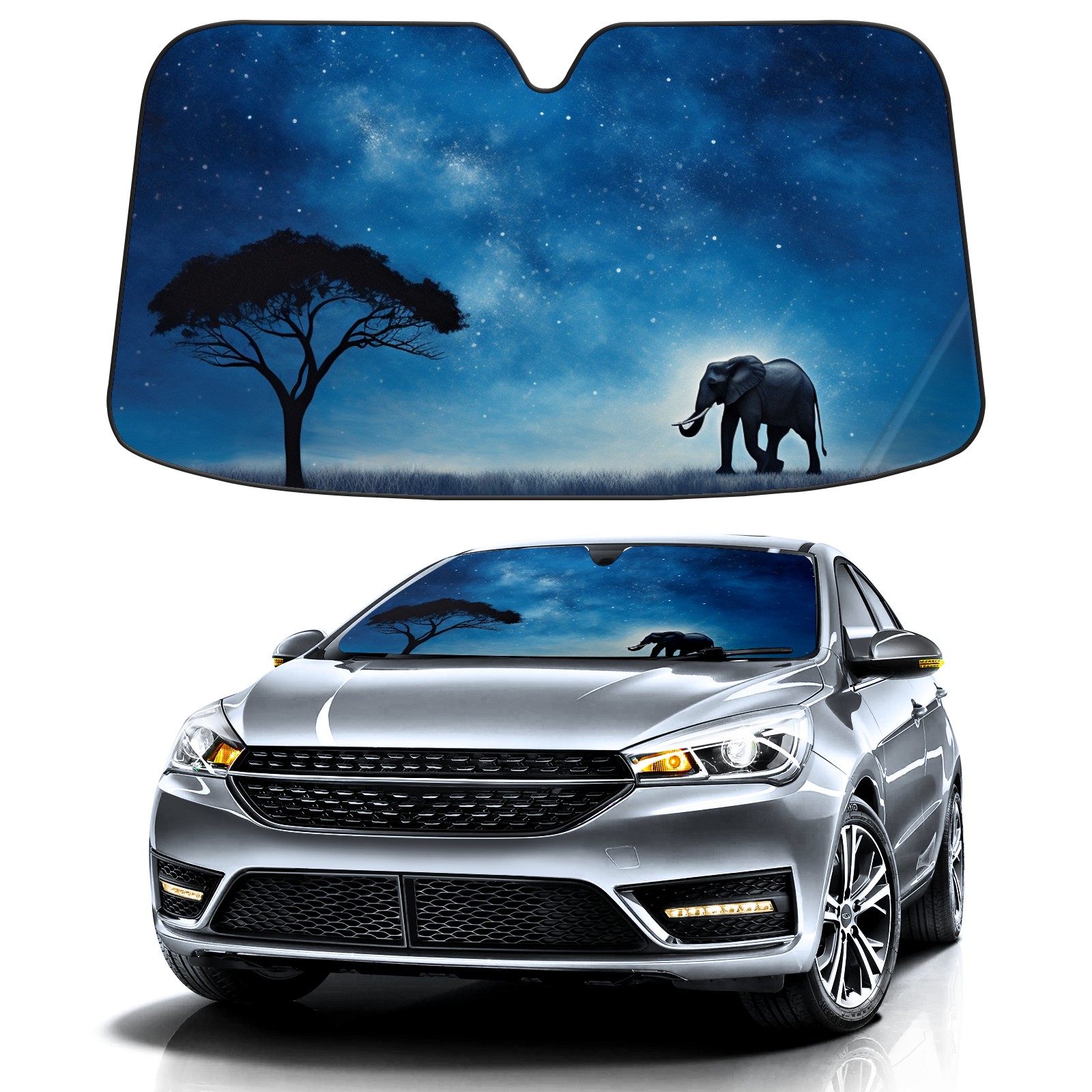 Car Windshield Sun Shade for Front Window Elephant And Sky 3 Foldable Vehicle Windshield Car Sun Visor Covers Automotive Window Protector Car Privacy Sun Blocker