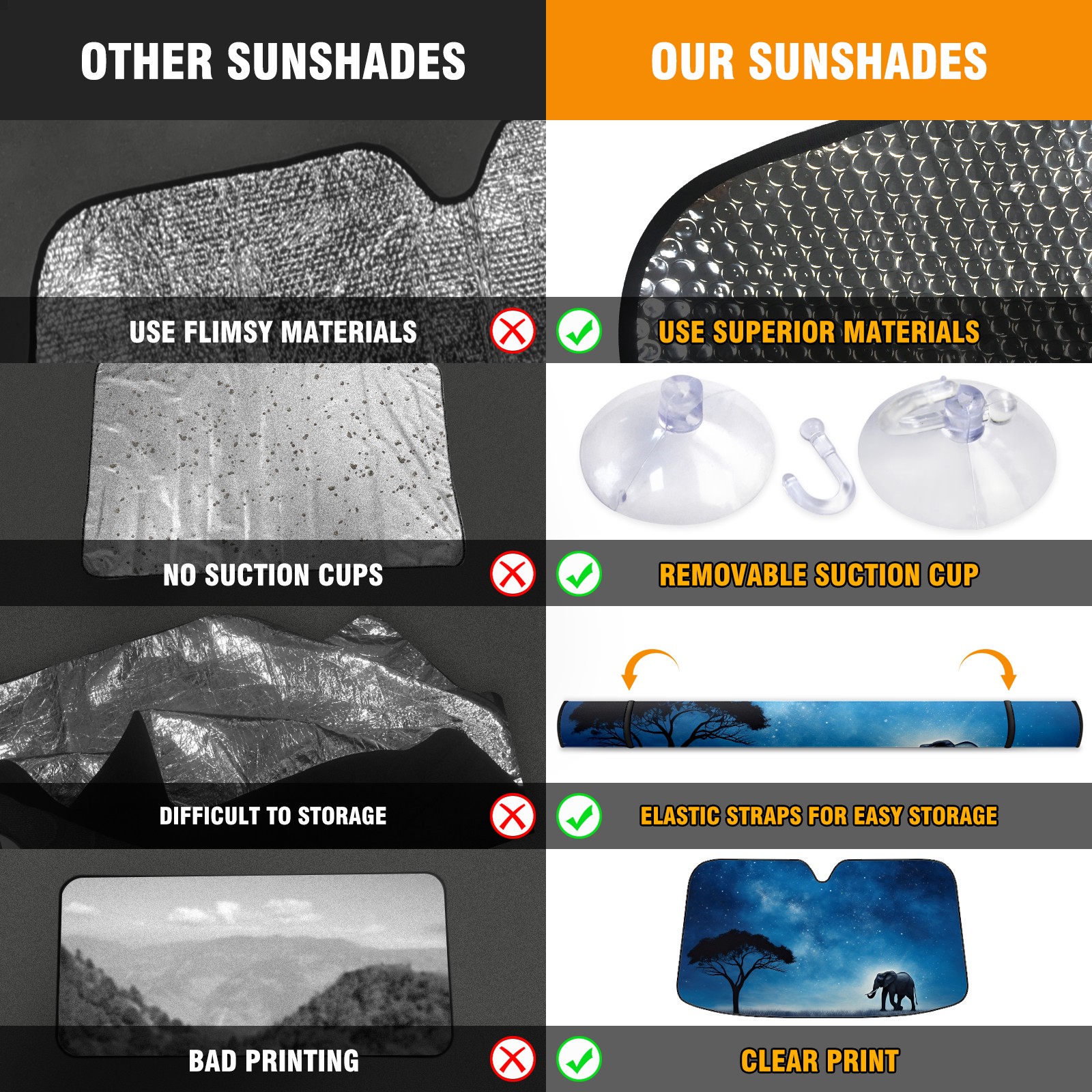 • Diameter /Size 63"L x 33.5"W</b><br> Made from excellent materials which makes it sturdy and protects the car from the sun. Easy to use and pack. Makes the interior of the car cooler.You can easily stash the sunshade in the storage bag or store long term.It open and closes easy. Also the leather storage bag is durable and easy to put the umbrella back into.This windshield sunshade provides complete coverage and keeps your car interior cool under direct sun. It is easy to open and position under the windshield and around the rear-view mirror. Makes Your Car Easy To Identify, Perfect For Finding Your Car In Crowded Parking Lots And Garages.Great Choice: It Is A Great Gift For Dad, Boyfriend, Brother, Brother And Uncle, Friends, Classmates, Family And So On.<br> Notice:</b><br> Due To Difference Computer Monitors, The Color Maybe Slightly Different From Picture. As Different Measurement Methods, Measurement Data Will Float Within 2%.I Hope You Understand.<br> If You Have Any Question About The Item Please Do Not Hesitate To Contact Us Immediately And We Will Give You A Satisfactory Reply Within 24 Hours.