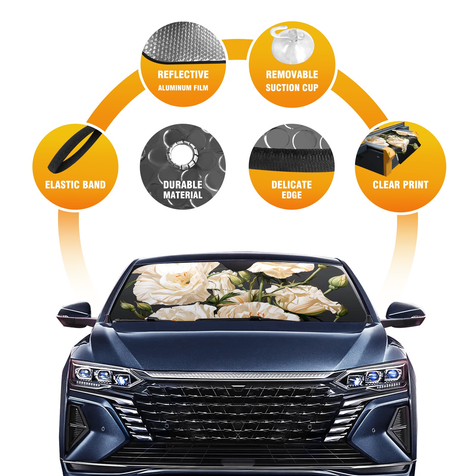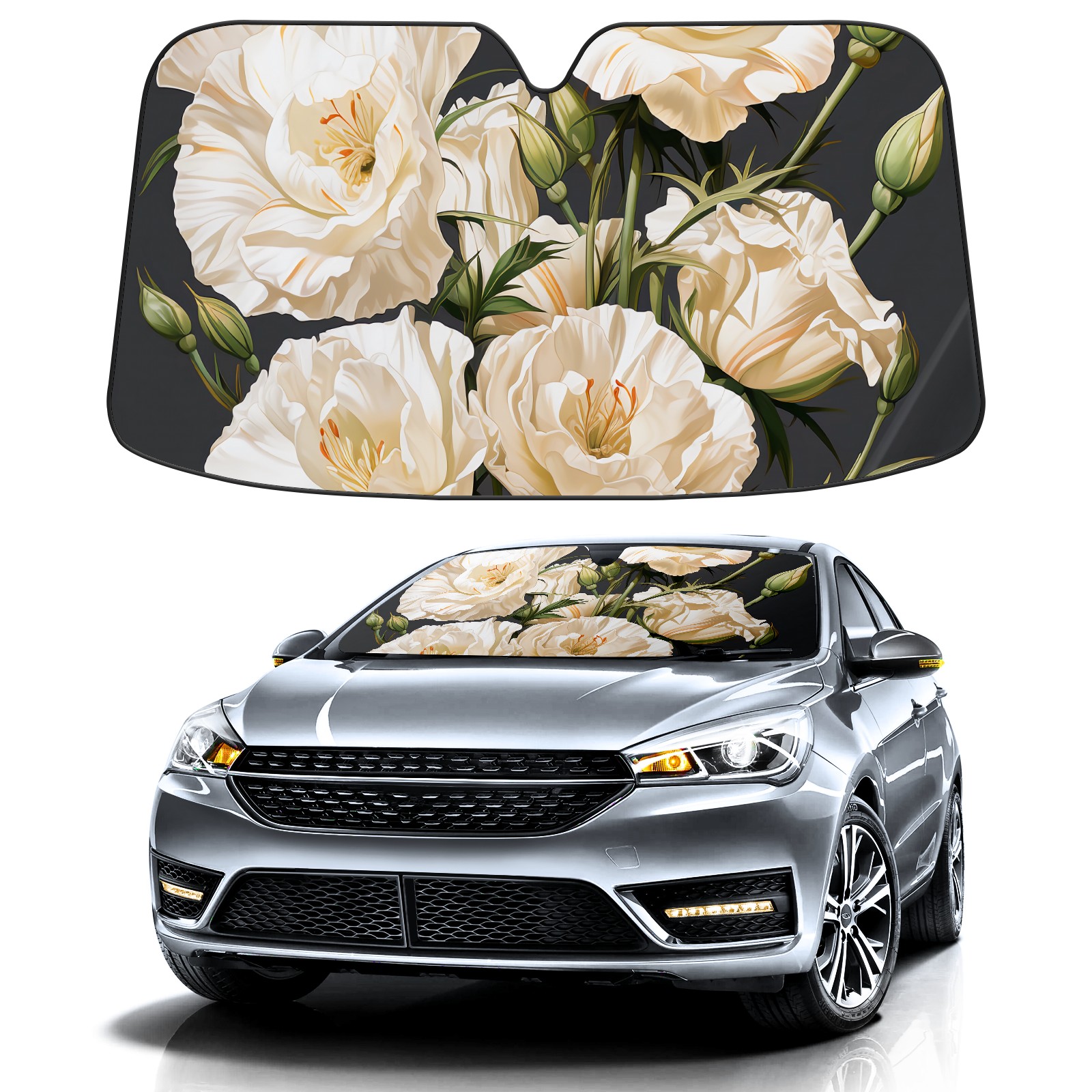 Car Windshield Sun Shade for Front Window Eustoma Bouquet Foldable Vehicle Windshield Car Sun Visor Covers Automotive Window Protector Car Privacy Sun Blocker