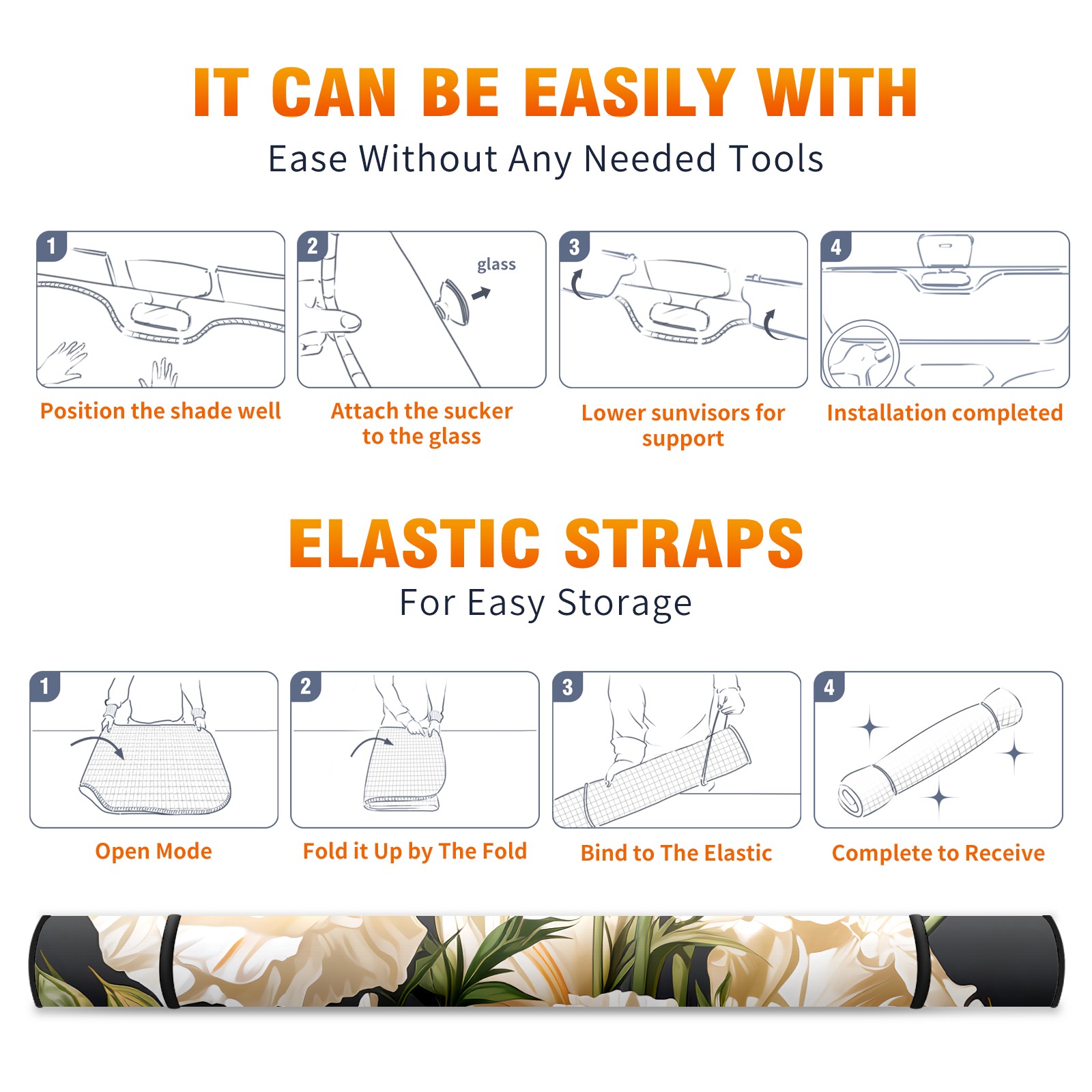 Diameter /Size 63"L x 33.5"W</b><br> Made from excellent materials which makes it sturdy and protects the car from the sun. Easy to use and pack. Makes the interior of the car cooler.You can easily stash the sunshade in the storage bag or store long term.It open and closes easy. Also the leather storage bag is durable and easy to put the umbrella back into.This windshield sunshade provides complete coverage and keeps your car interior cool under direct sun. It is easy to open and position under the windshield and around the rear-view mirror. Makes Your Car Easy To Identify, Perfect For Finding Your Car In Crowded Parking Lots And Garages.Great Choice: It Is A Great Gift For Dad, Boyfriend, Brother, Brother And Uncle, Friends, Classmates, Family And So On.<br> Notice:</b><br> Due To Difference Computer Monitors, The Color Maybe Slightly Different From Picture. As Different Measurement Methods, Measurement Data Will Float Within 2%.I Hope You Understand.<br> If You Have Any Question About The Item Please Do Not Hesitate To Contact Us Immediately And We Will Give You A Satisfactory Reply Within 24 Hours.