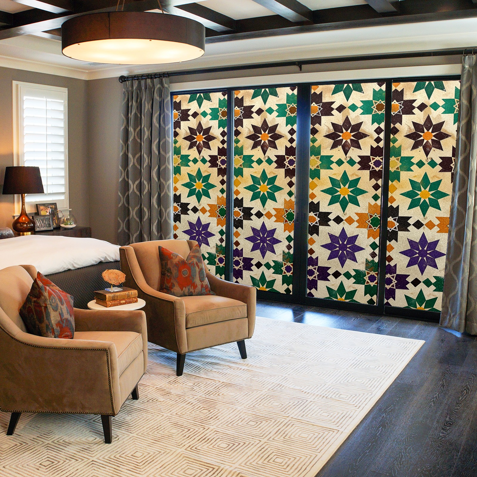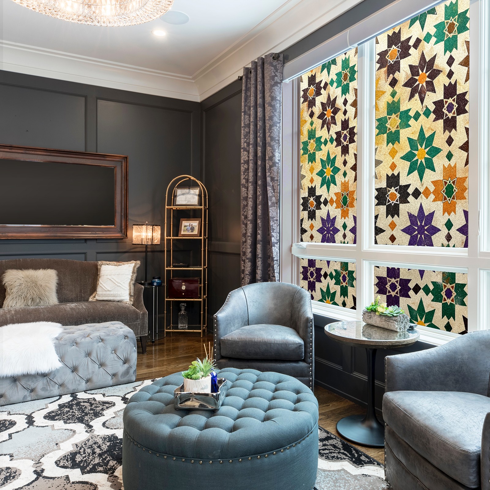 Our privacy window film offers customers a wide range of styles and sizes, with product applications ranging from classic frosted window film to colourful stained glass sticker designs to bring a certain sense of security to your home. This product is suitable for bedroom full blackout window film, living room elegant colourful decorative window film, bathroom functional frosted window film. Simple and convenient installation, non-adhesive type can be removed and cleaned.