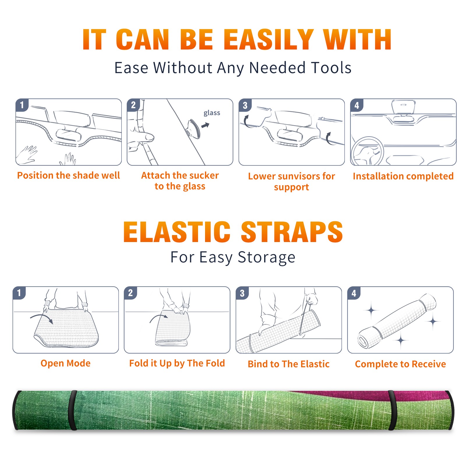 Diameter /Size 63"L x 33.5"W</b><br> Made from excellent materials which makes it sturdy and protects the car from the sun. Easy to use and pack. Makes the interior of the car cooler.You can easily stash the sunshade in the storage bag or store long term.It open and closes easy. Also the leather storage bag is durable and easy to put the umbrella back into.This windshield sunshade provides complete coverage and keeps your car interior cool under direct sun. It is easy to open and position under the windshield and around the rear-view mirror. Makes Your Car Easy To Identify, Perfect For Finding Your Car In Crowded Parking Lots And Garages.Great Choice: It Is A Great Gift For Dad, Boyfriend, Brother, Brother And Uncle, Friends, Classmates, Family And So On.<br> Notice:</b><br> Due To Difference Computer Monitors, The Color Maybe Slightly Different From Picture. As Different Measurement Methods, Measurement Data Will Float Within 2%.I Hope You Understand.<br> If You Have Any Question About The Item Please Do Not Hesitate To Contact Us Immediately And We Will Give You A Satisfactory Reply Within 24 Hours.