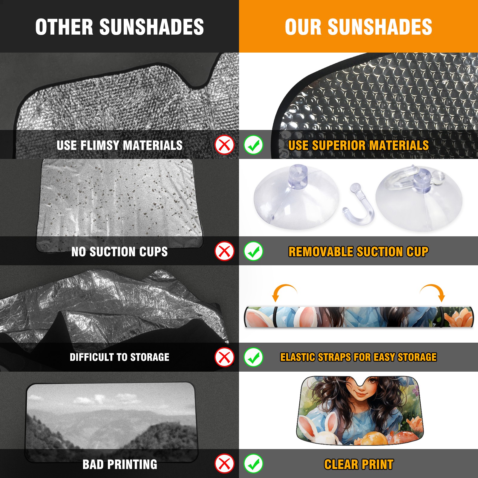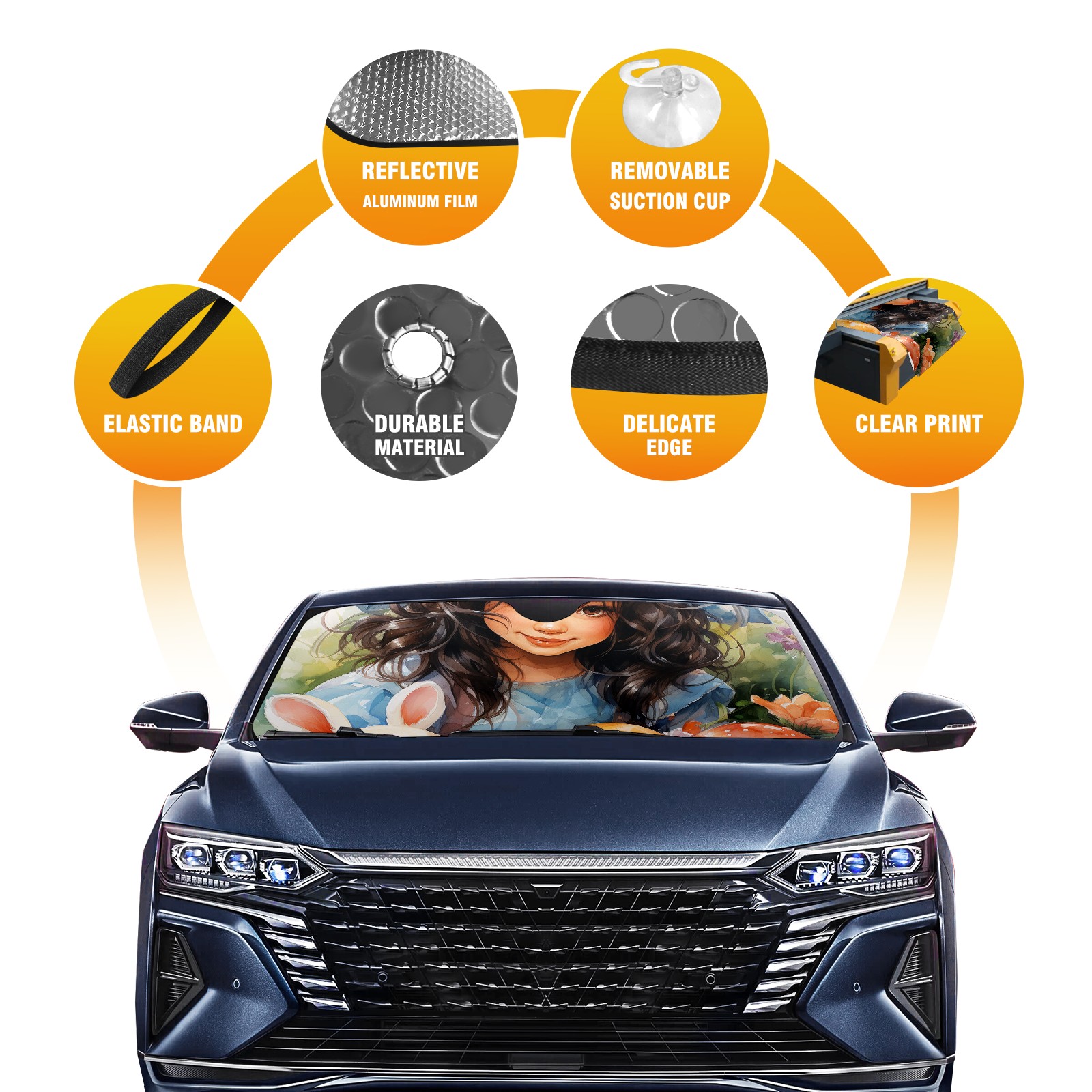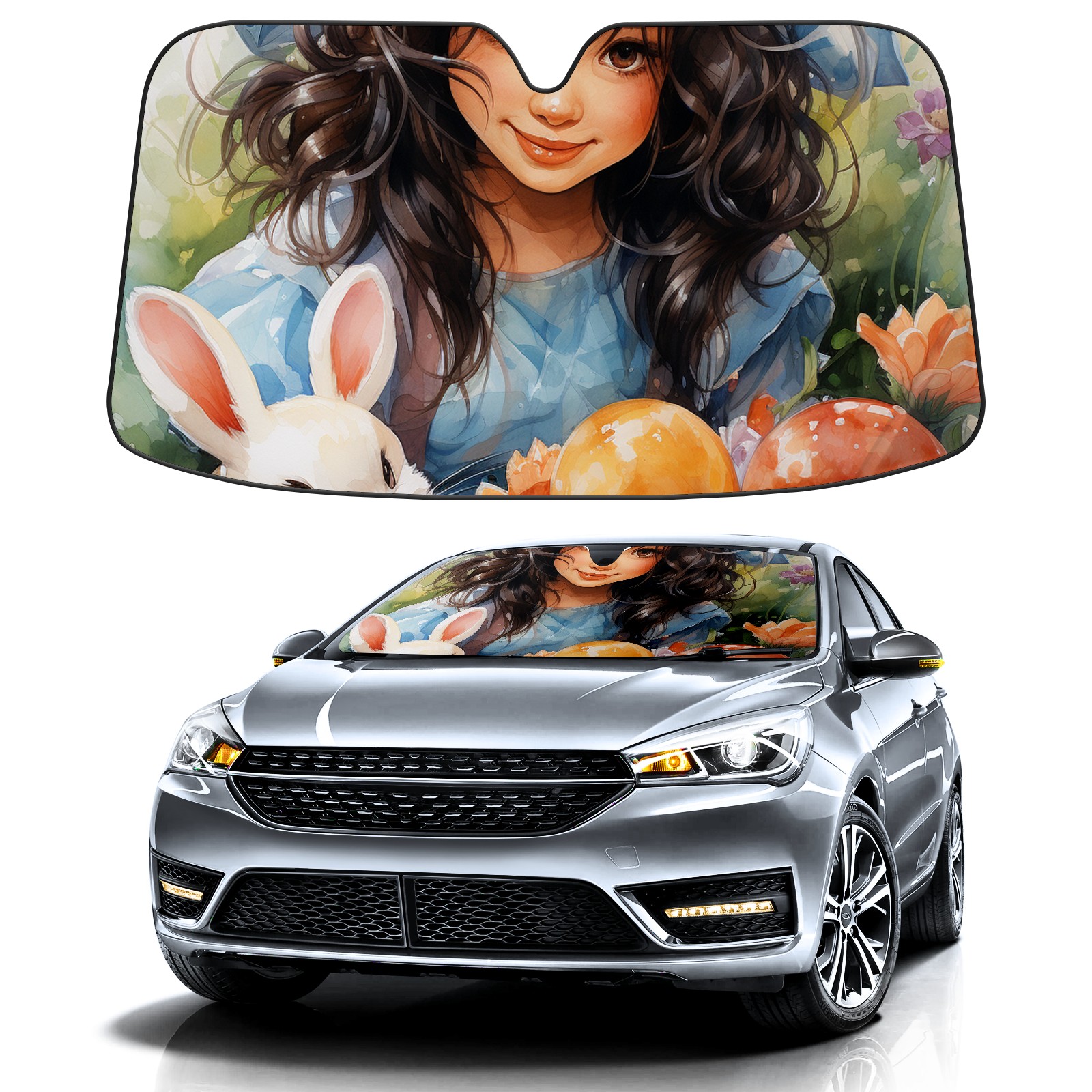 Car Windshield Sun Shade for Front Window Easter (85) Foldable Vehicle Windshield Car Sun Visor Covers Automotive Window Protector Car Privacy Sun Blocker
