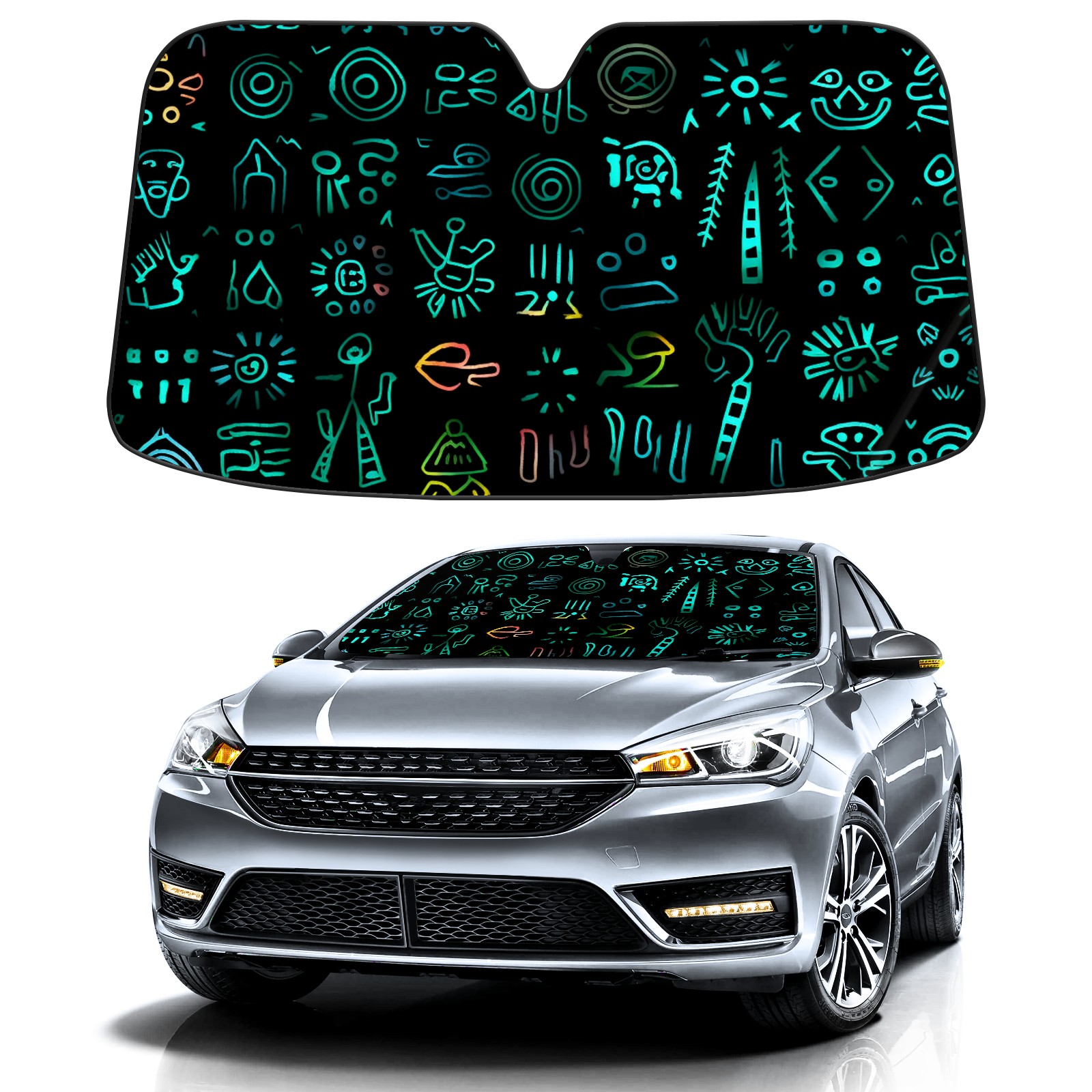 Car Windshield Sun Shade for Front Window Cave Painting Foldable Vehicle Windshield Car Sun Visor Covers Automotive Window Protector Car Privacy Sun Blocker