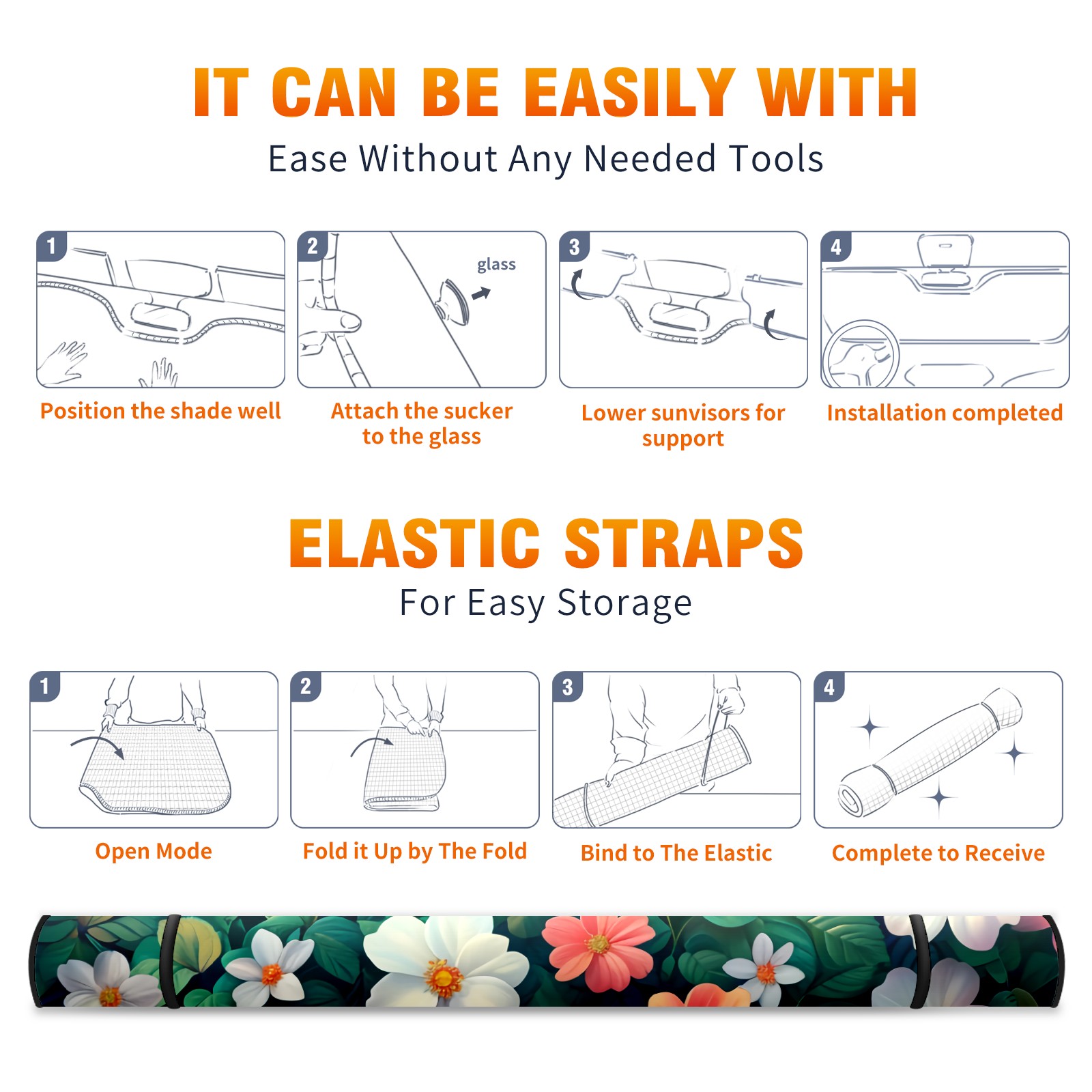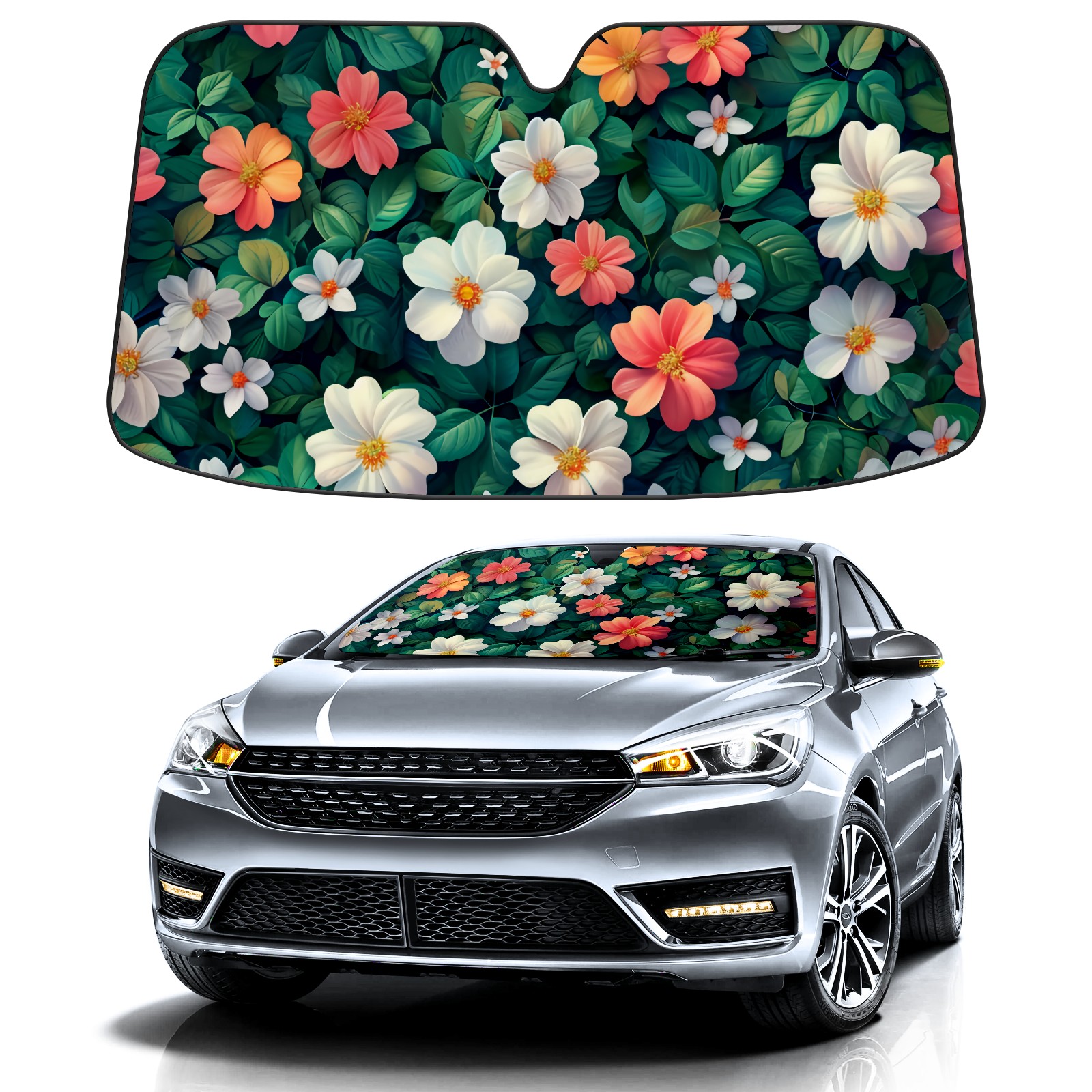 Car Windshield Sun Shade for Front Window Myriad Flowers Foldable Vehicle Windshield Car Sun Visor Covers Automotive Window Protector Car Privacy Sun Blocker