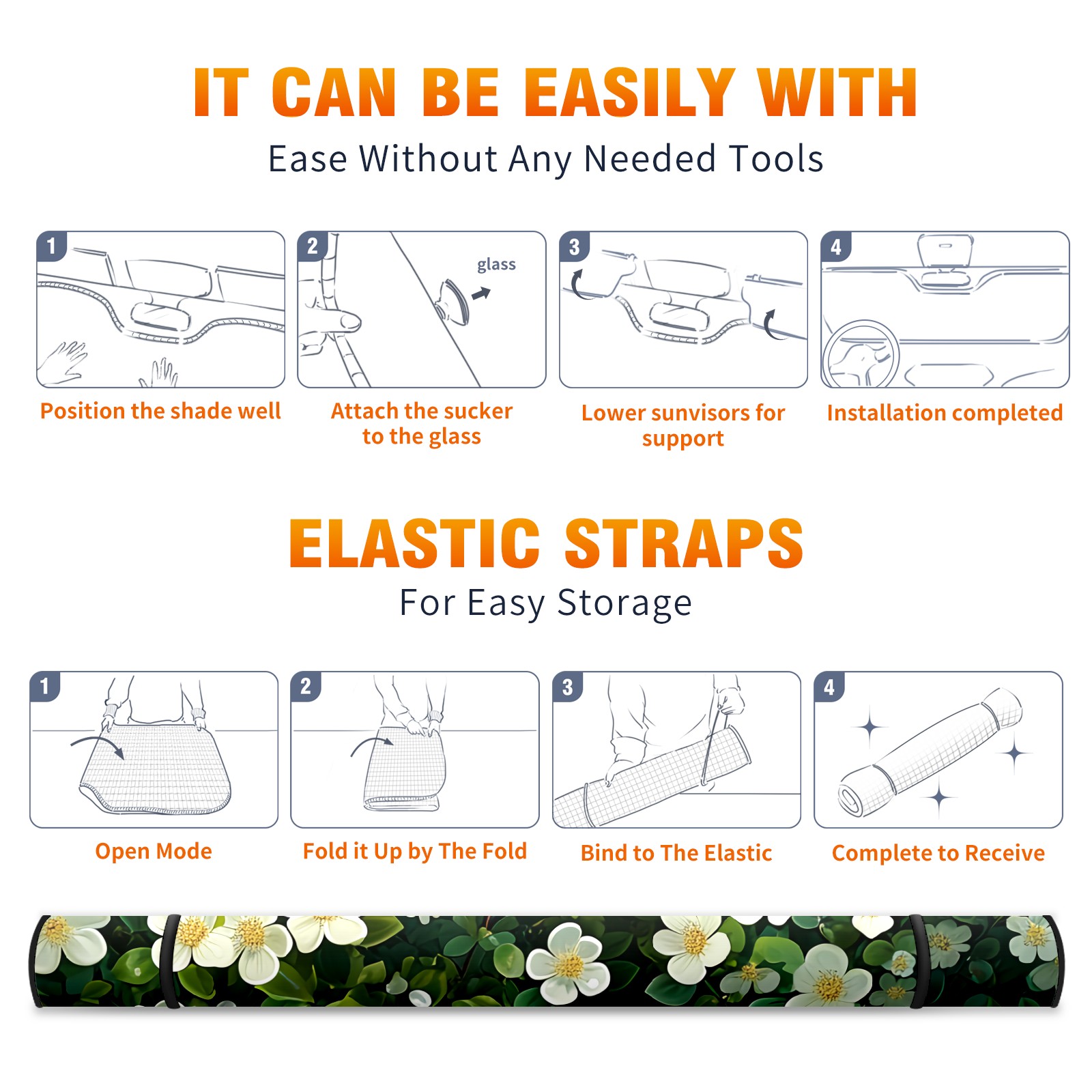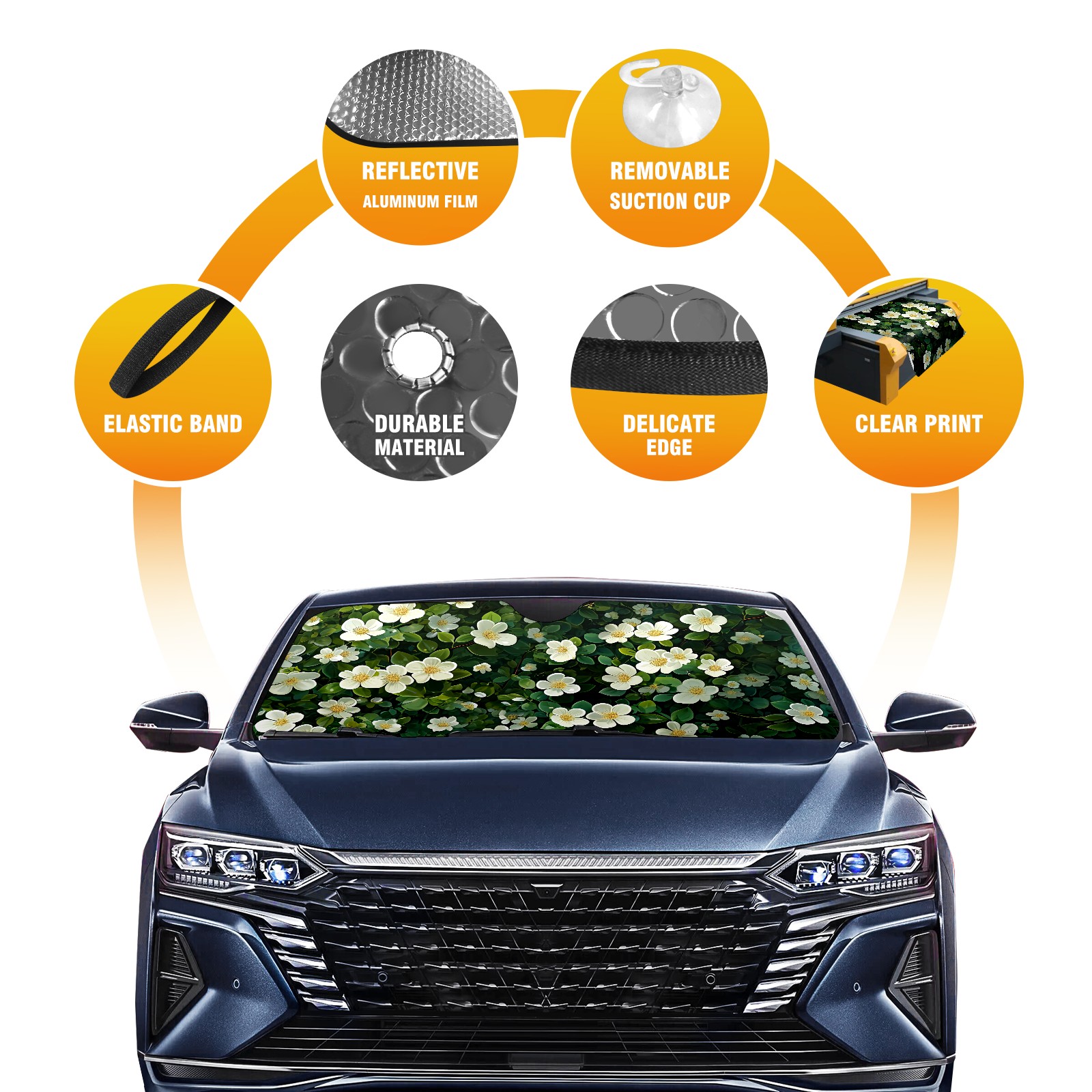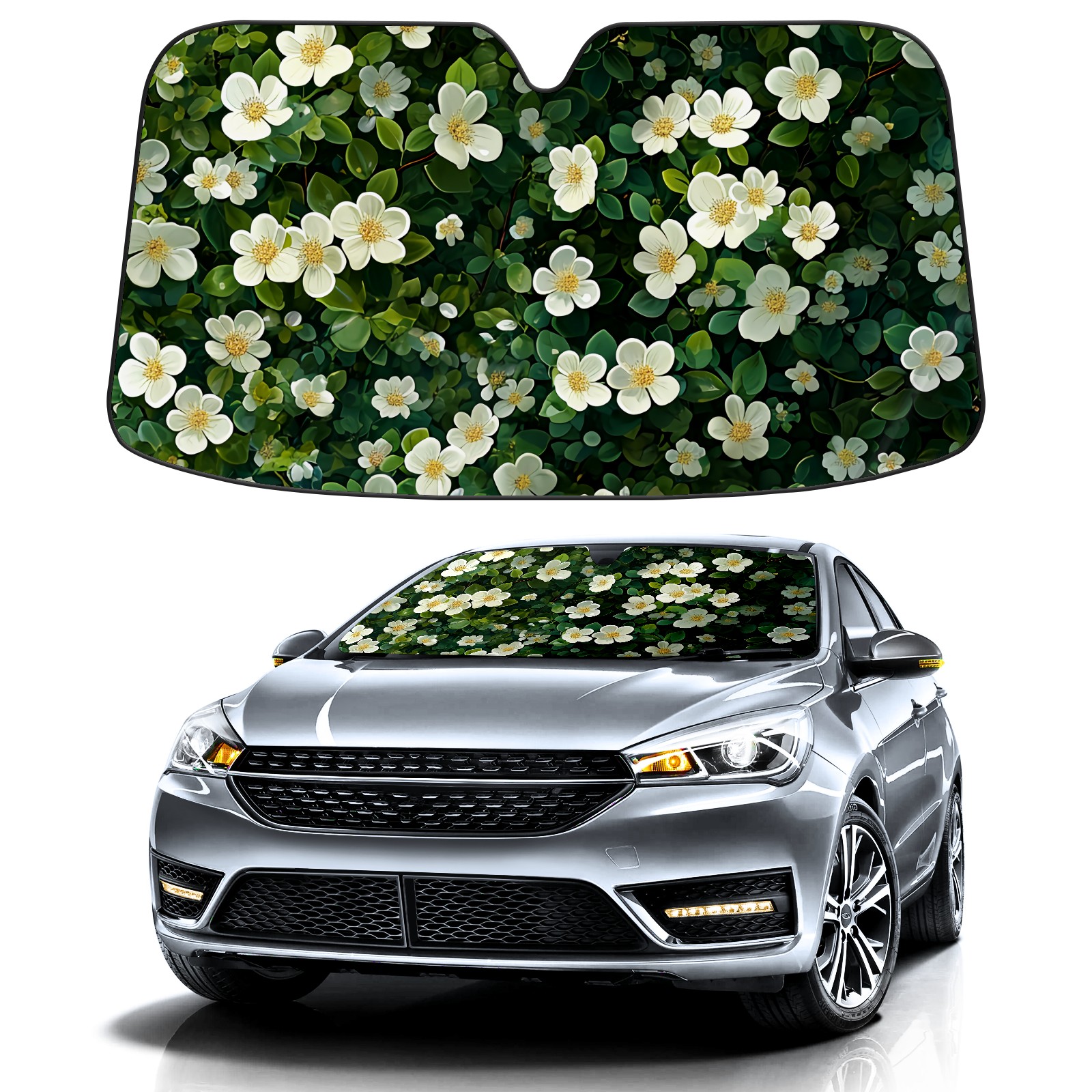 Car Windshield Sun Shade for Front Window Colorful Flowers A Foldable Vehicle Windshield Car Sun Visor Covers Automotive Window Protector Car Privacy Sun Blocker