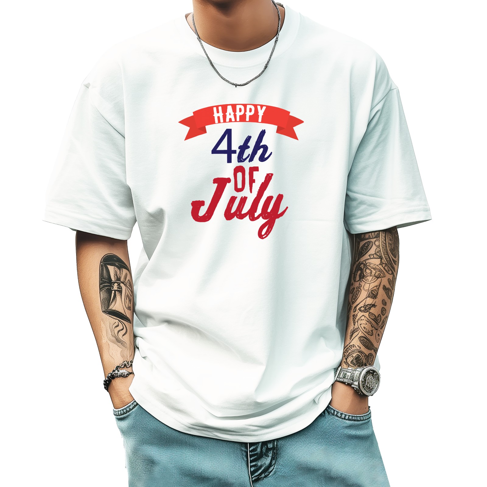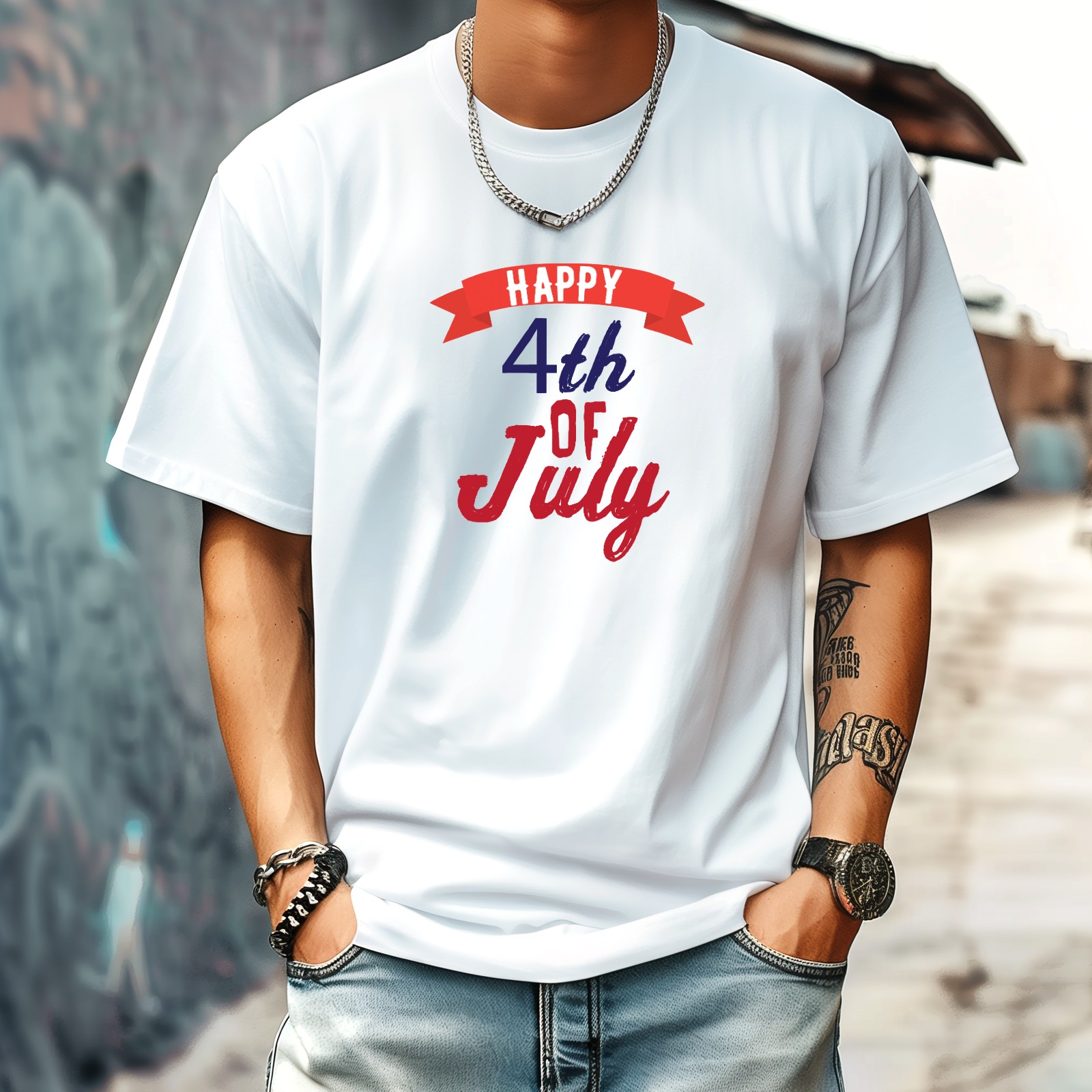 Happy July Independence Day T-Shirt for Man Tops Short Sleeves Shirt Crew Neck Shirt XS