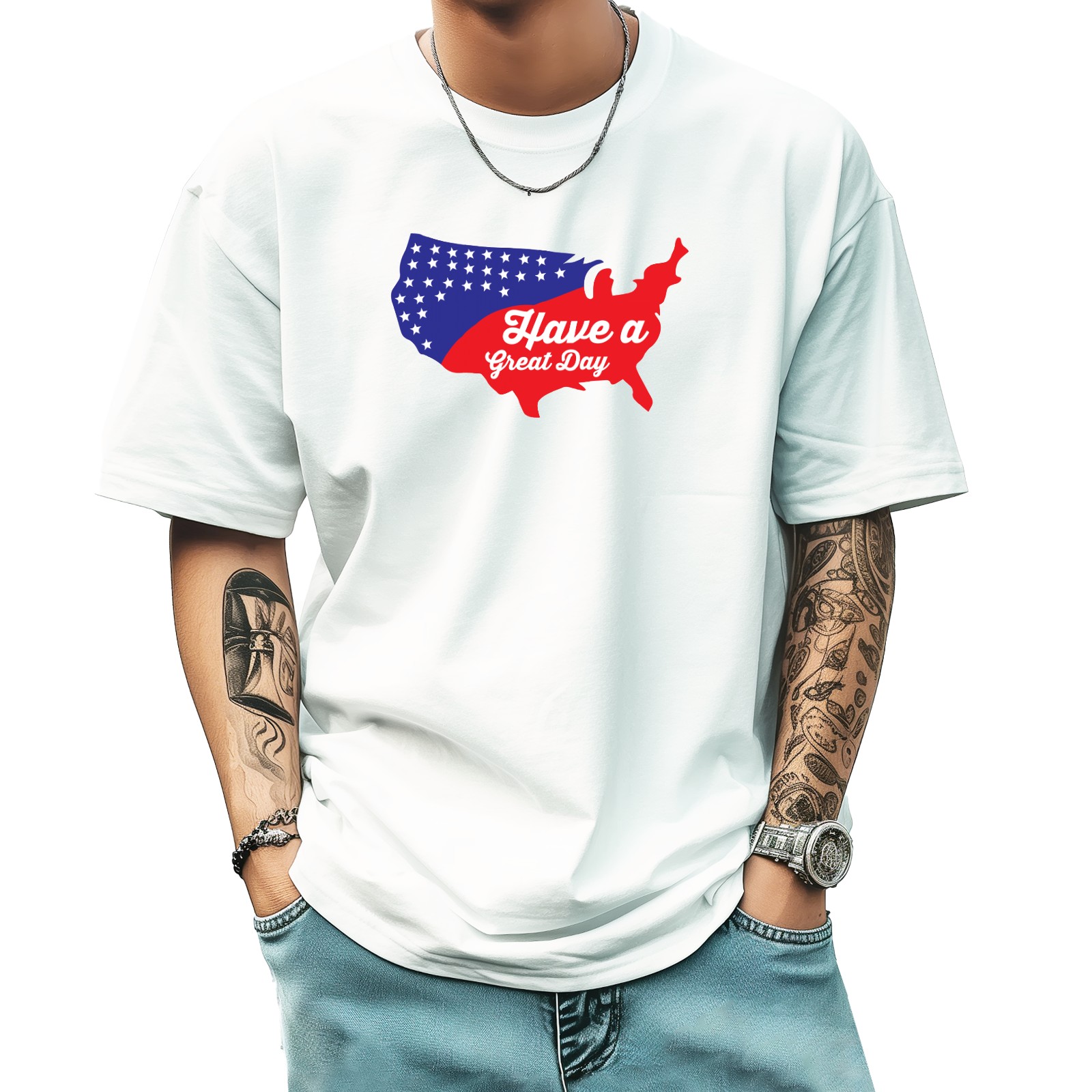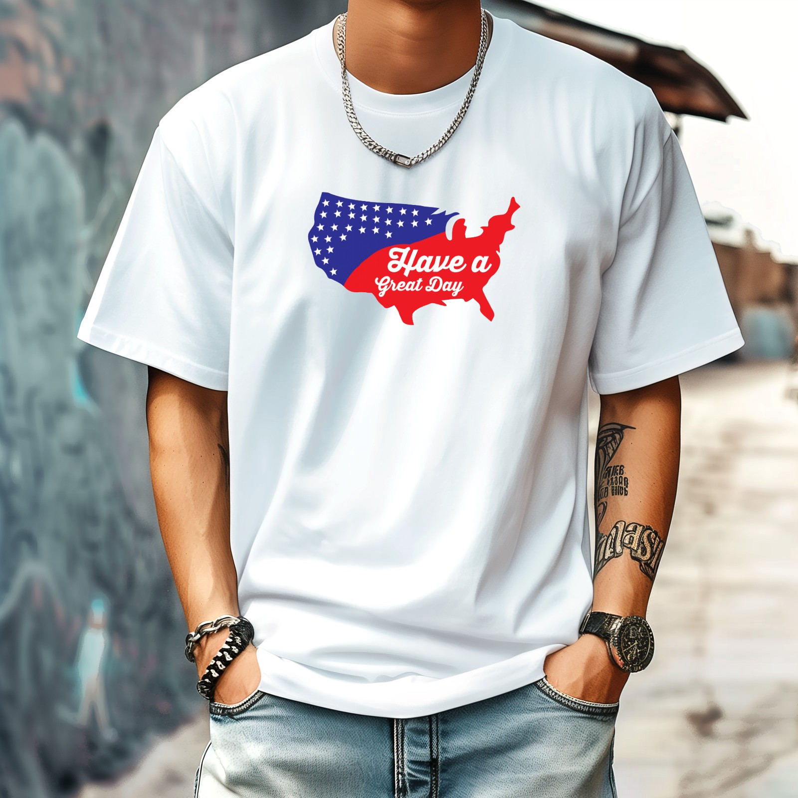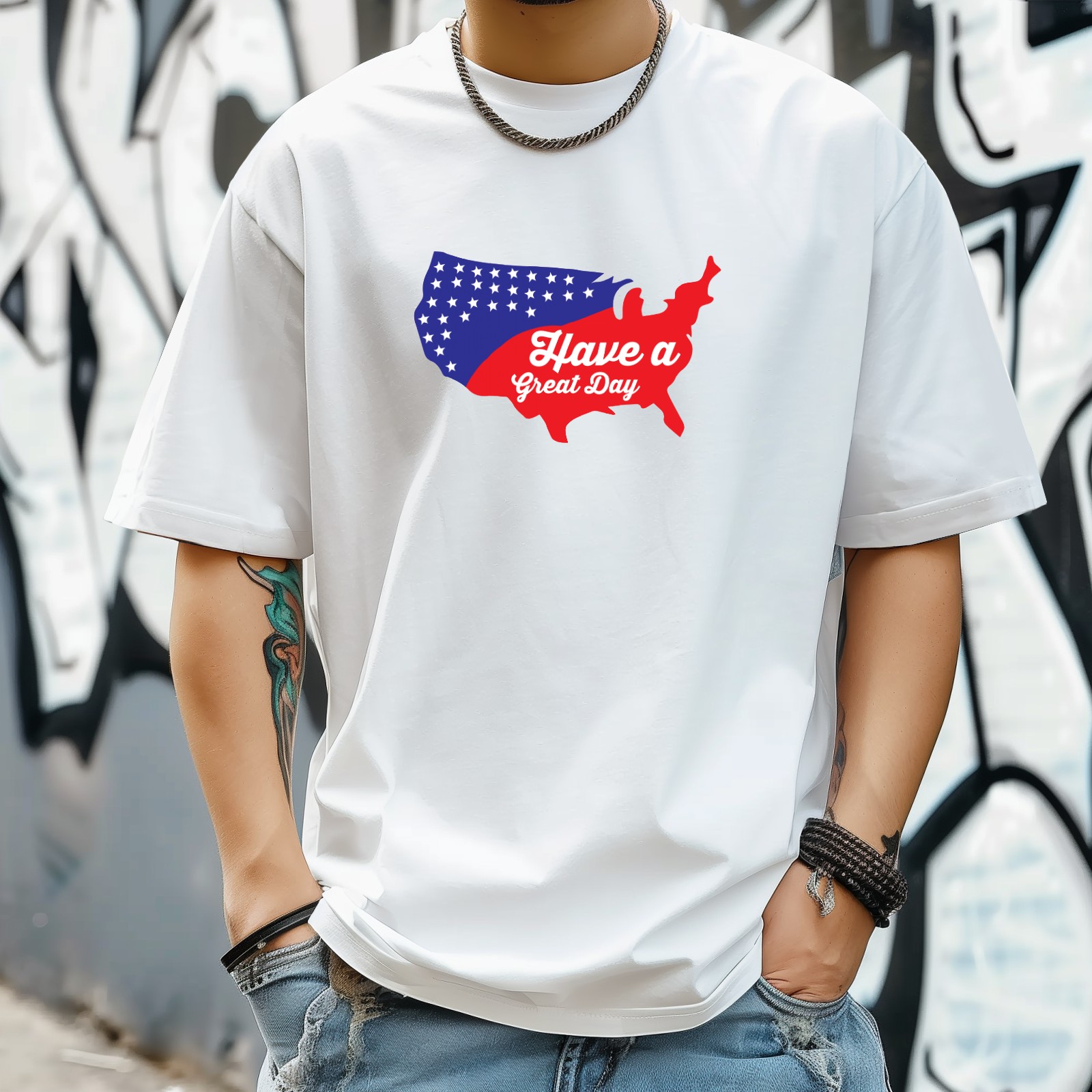 Have A Great 4th T-Shirt for Man Tops Short Sleeves Shirt Crew Neck Shirt XS