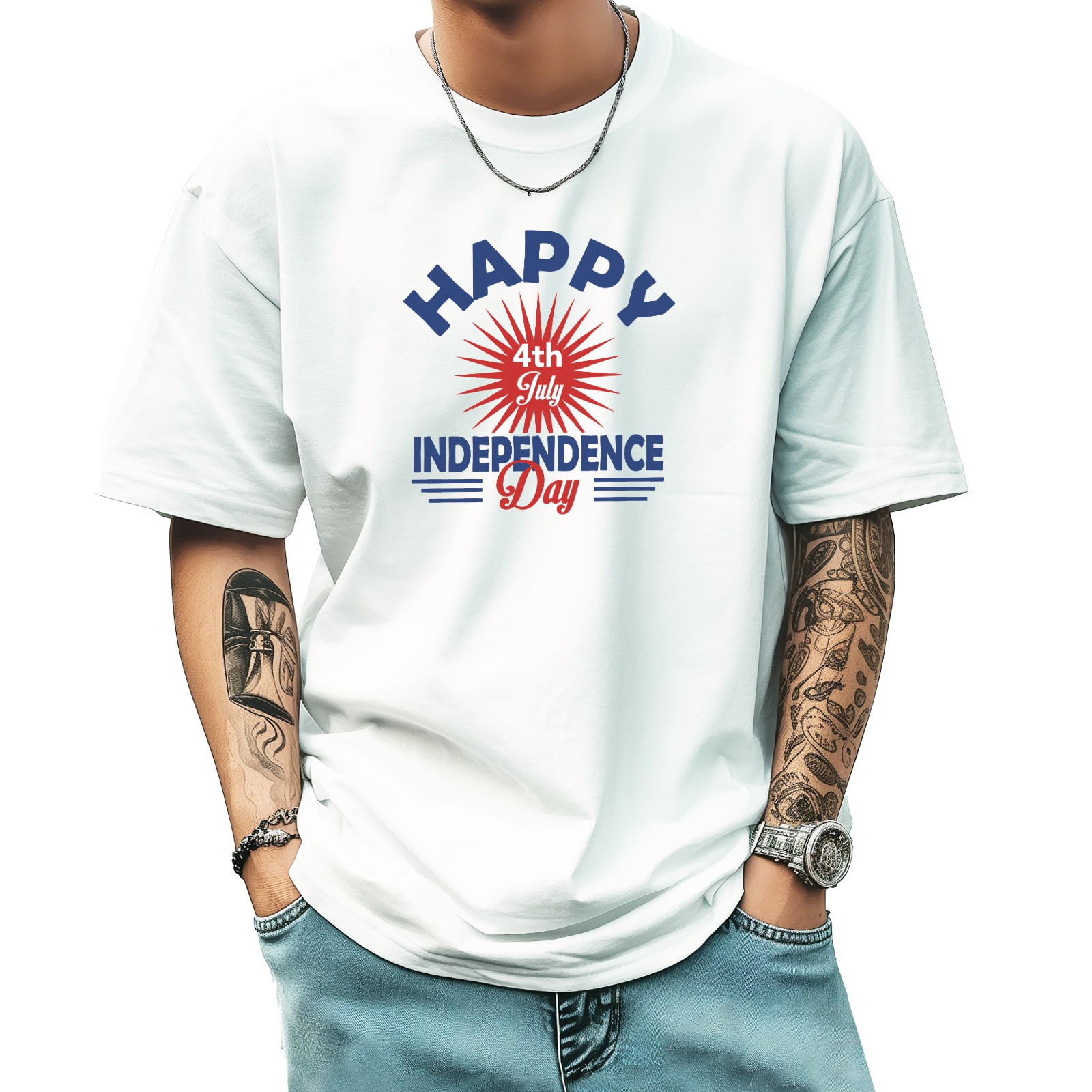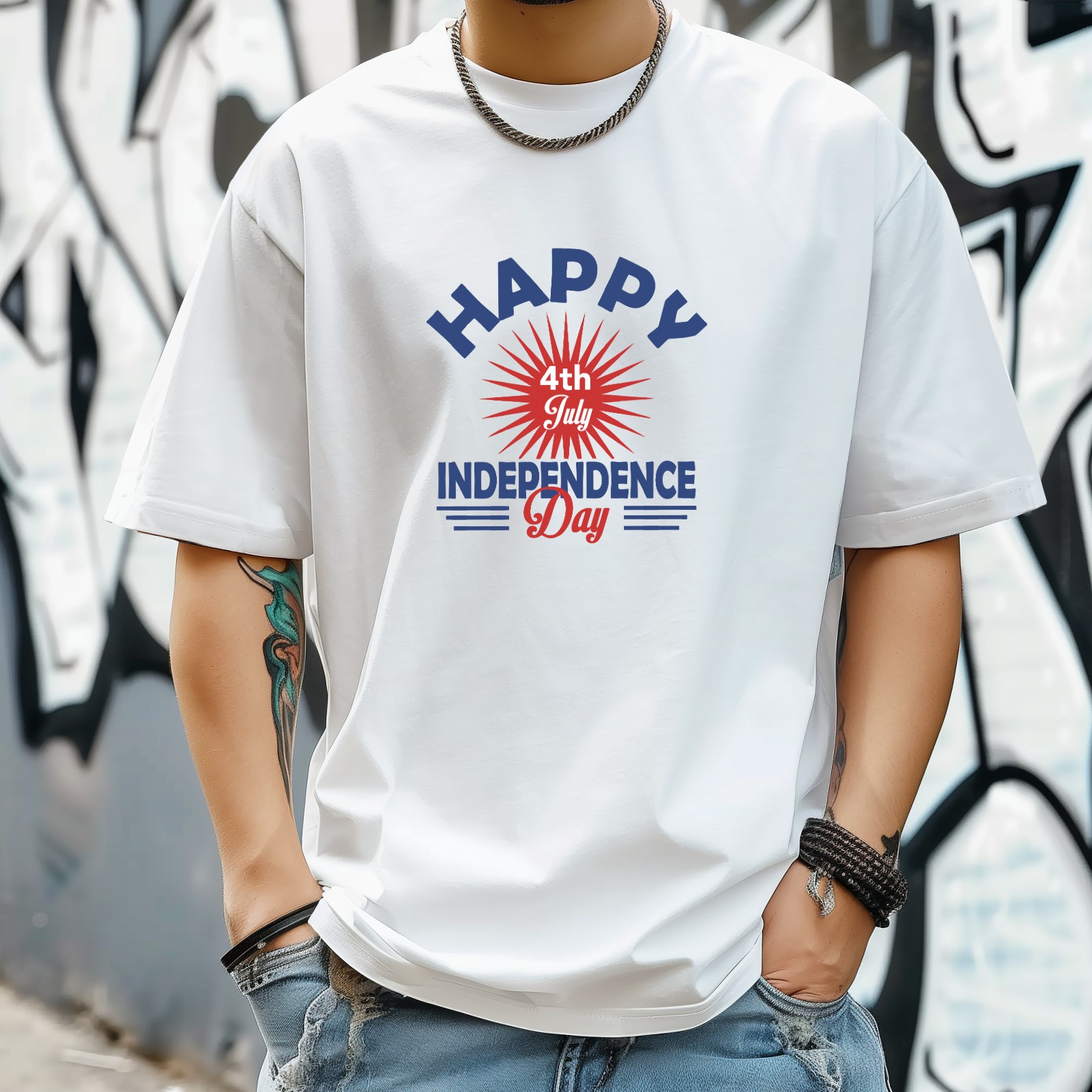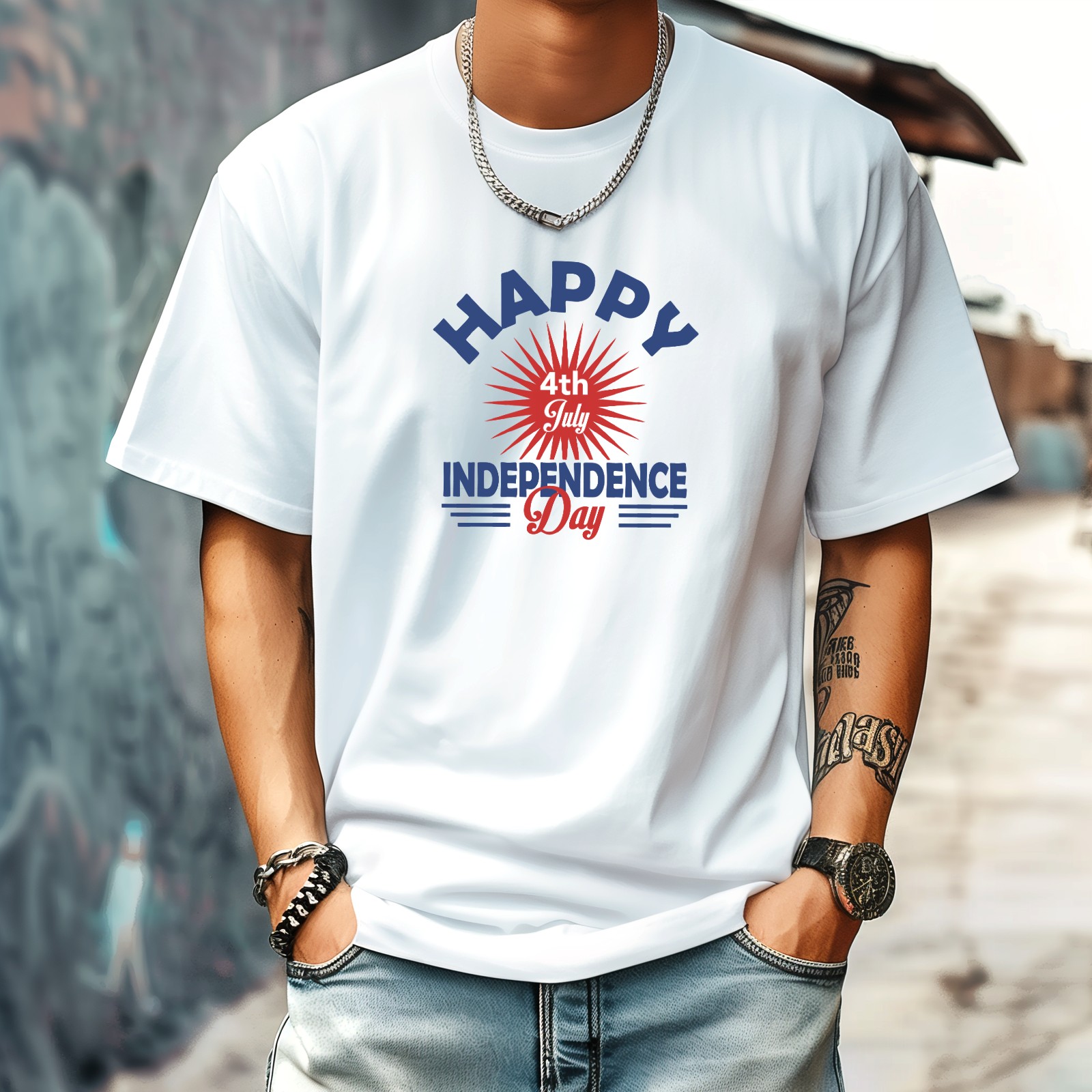 Independence Day Design T-Shirt for Man Tops Short Sleeves Shirt Crew Neck Shirt XS