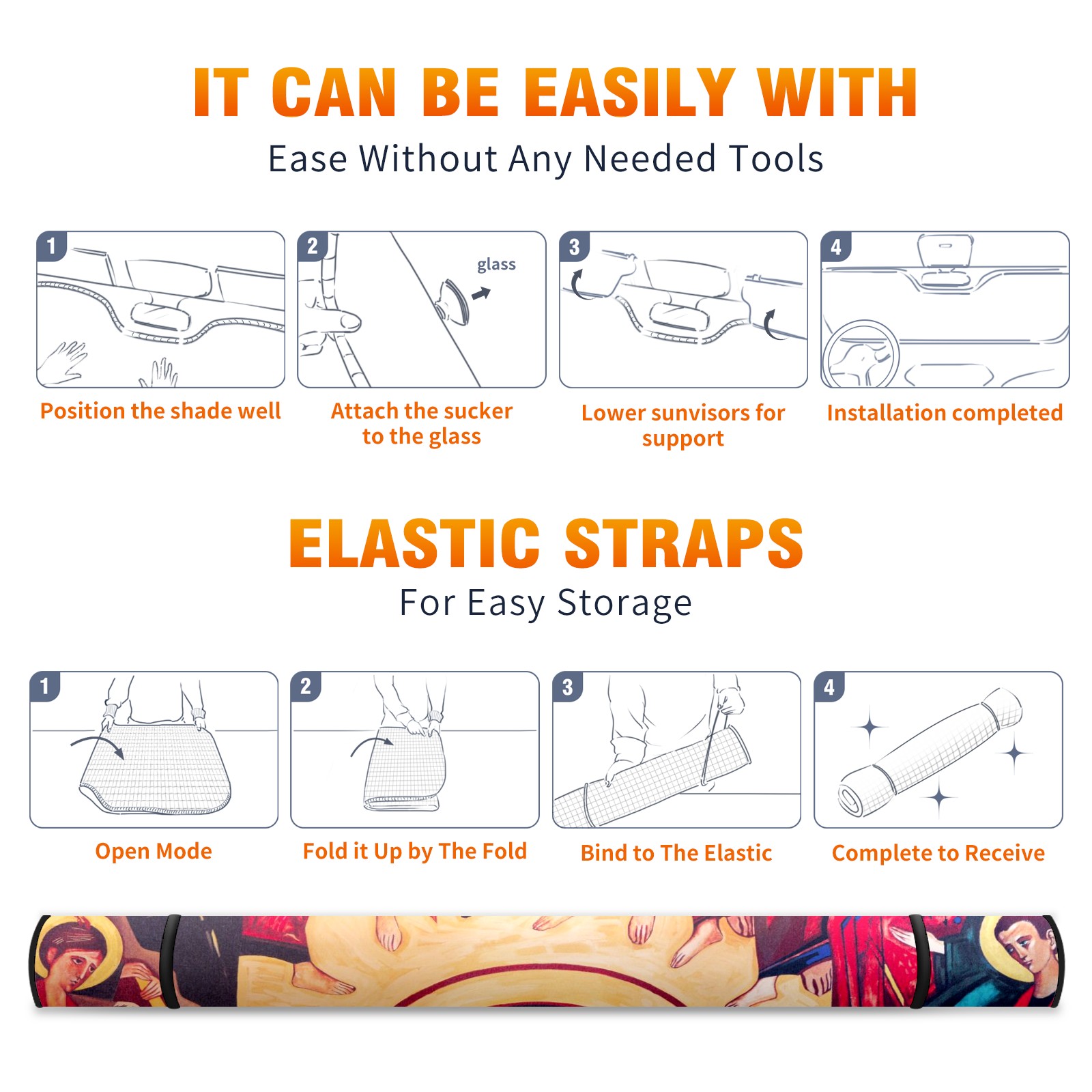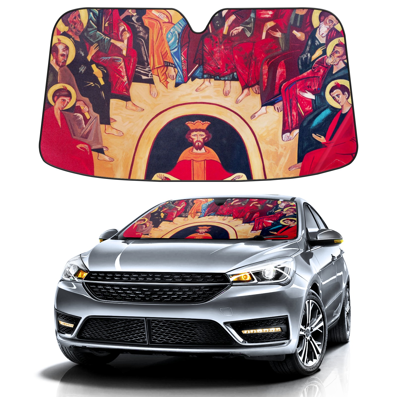 Car Windshield Sun Shade for Front Window Pentecost Church Scene Fresco Foldable Vehicle Windshield Car Sun Visor Covers Automotive Window Protector Car Privacy Sun Blocker