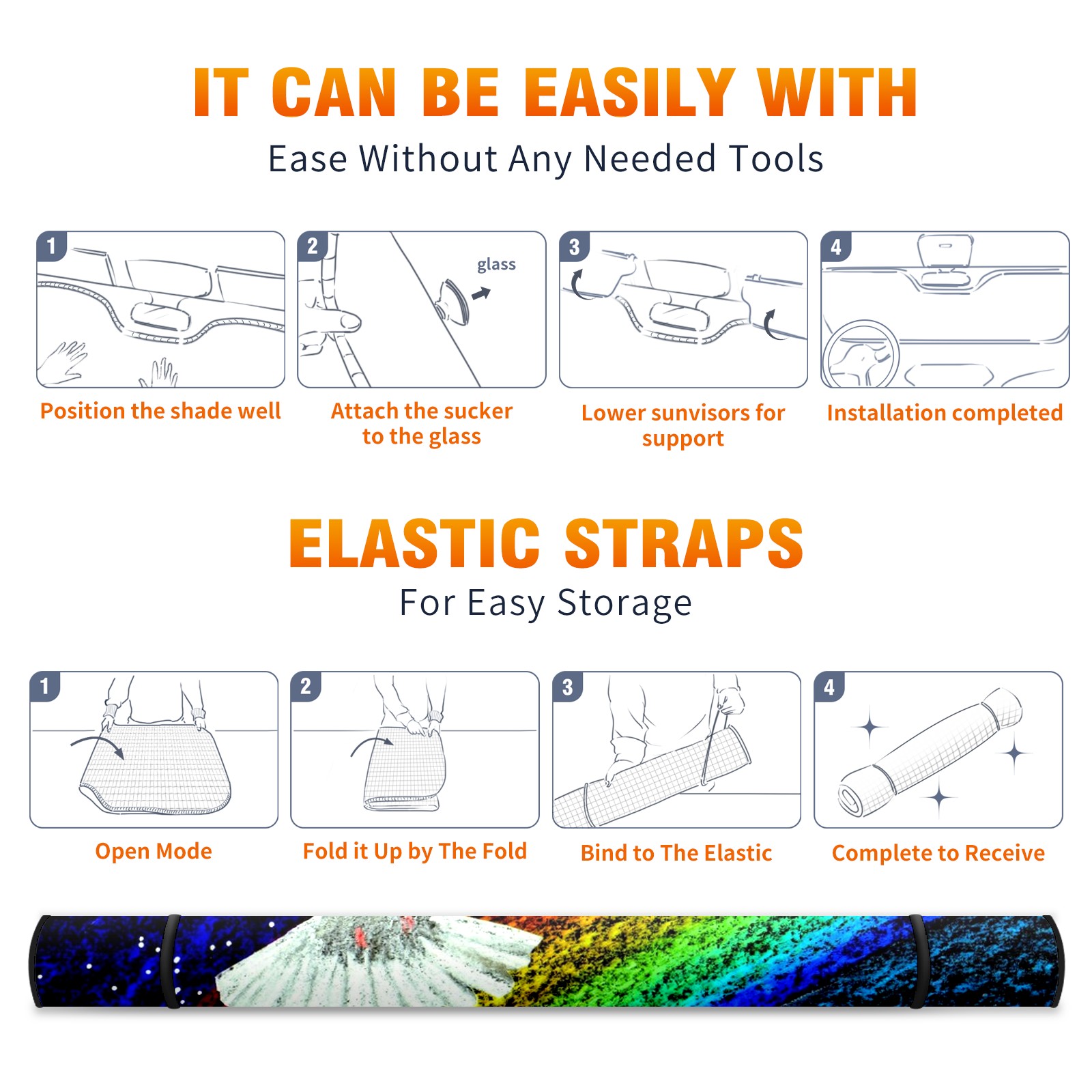 Diameter /Size 63"L x 33.5"W</b><br> Made from excellent materials which makes it sturdy and protects the car from the sun. Easy to use and pack. Makes the interior of the car cooler.You can easily stash the sunshade in the storage bag or store long term.It open and closes easy. Also the leather storage bag is durable and easy to put the umbrella back into.This windshield sunshade provides complete coverage and keeps your car interior cool under direct sun. It is easy to open and position under the windshield and around the rear-view mirror. Makes Your Car Easy To Identify, Perfect For Finding Your Car In Crowded Parking Lots And Garages.Great Choice: It Is A Great Gift For Dad, Boyfriend, Brother, Brother And Uncle, Friends, Classmates, Family And So On.<br> Notice:</b><br> Due To Difference Computer Monitors, The Color Maybe Slightly Different From Picture. As Different Measurement Methods, Measurement Data Will Float Within 2%.I Hope You Understand.<br> If You Have Any Question About The Item Please Do Not Hesitate To Contact Us Immediately And We Will Give You A Satisfactory Reply Within 24 Hours.