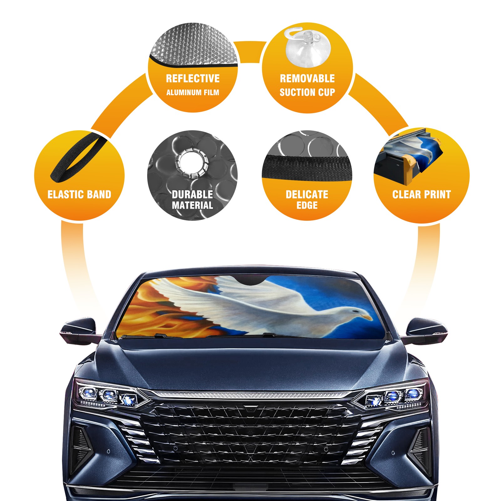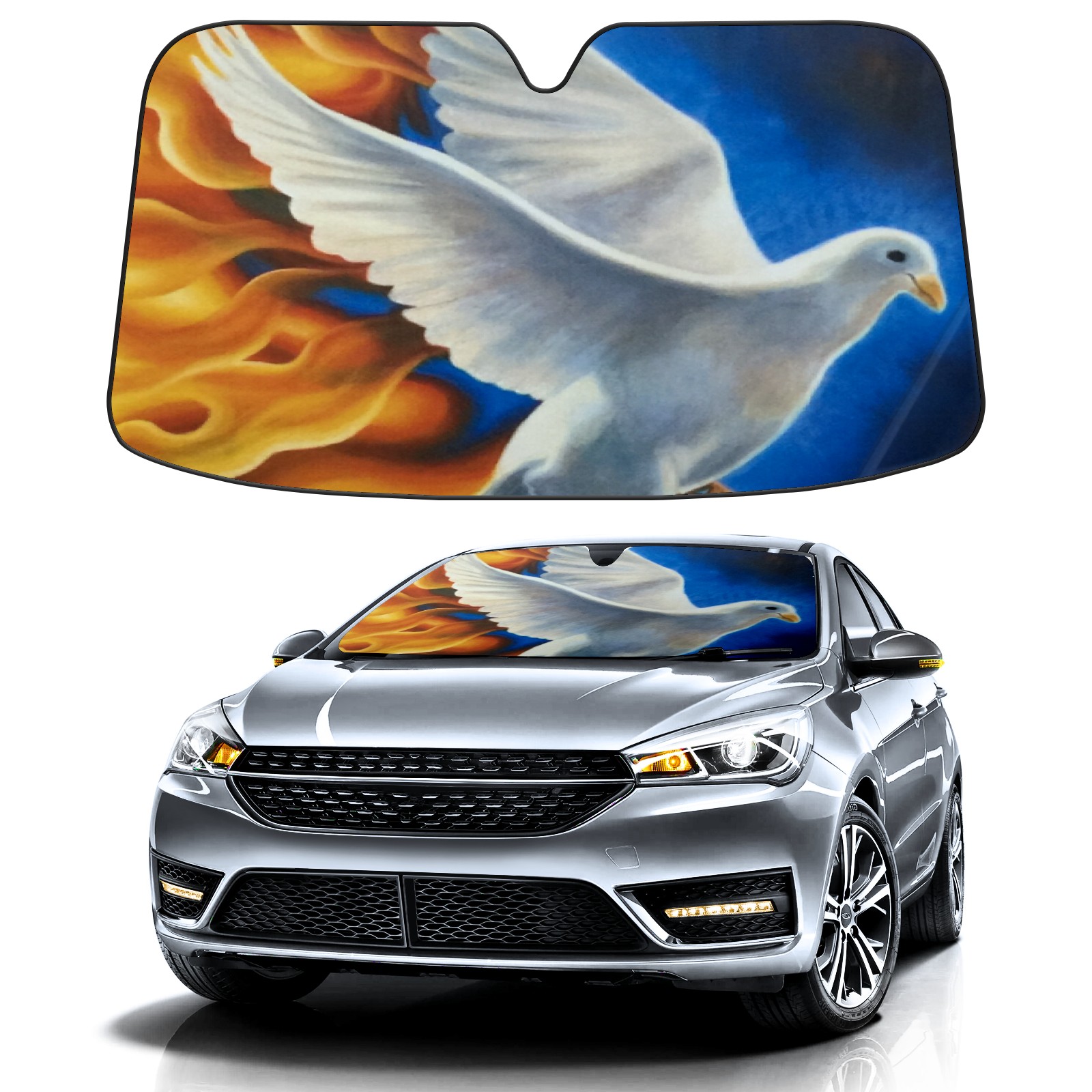 Car Windshield Sun Shade for Front Window Pentecost Doves(5) Foldable Vehicle Windshield Car Sun Visor Covers Automotive Window Protector Car Privacy Sun Blocker
