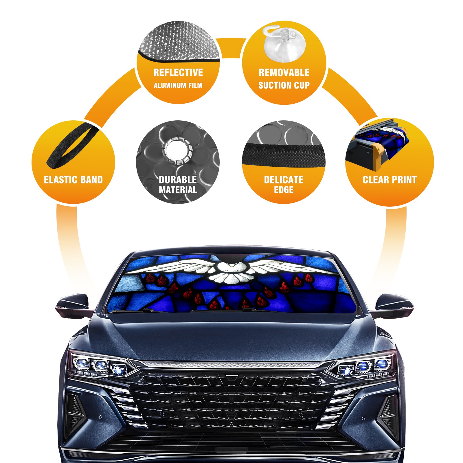 Car Windshield Sun Shade for Front Window Pentecost Doves(3) Foldable Vehicle Windshield Car Sun Visor Covers Automotive Window Protector Car Privacy Sun Blocker