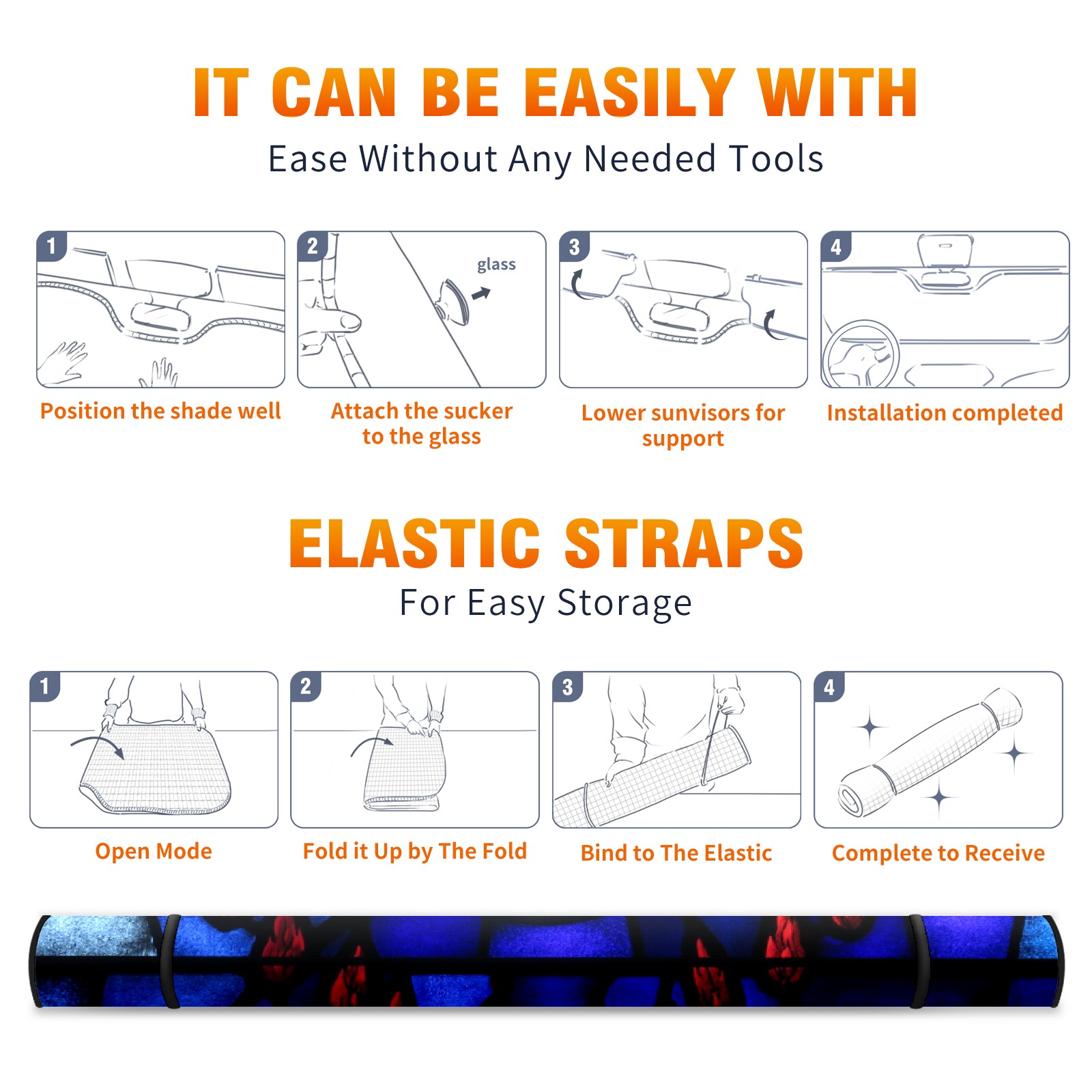 Diameter /Size 63"L x 33.5"W</b><br> Made from excellent materials which makes it sturdy and protects the car from the sun. Easy to use and pack. Makes the interior of the car cooler.You can easily stash the sunshade in the storage bag or store long term.It open and closes easy. Also the leather storage bag is durable and easy to put the umbrella back into.This windshield sunshade provides complete coverage and keeps your car interior cool under direct sun. It is easy to open and position under the windshield and around the rear-view mirror. Makes Your Car Easy To Identify, Perfect For Finding Your Car In Crowded Parking Lots And Garages.Great Choice: It Is A Great Gift For Dad, Boyfriend, Brother, Brother And Uncle, Friends, Classmates, Family And So On.<br> Notice:</b><br> Due To Difference Computer Monitors, The Color Maybe Slightly Different From Picture. As Different Measurement Methods, Measurement Data Will Float Within 2%.I Hope You Understand.<br> If You Have Any Question About The Item Please Do Not Hesitate To Contact Us Immediately And We Will Give You A Satisfactory Reply Within 24 Hours.