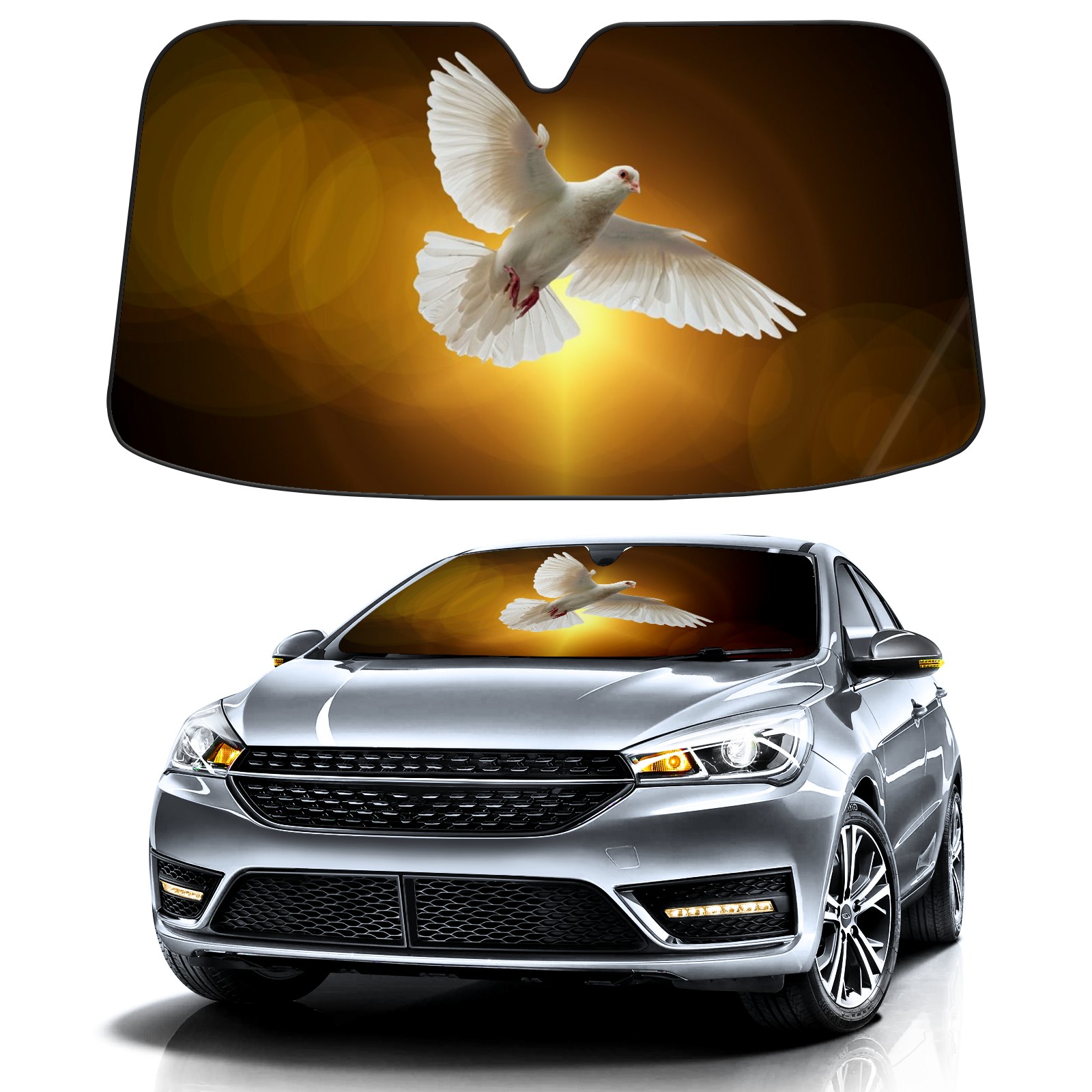 Car Windshield Sun Shade for Front Window Pentecost Doves(1) Foldable Vehicle Windshield Car Sun Visor Covers Automotive Window Protector Car Privacy Sun Blocker