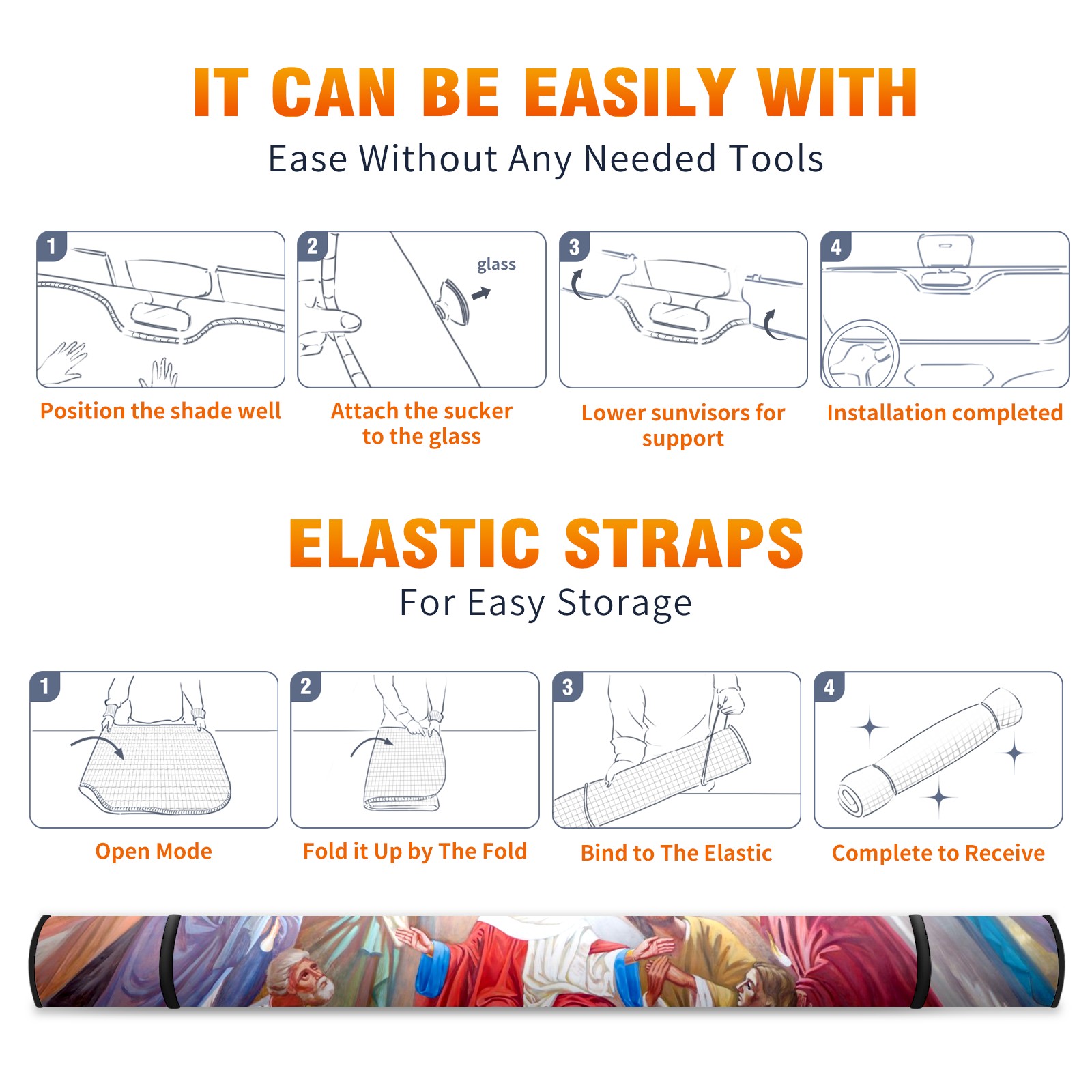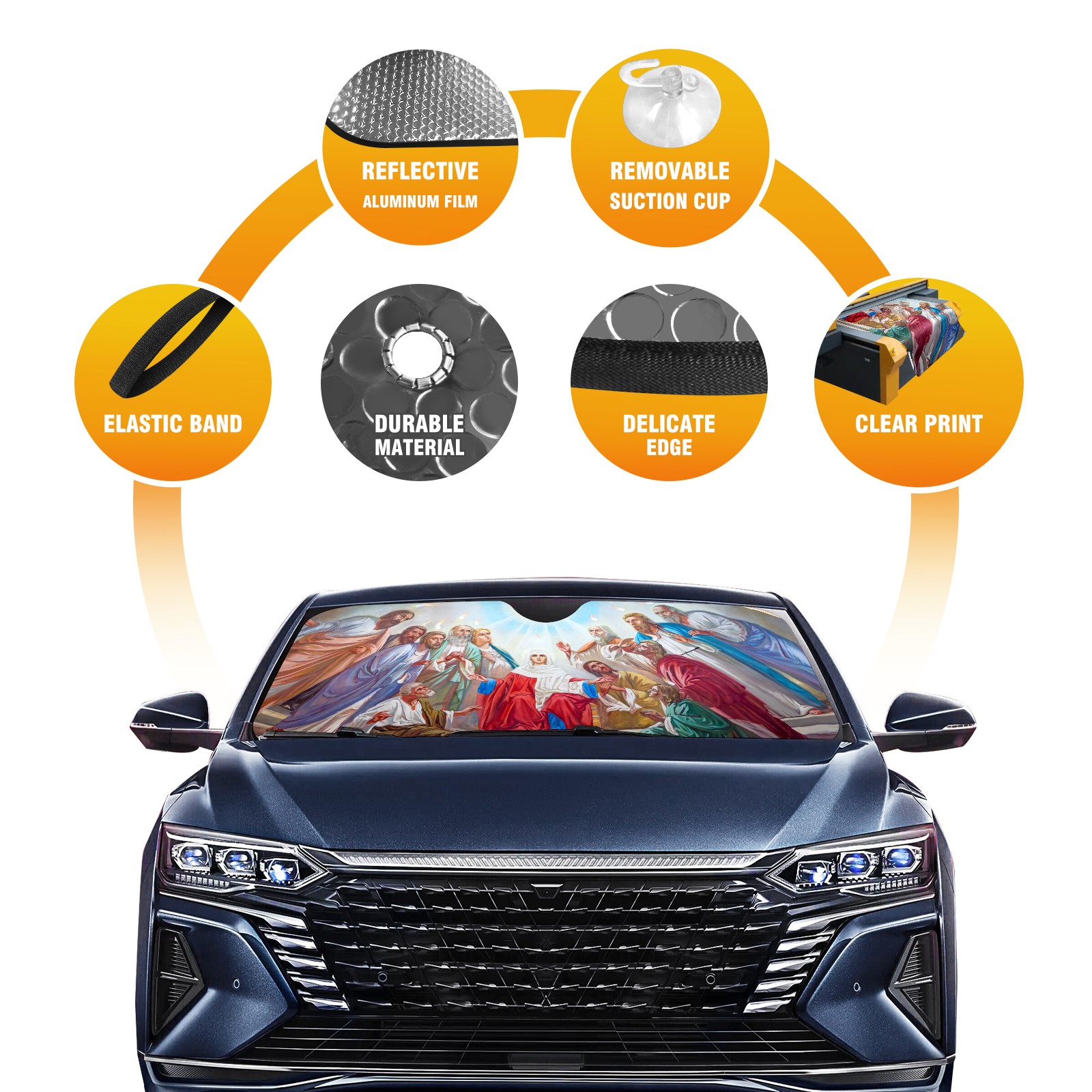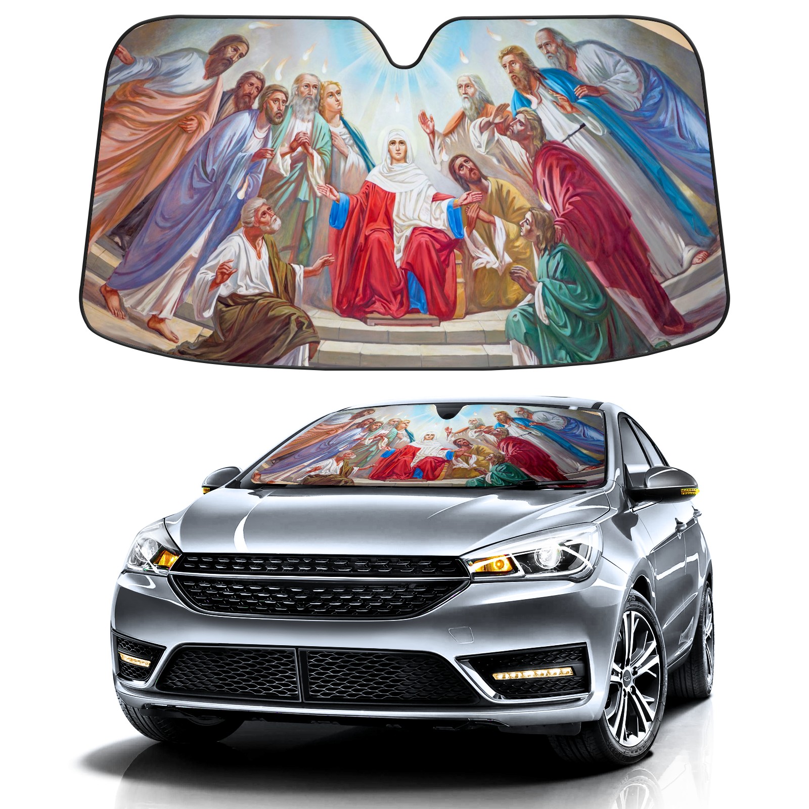 Car Windshield Sun Shade for Front Window The Pentecost Scene Fresco Foldable Vehicle Windshield Car Sun Visor Covers Automotive Window Protector Car Privacy Sun Blocker