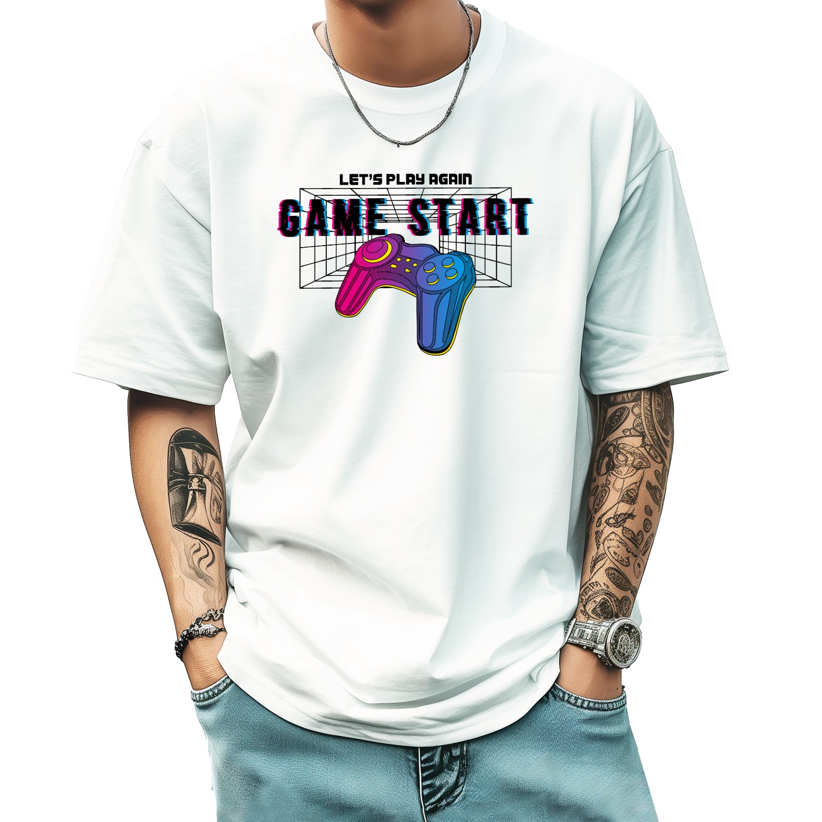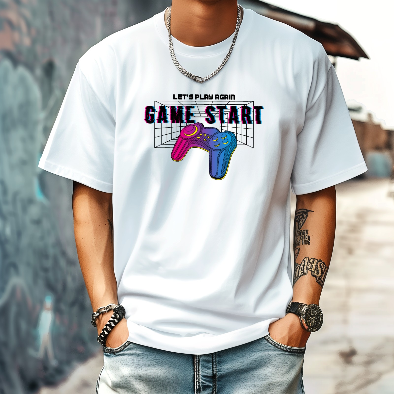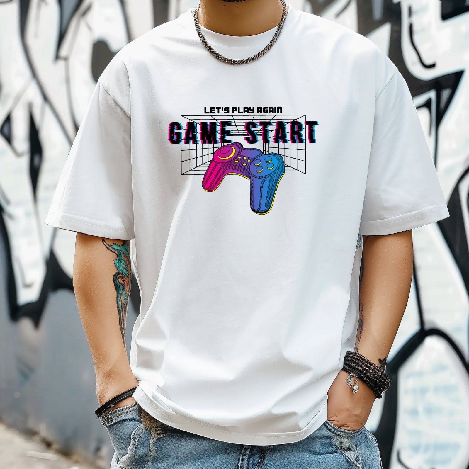 Game Start (2) T-Shirt for Man Tops Short Sleeves Shirt Crew Neck Shirt XS