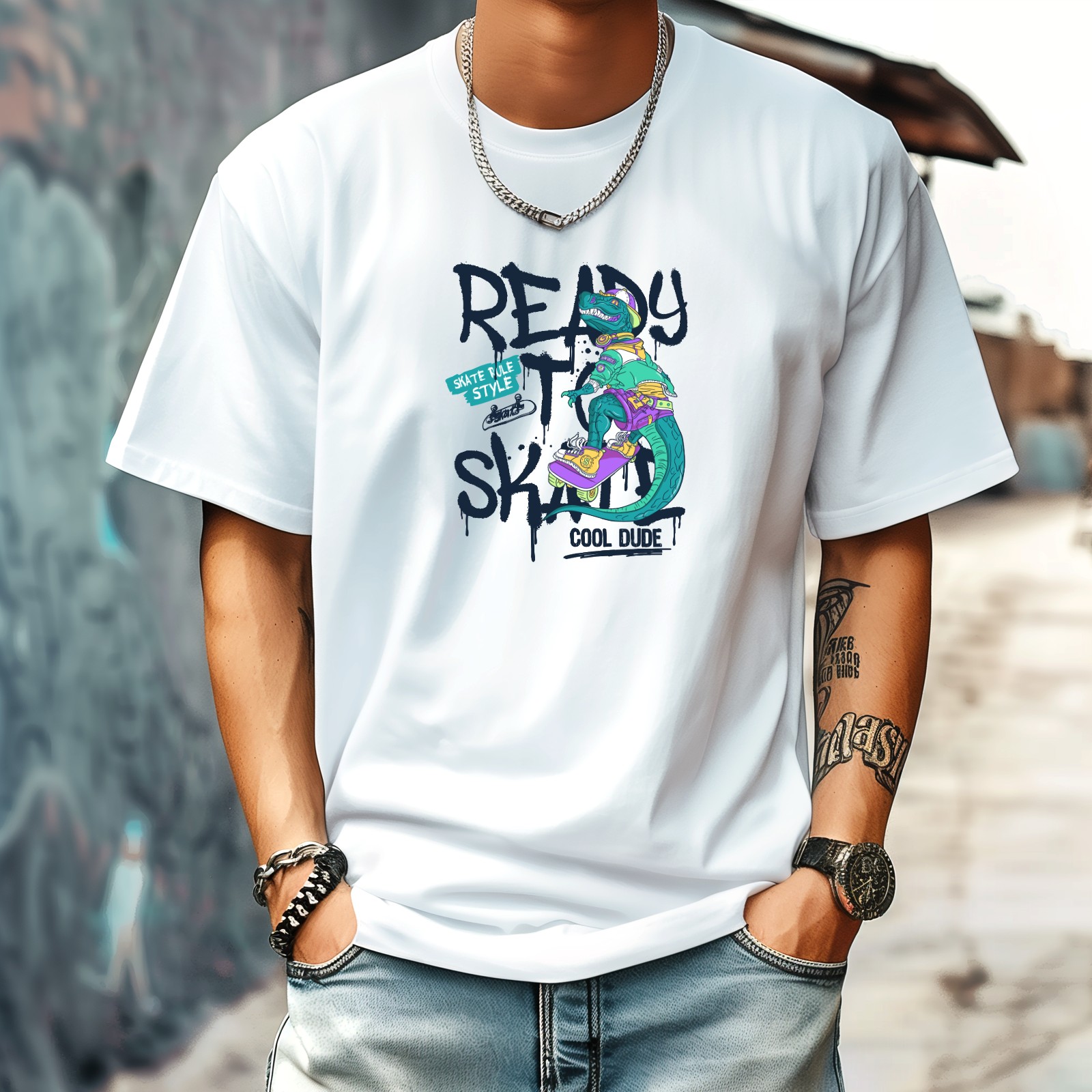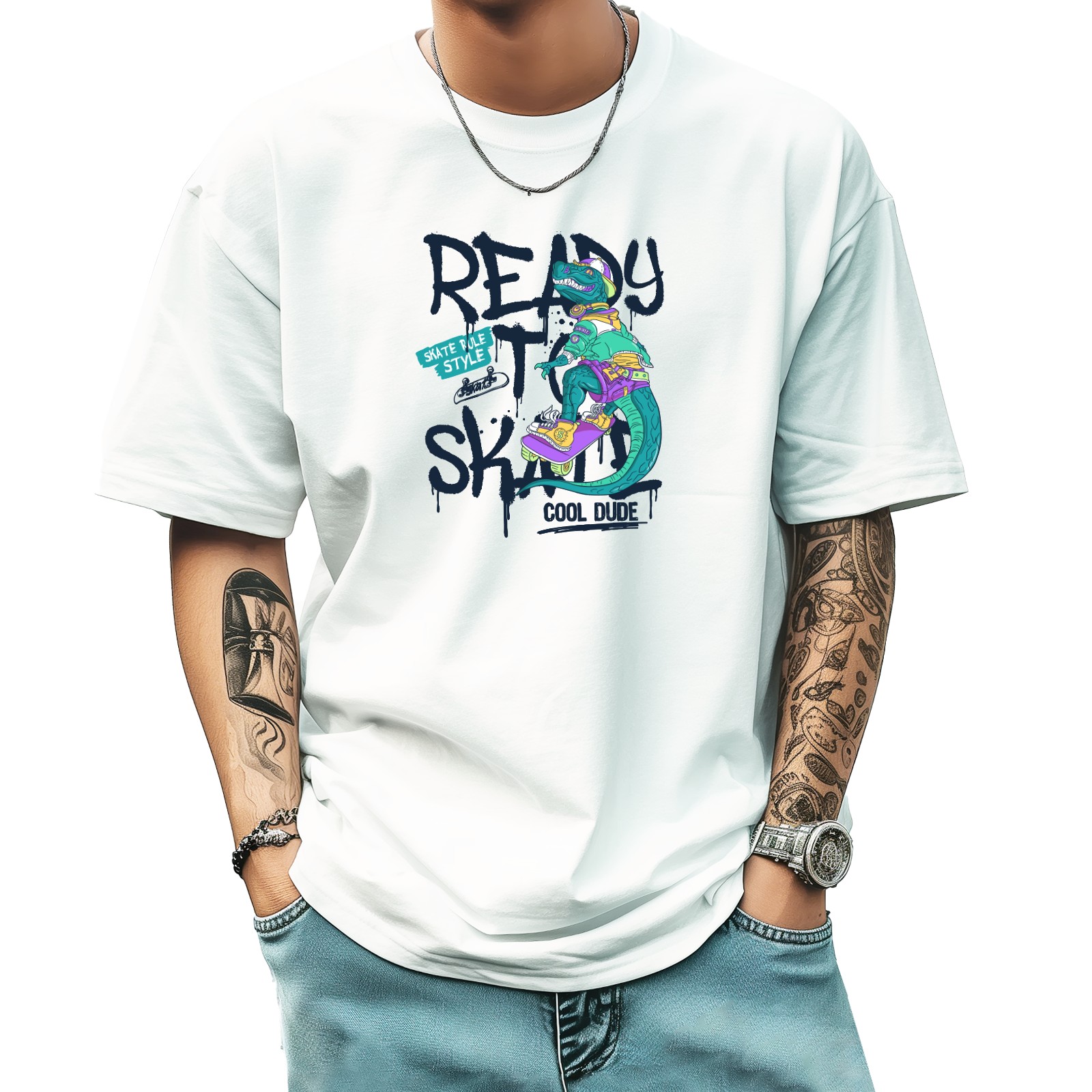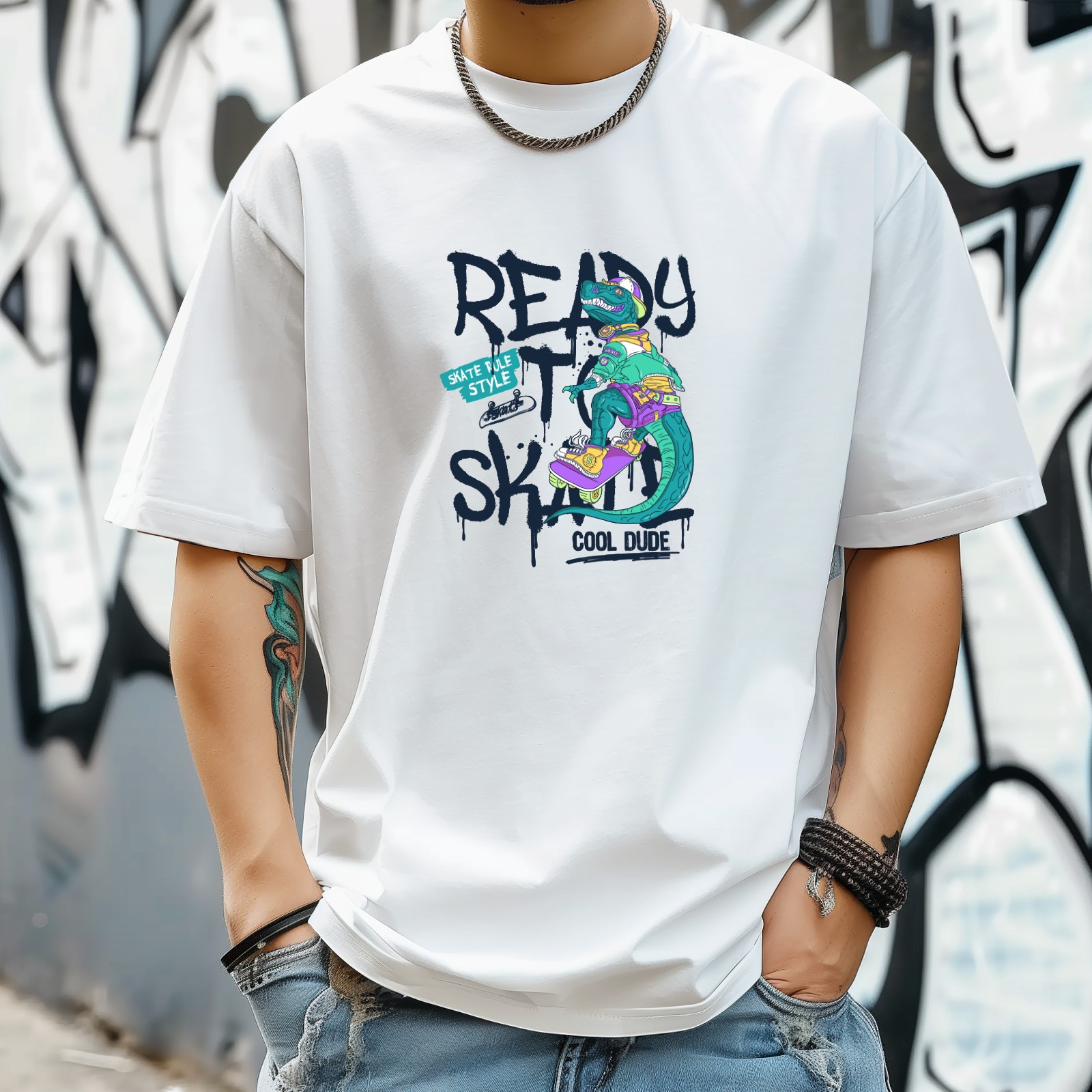 Ready Skate T-Shirt for Man Tops Short Sleeves Shirt Crew Neck Shirt XS