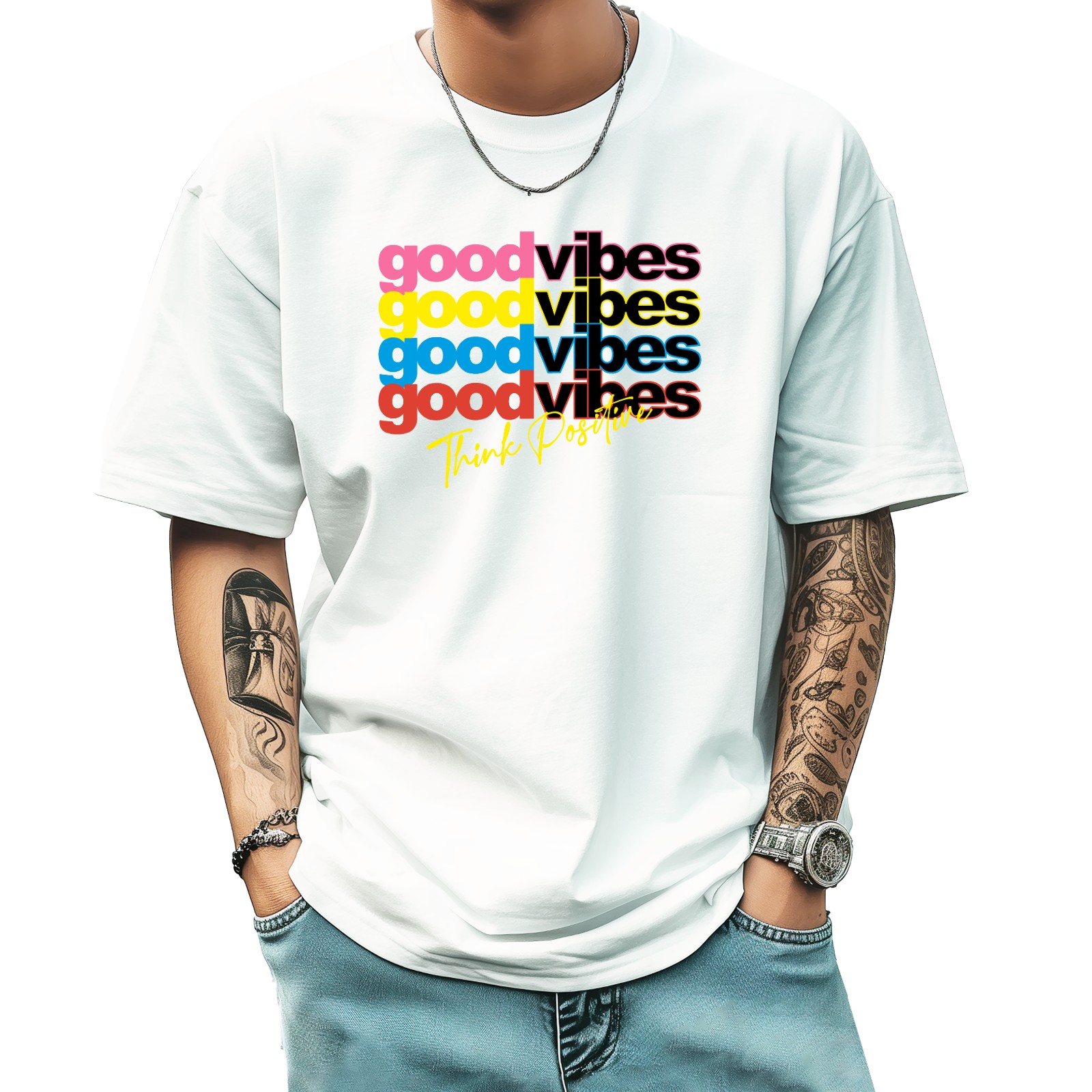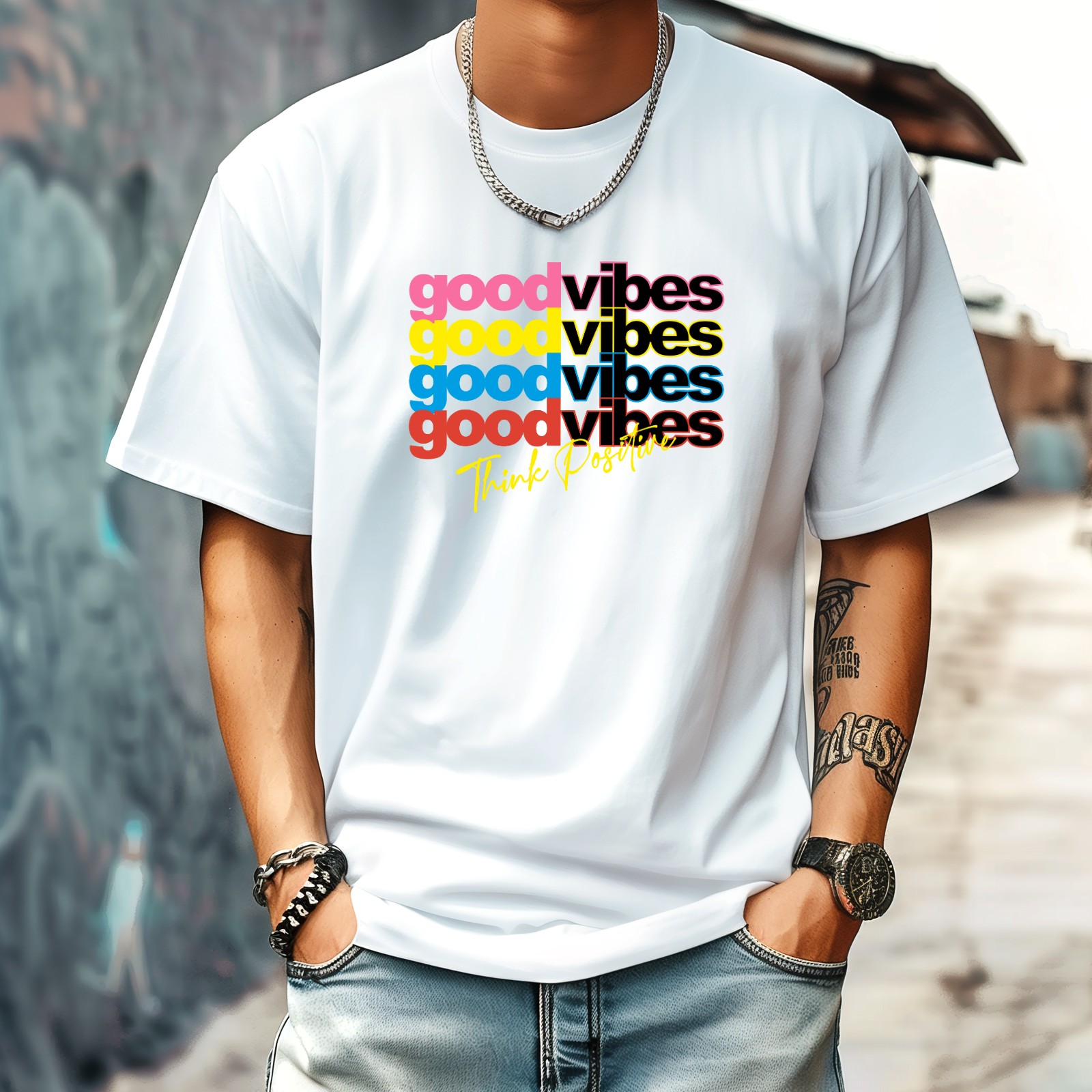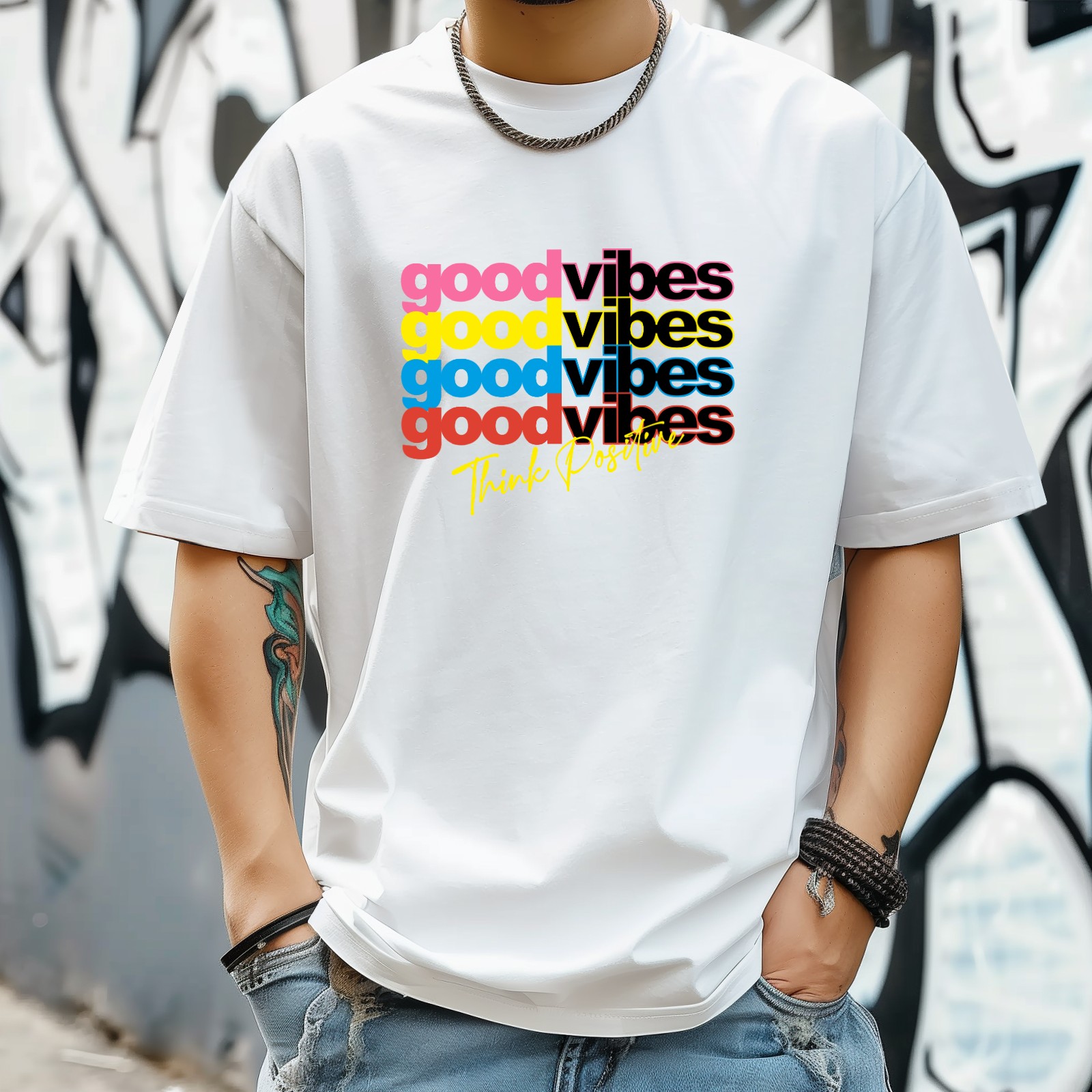 Good Vibes T-Shirt for Man Tops Short Sleeves Shirt Crew Neck Shirt XS