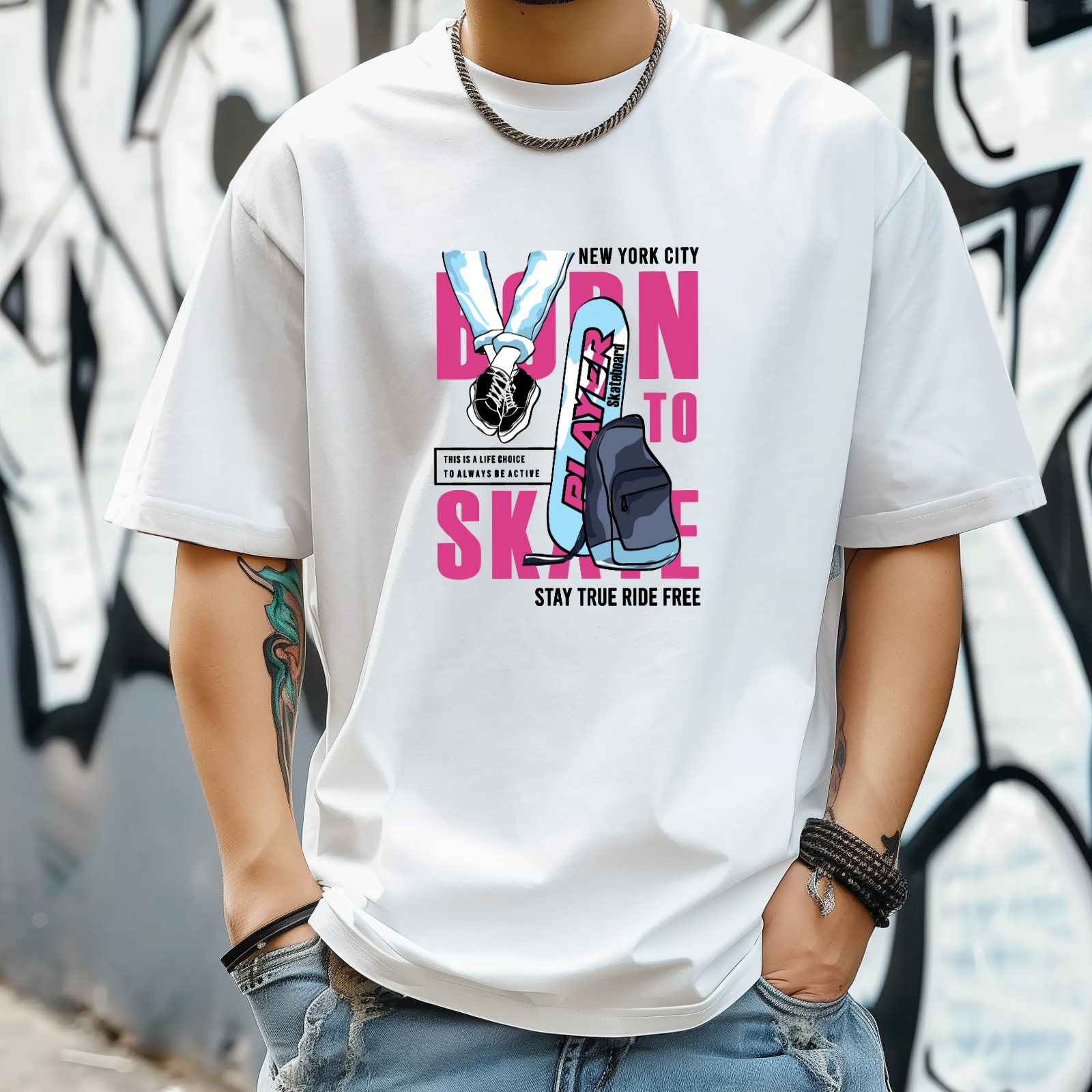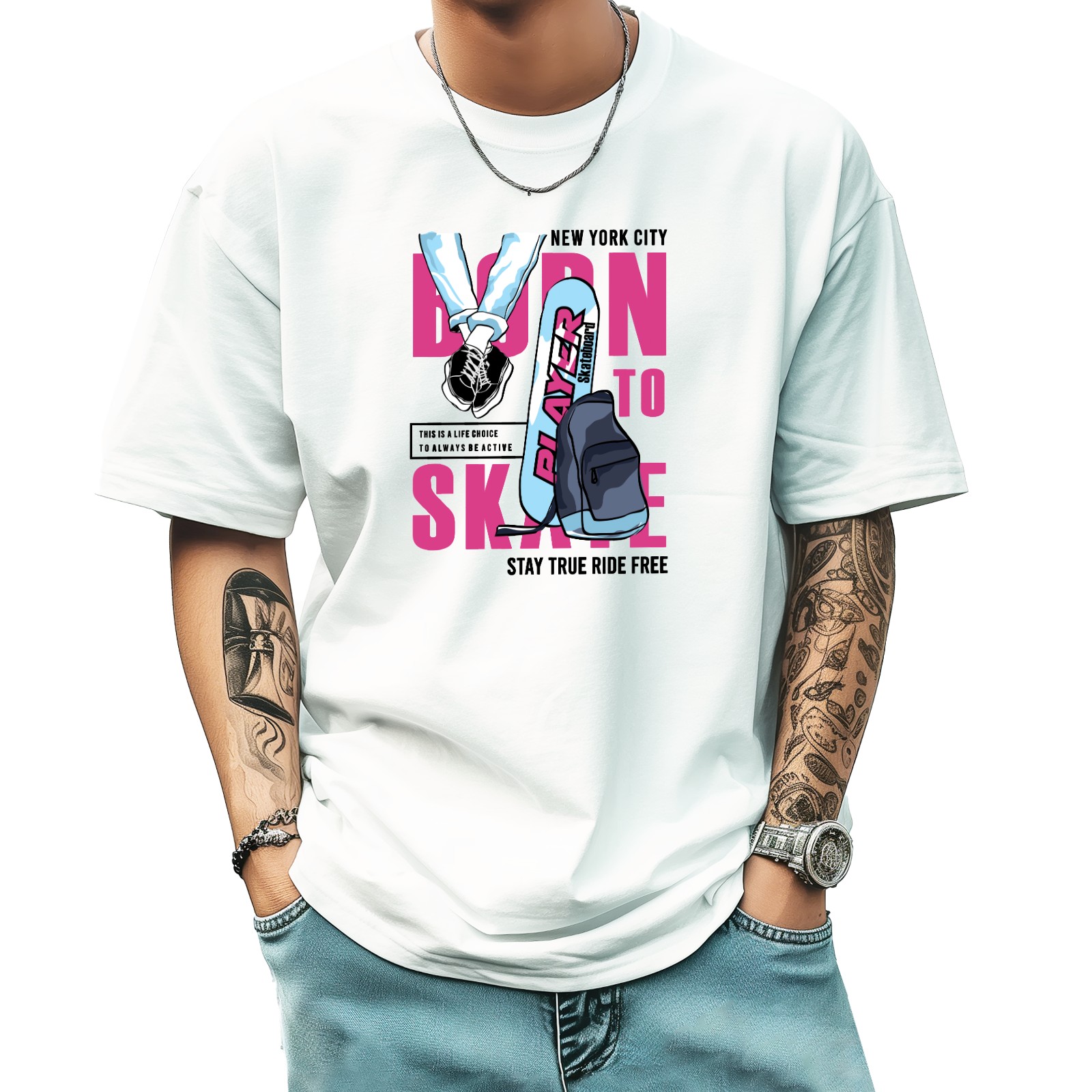 Skay True Ride Free T-Shirt for Man Tops Short Sleeves Shirt Crew Neck Shirt XS