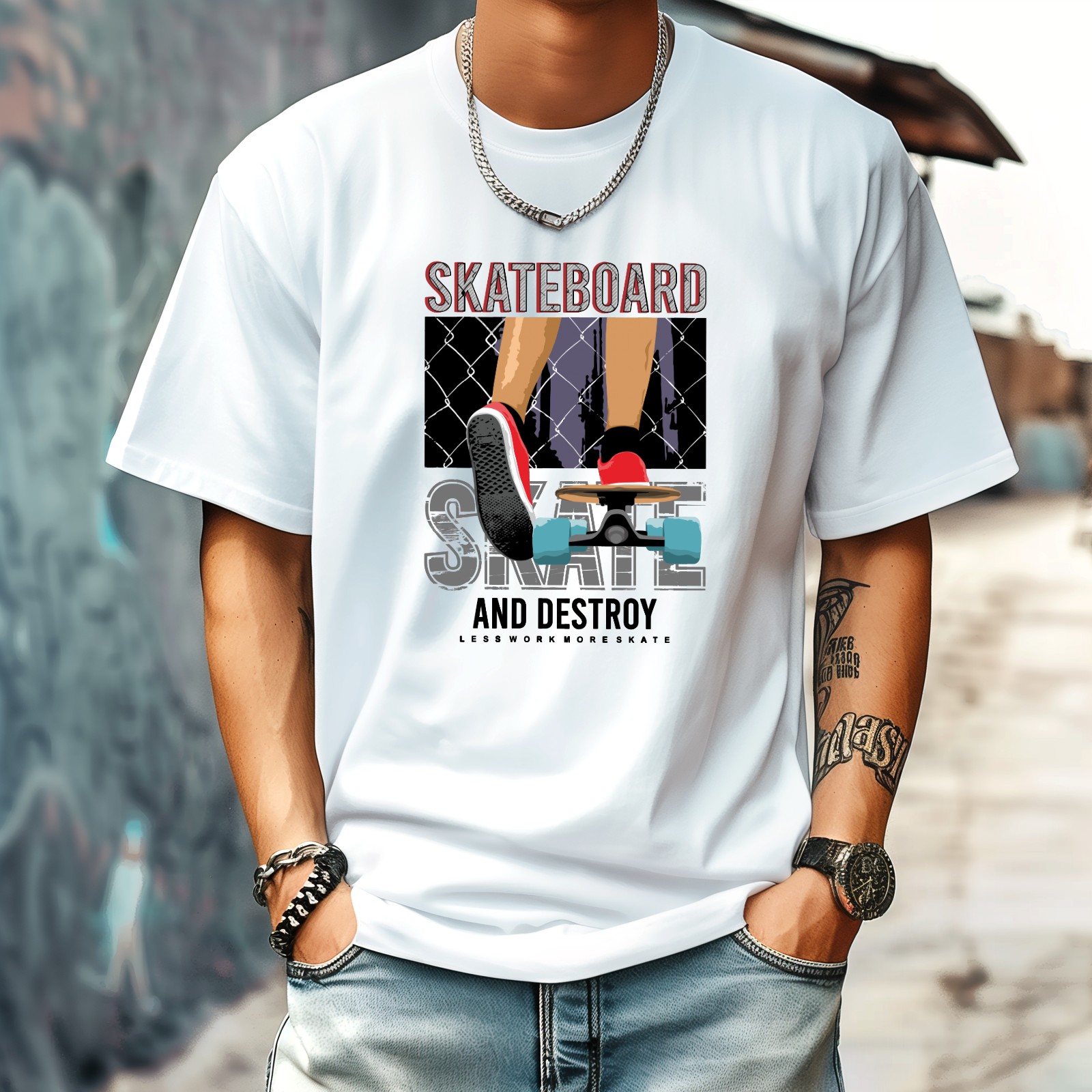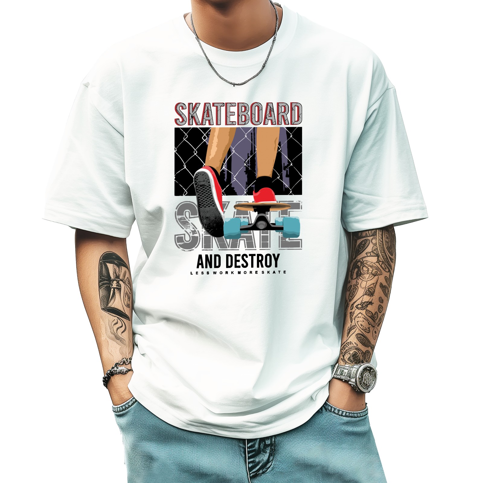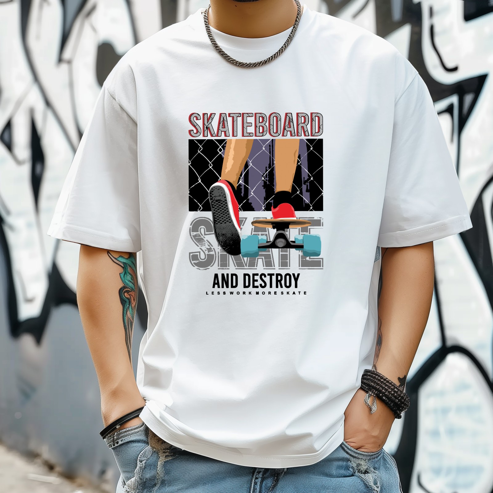 Skateboard T-Shirt for Man Tops Short Sleeves Shirt Crew Neck Shirt XS