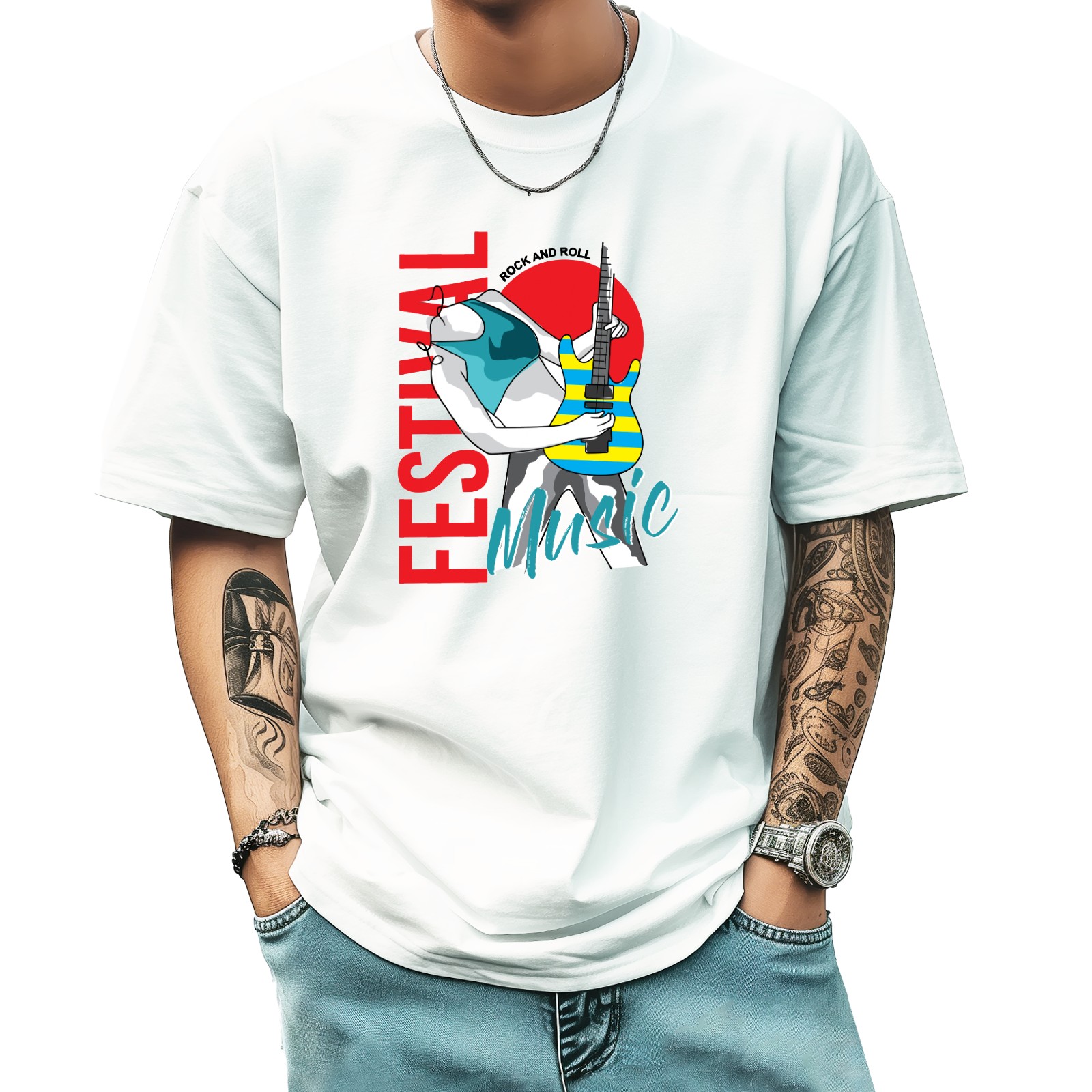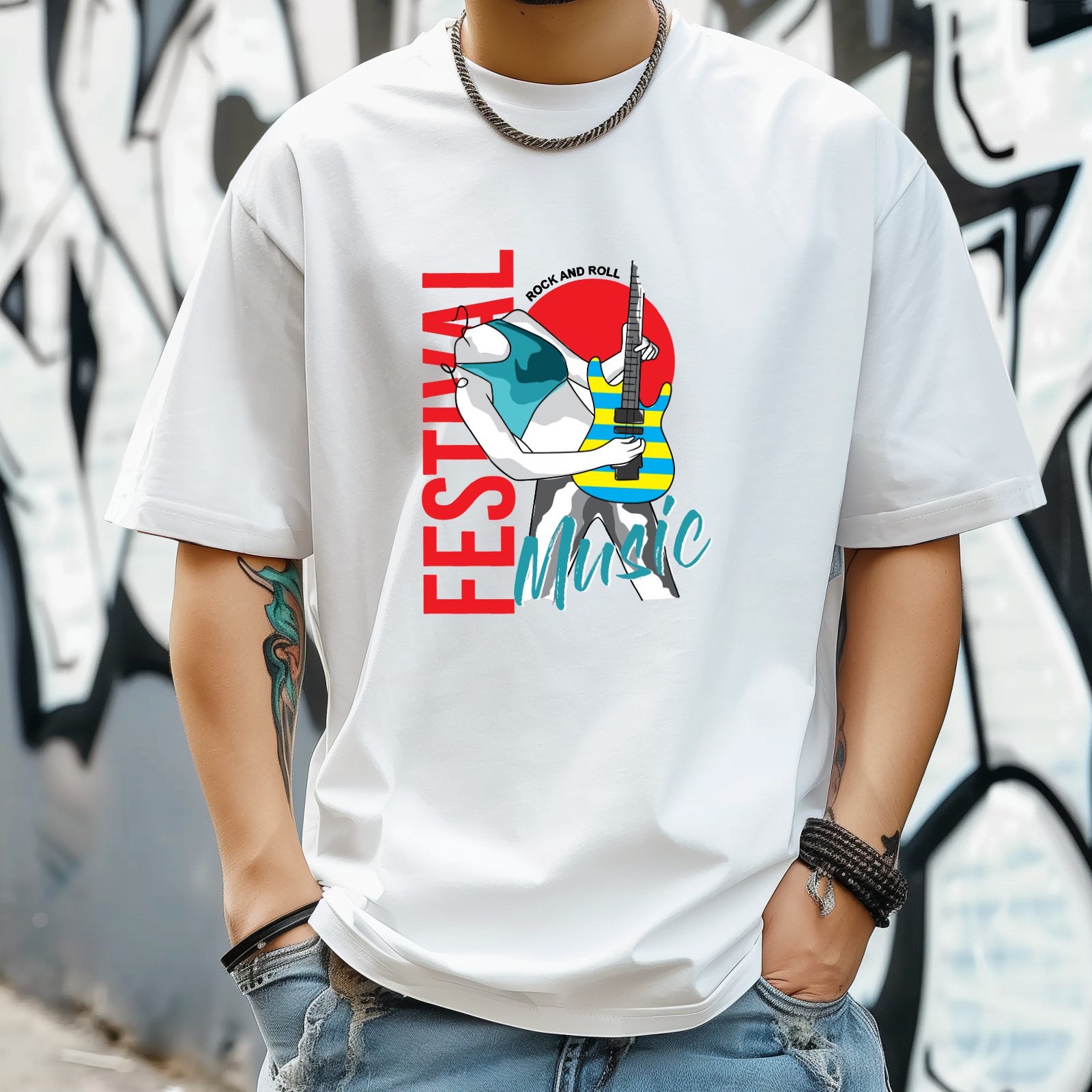 Festival Music T-Shirt for Man Tops Short Sleeves Shirt Crew Neck Shirt XS