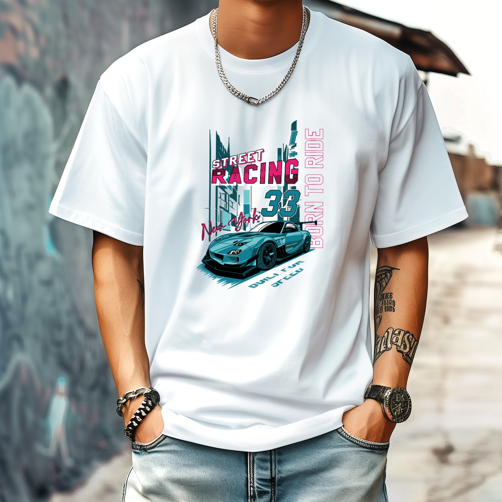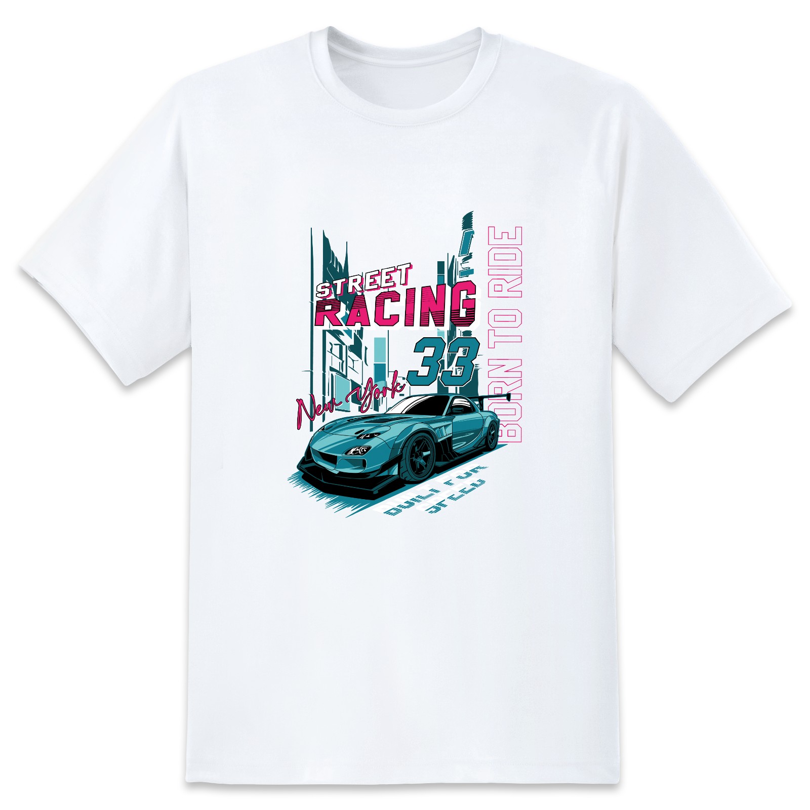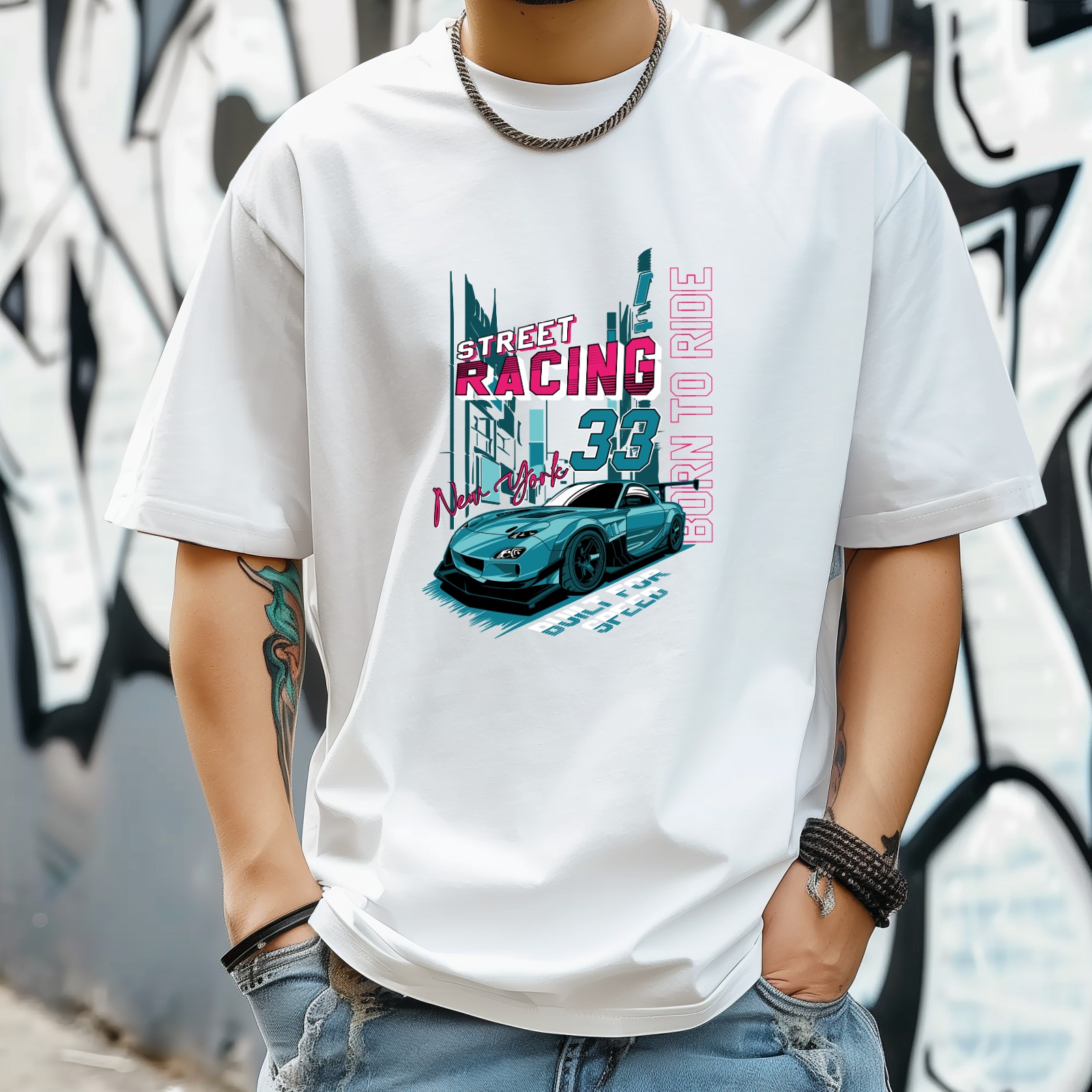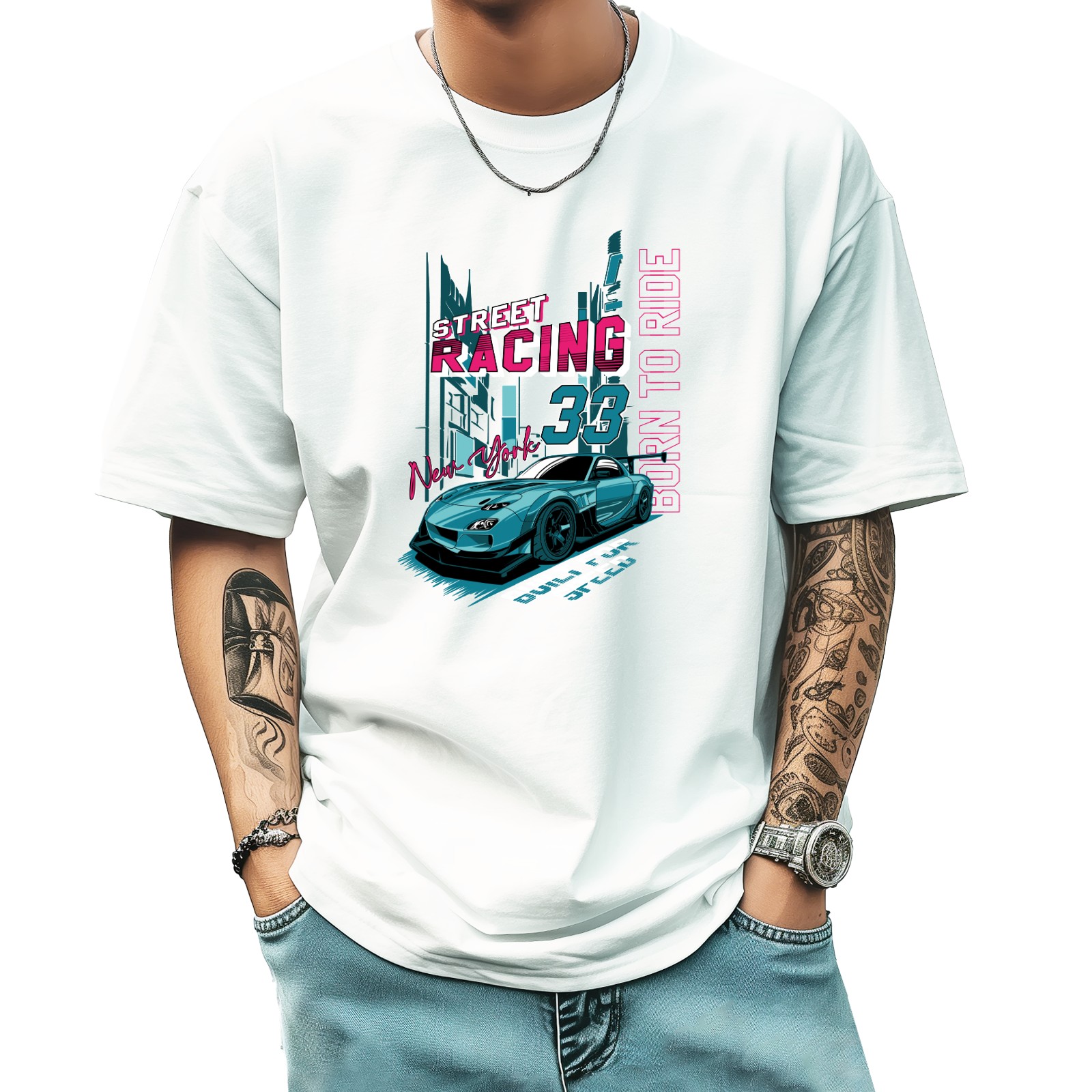 Street Racing T-Shirt for Man Tops Short Sleeves Shirt Crew Neck Shirt XS