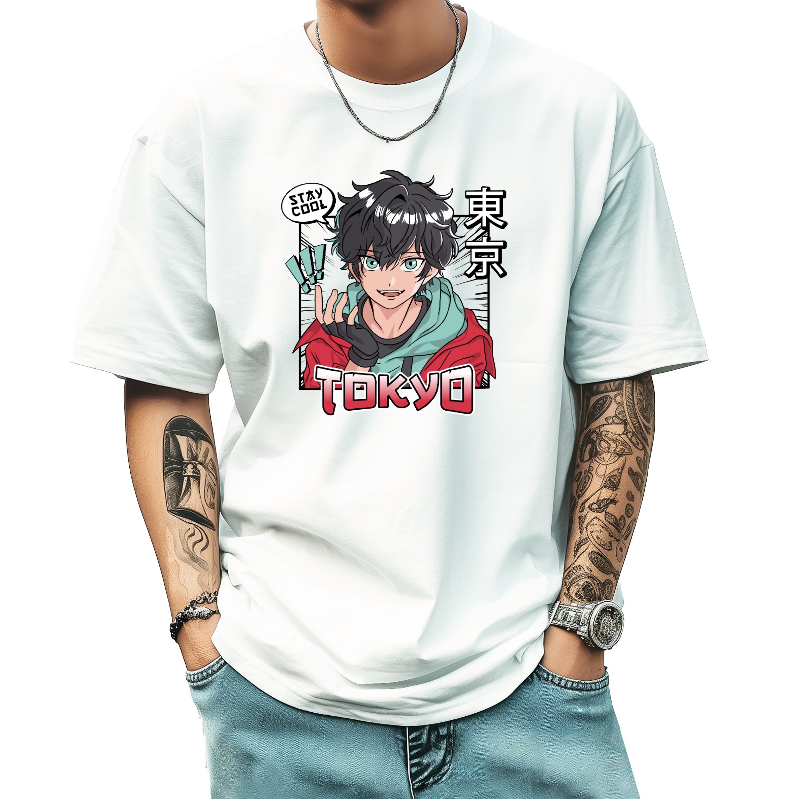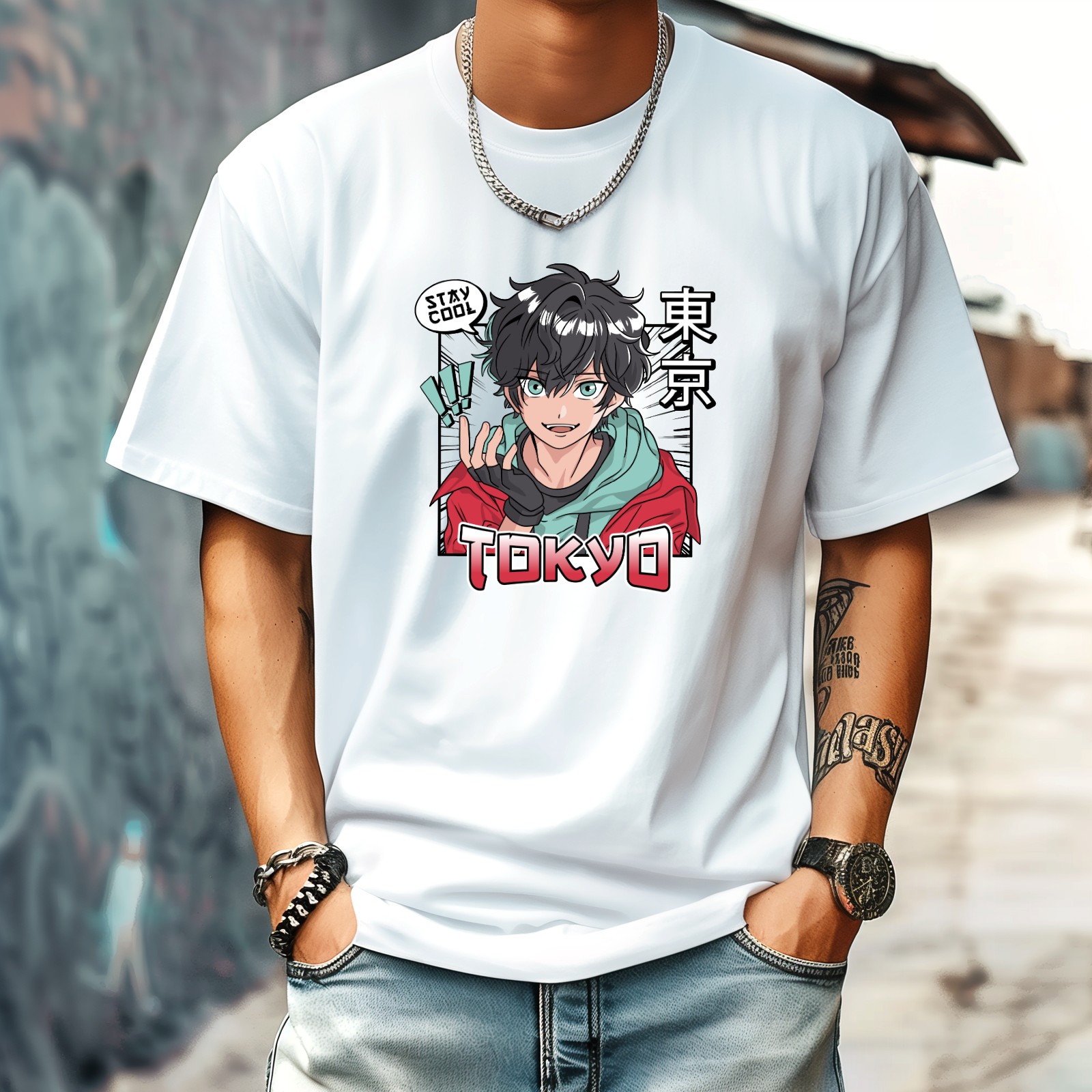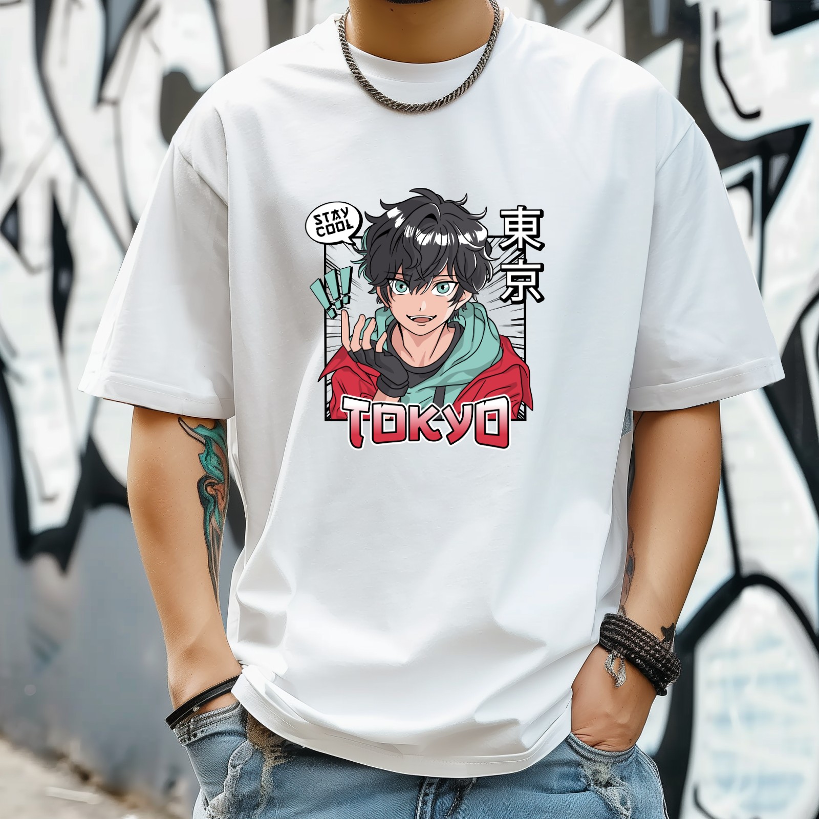 Tokyo T-Shirt for Man Tops Short Sleeves Shirt Crew Neck Shirt XS