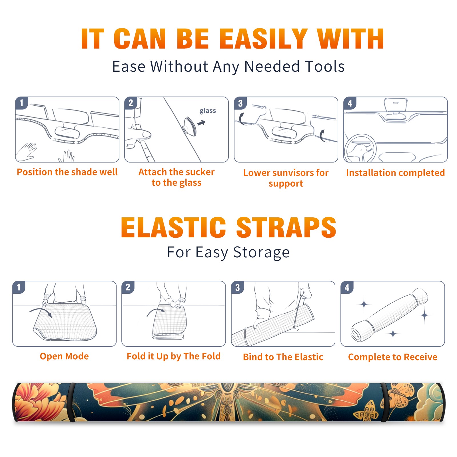 Car Windshield Sun Shade for Front Window Butterfly (17) Foldable Vehicle Windshield Car Sun Visor Covers Automotive Window Protector Car Privacy Sun Blocker