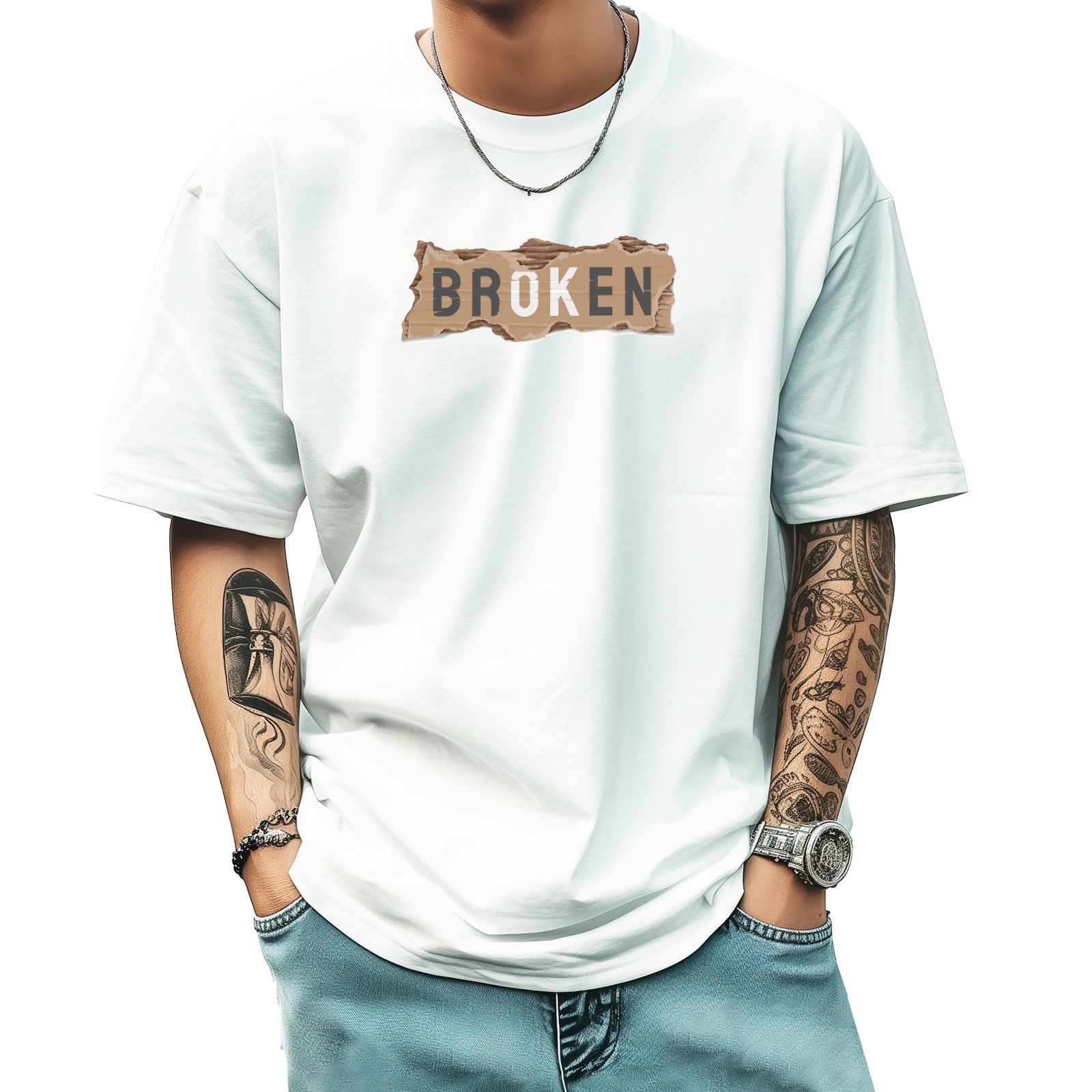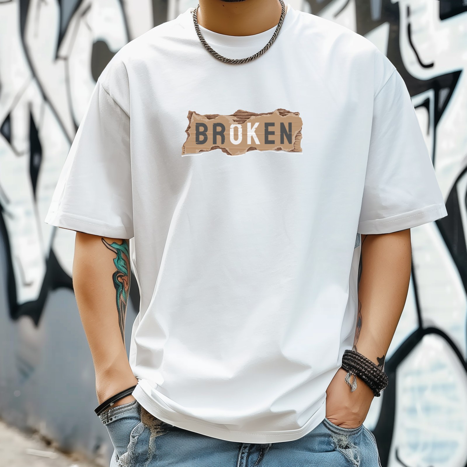 Breoken T-Shirt for Man Tops Short Sleeves Shirt Crew Neck Shirt XS