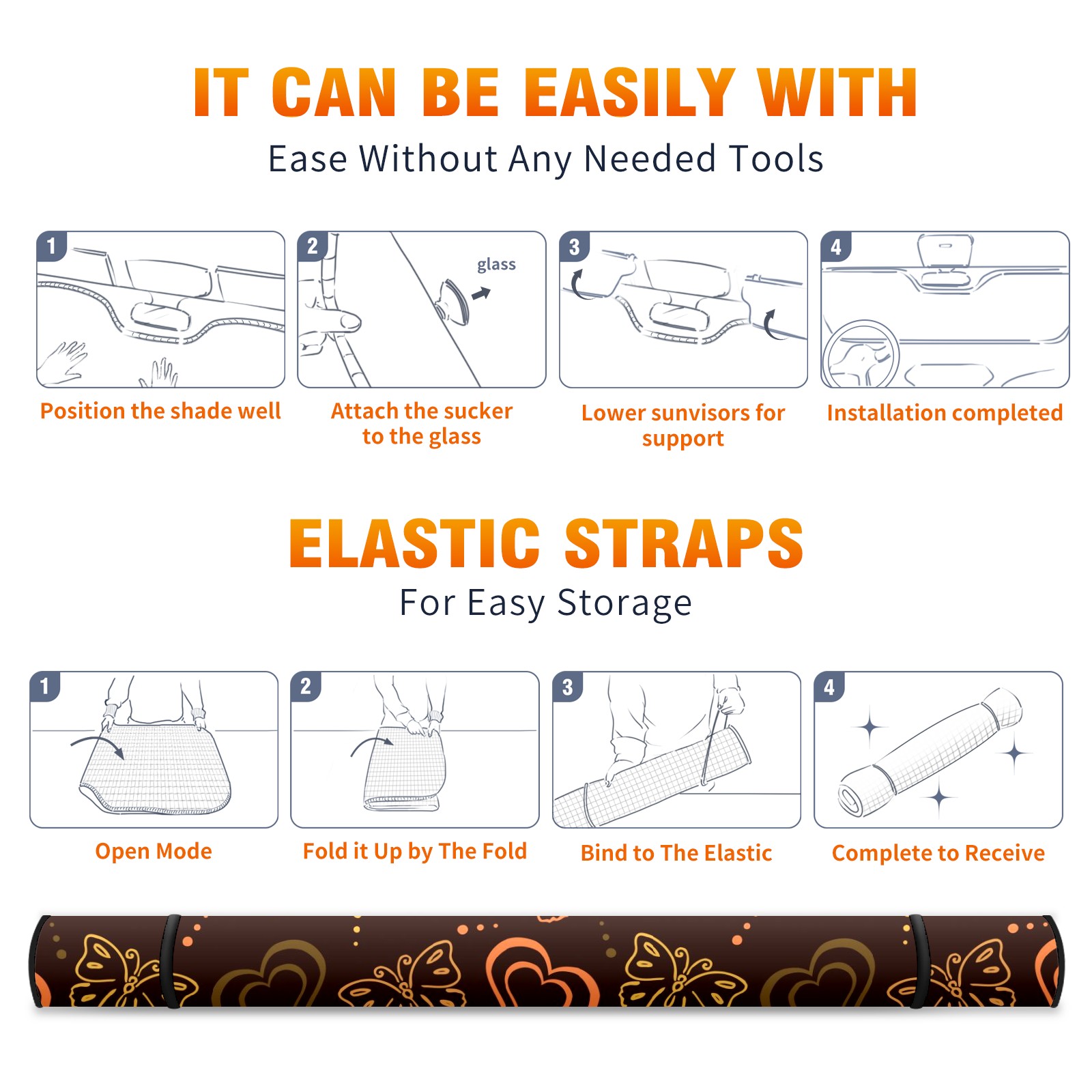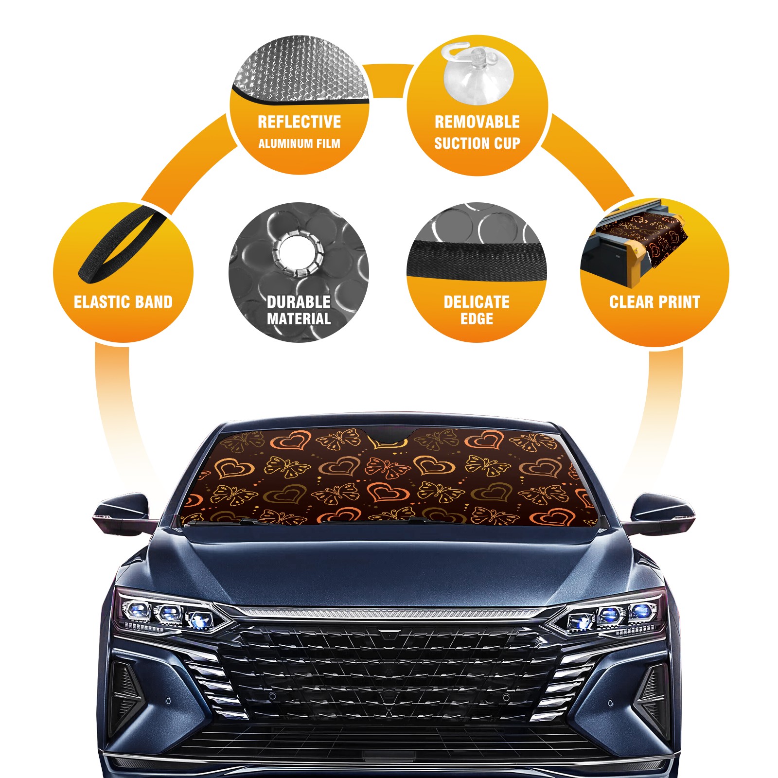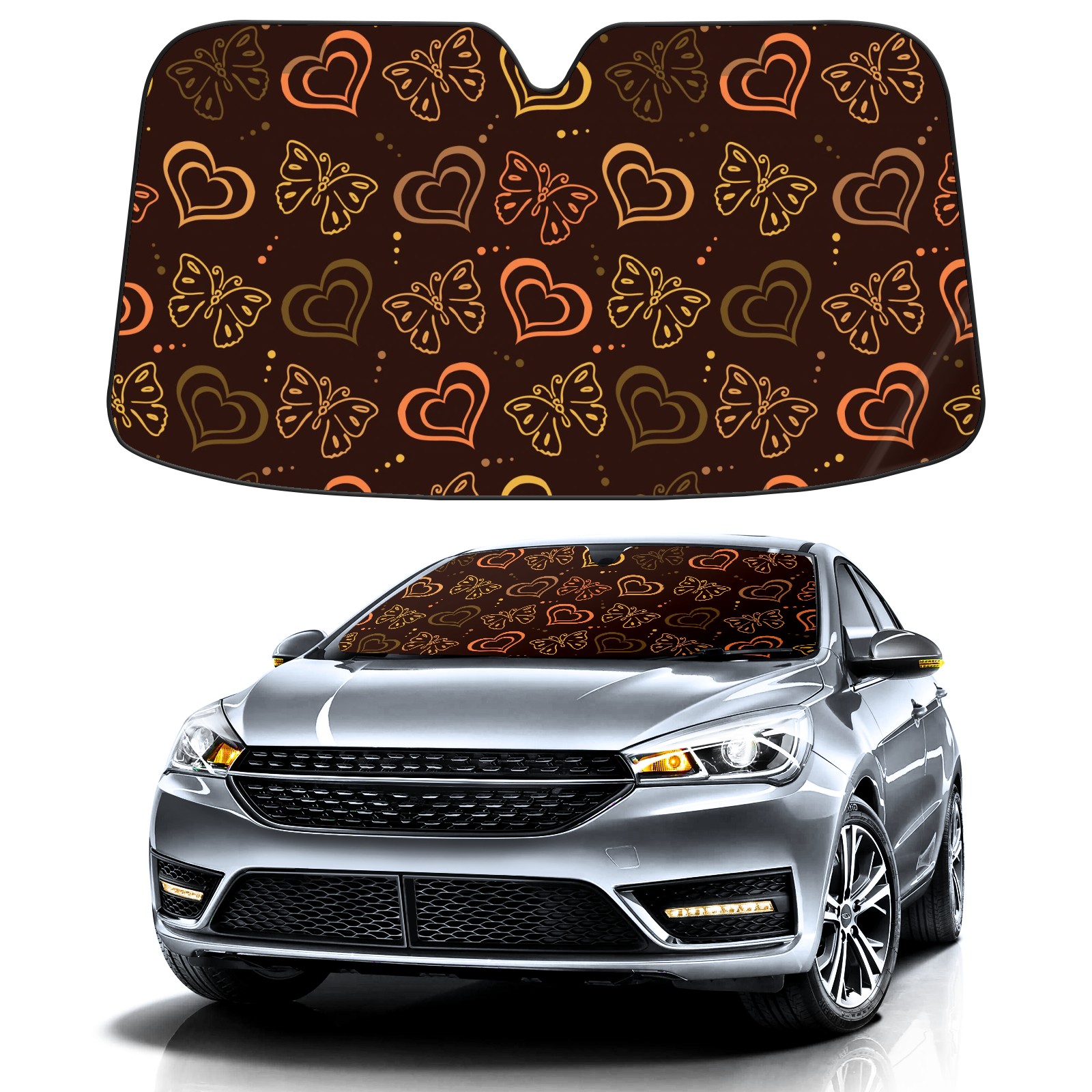 Car Windshield Sun Shade for Front Window Brown Butterfly Love Hand Drawn Pattern Foldable Vehicle Windshield Car Sun Visor Covers Automotive Window Protector Car Privacy Sun Blocker