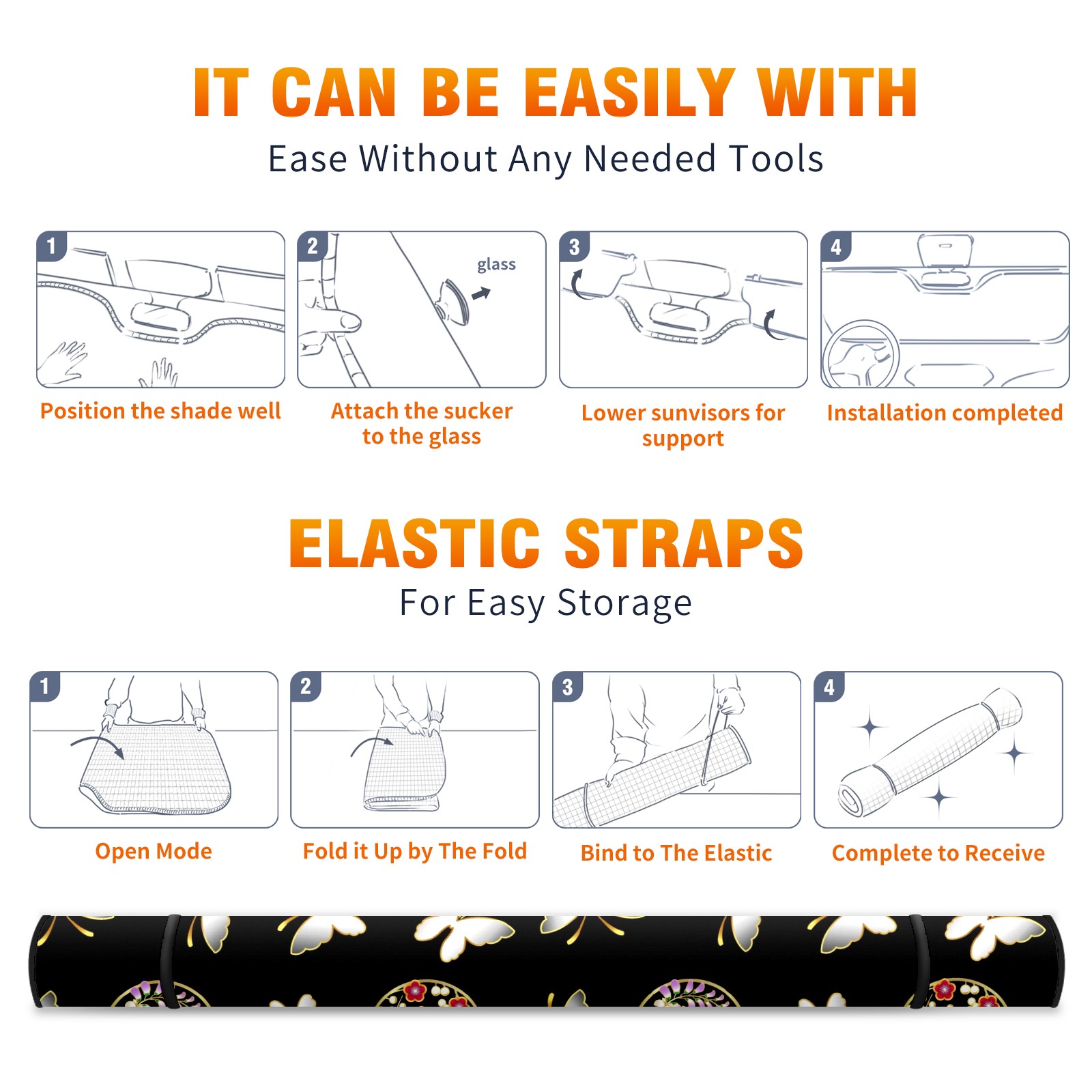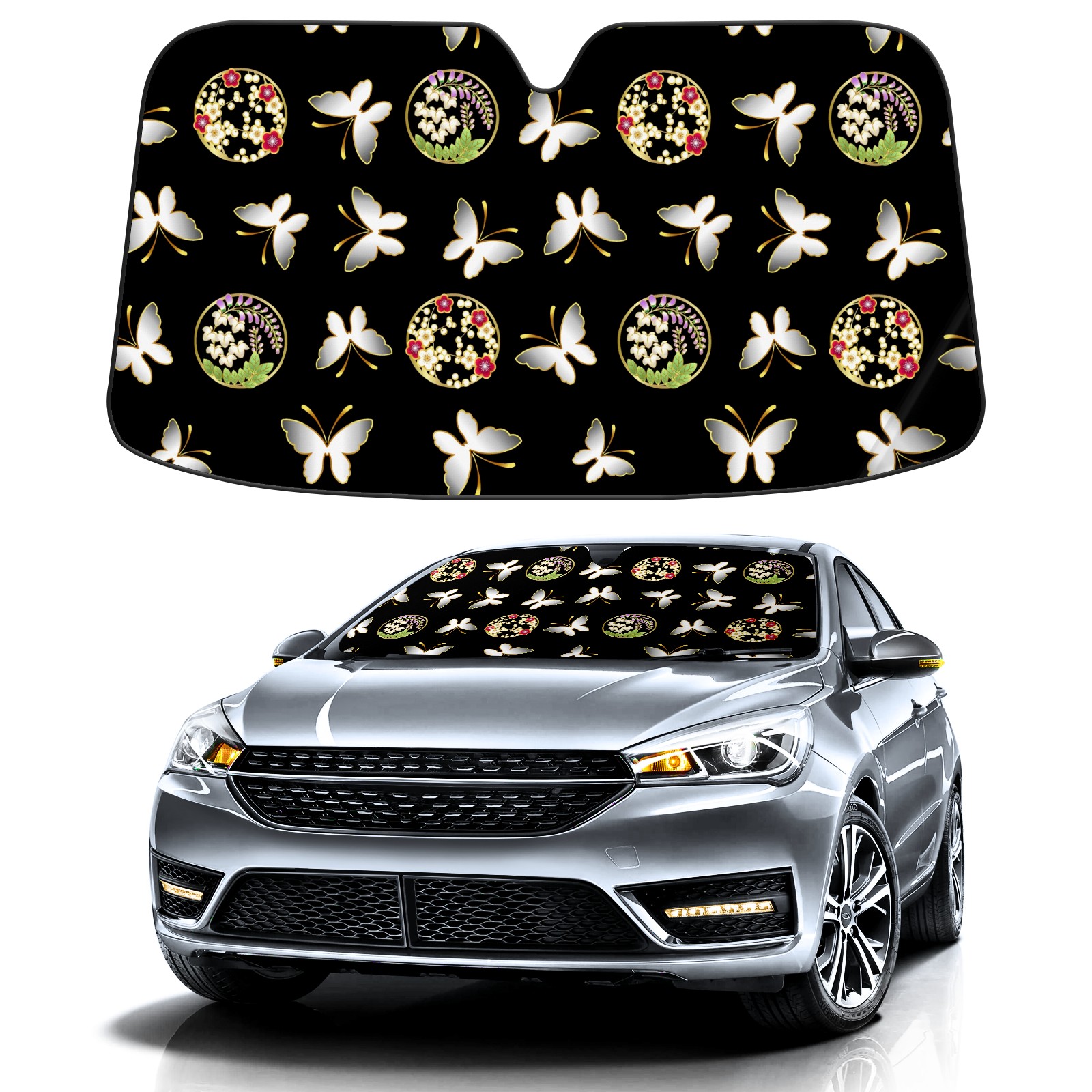 Car Windshield Sun Shade for Front Window Butterfly Japanese Pattern Foldable Vehicle Windshield Car Sun Visor Covers Automotive Window Protector Car Privacy Sun Blocker