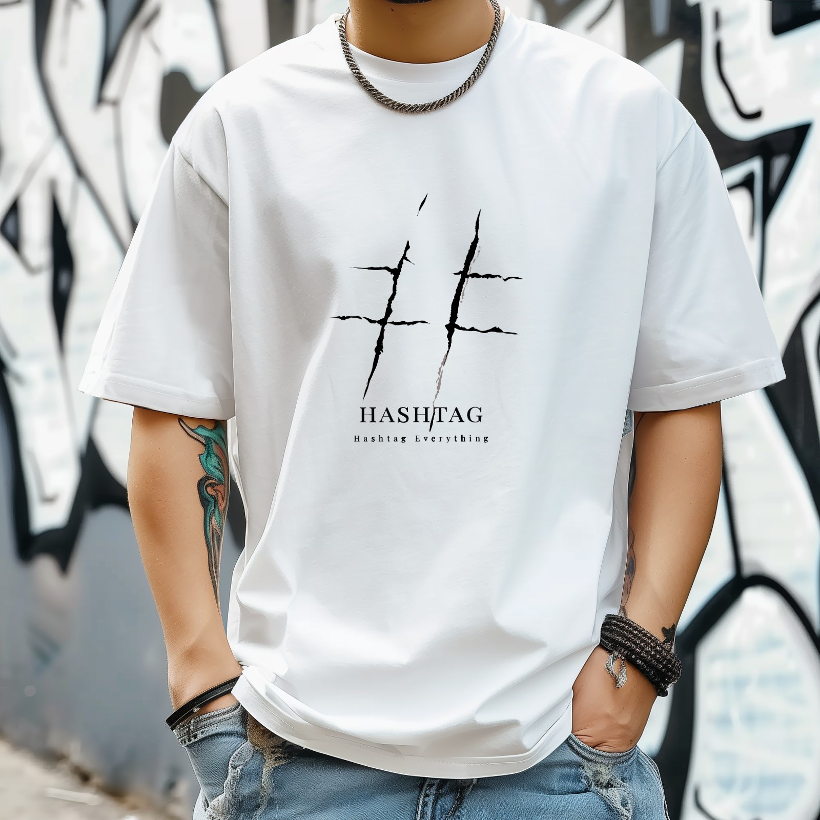 Hashtag T-Shirt for Man Tops Short Sleeves Shirt Crew Neck Shirt XS